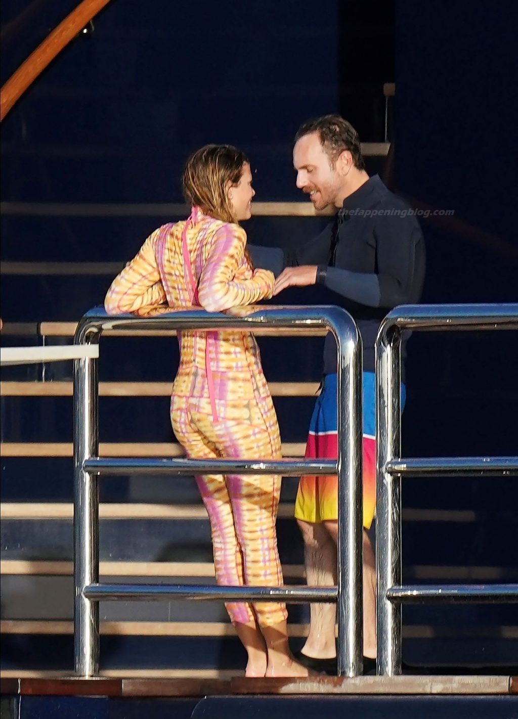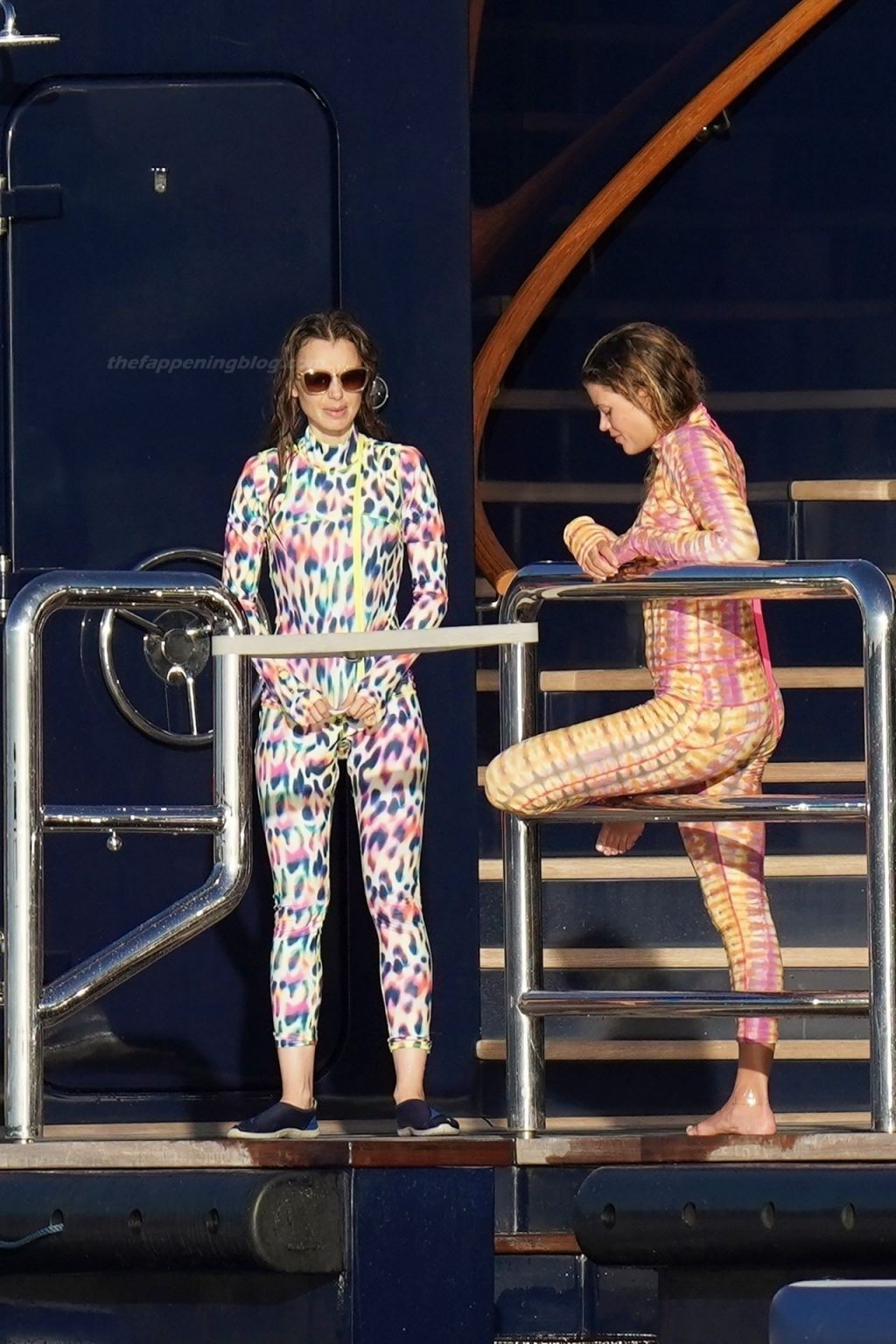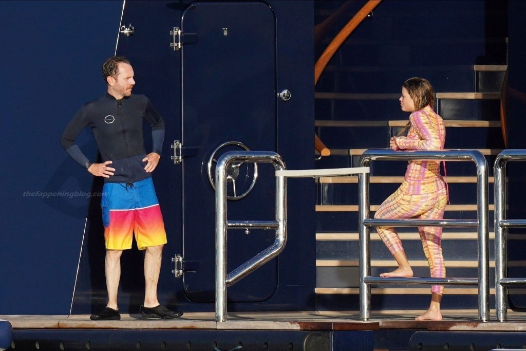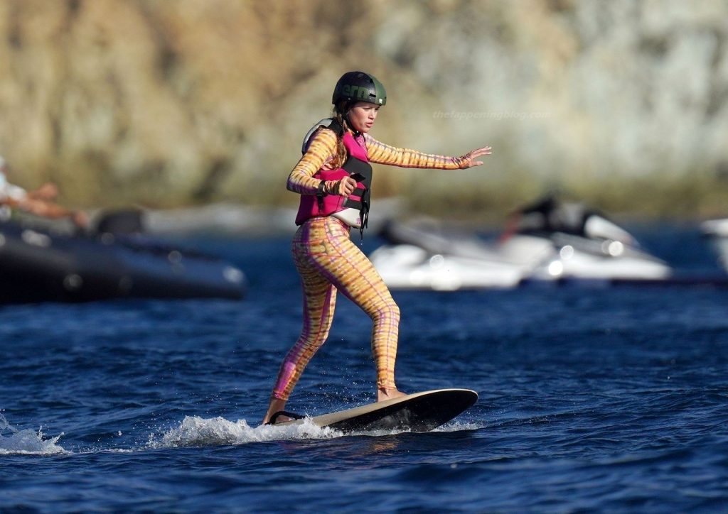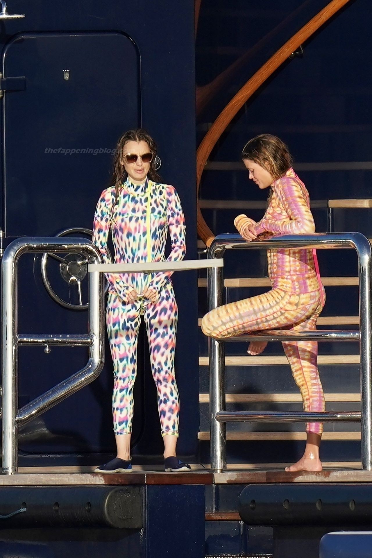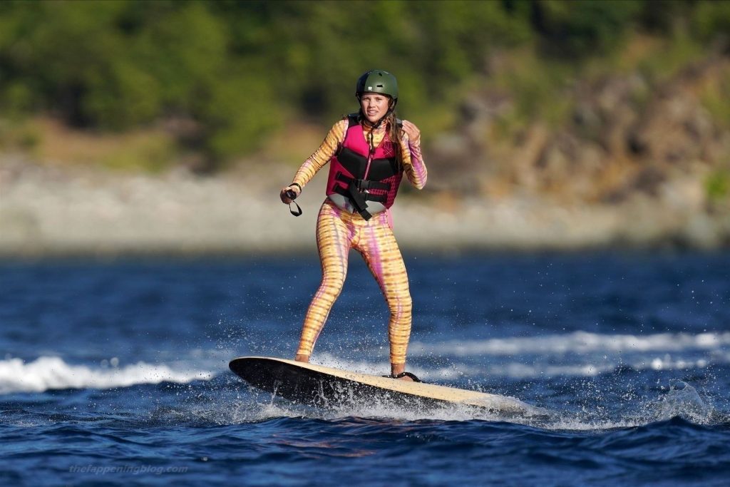 El legendario cantautor estadounidense de 71 años, Lionel, lucía impresionante mientras sonreía mostrando su bronceado físico bajo el intenso sol, mientras Sofia deslumbraba con un top de bikini blanco mientras se ponía su traje de neopreno.