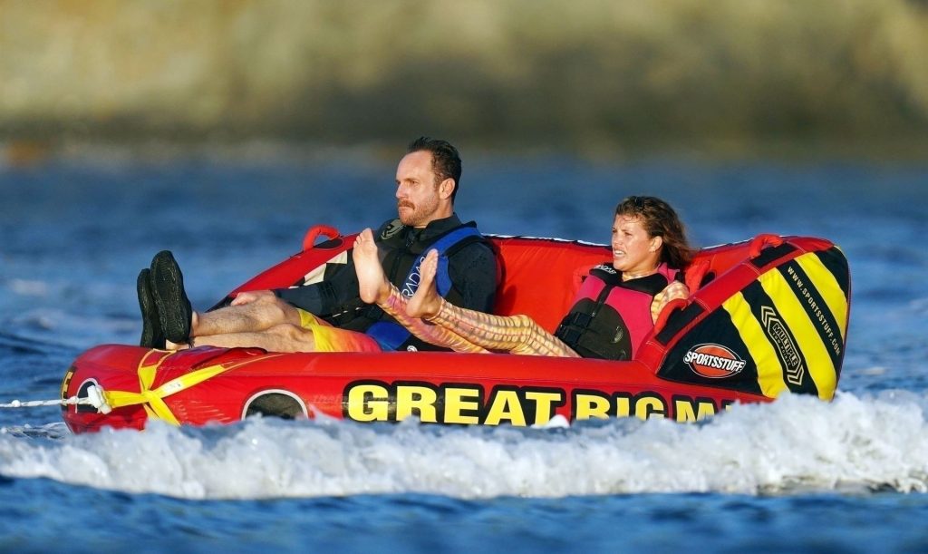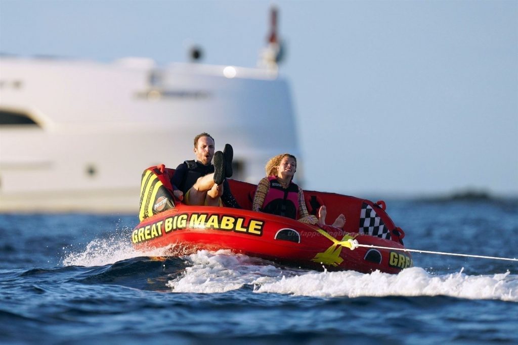 Durante su segundo día en la idílica isla caribeña, el grupo tuvo un día ocupado y lleno de diversión con algunas actividades acuáticas que incluyeron un emocionante paseo en el inflable Great Big Mable.