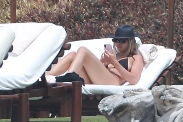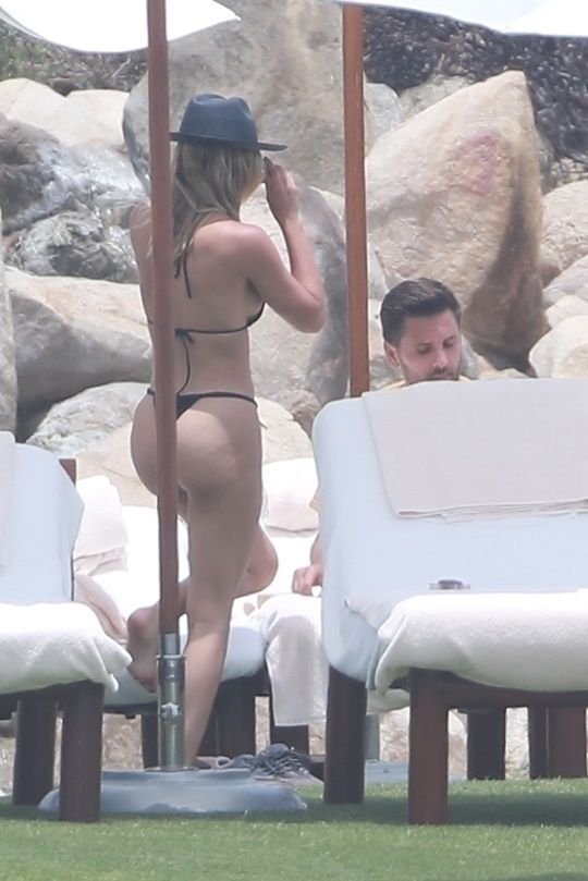 Sofia Richie y Scott Disick continúan su romántico descanso juntos en México, 22/04/2019. La modelo de 20 años Sofia muestra su increíble figura con un bikini negro mientras Scott se relaja en una tumbona disfrutando del paisaje.