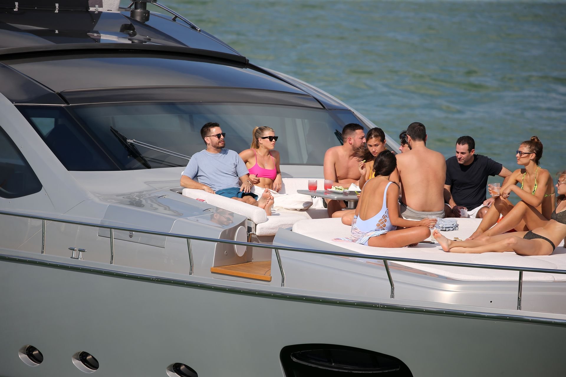 La modelo rara vez se veía sin su cigarrillo electrónico Juul y su novio fue visto más tarde fumando el suyo también. La pareja pasó la mayor parte del tiempo en el yate juntos mientras algunas modelos en bikini descansaban por separado.