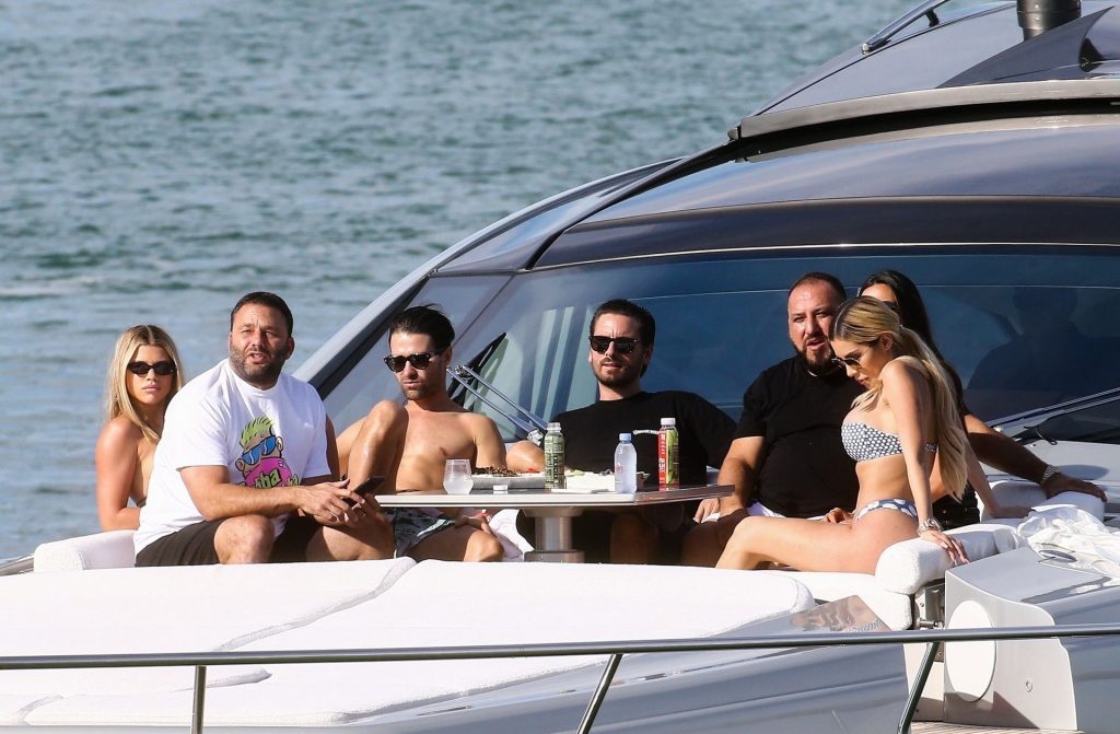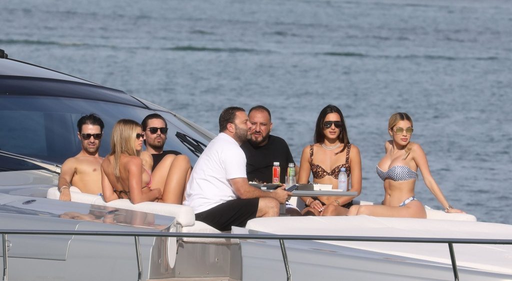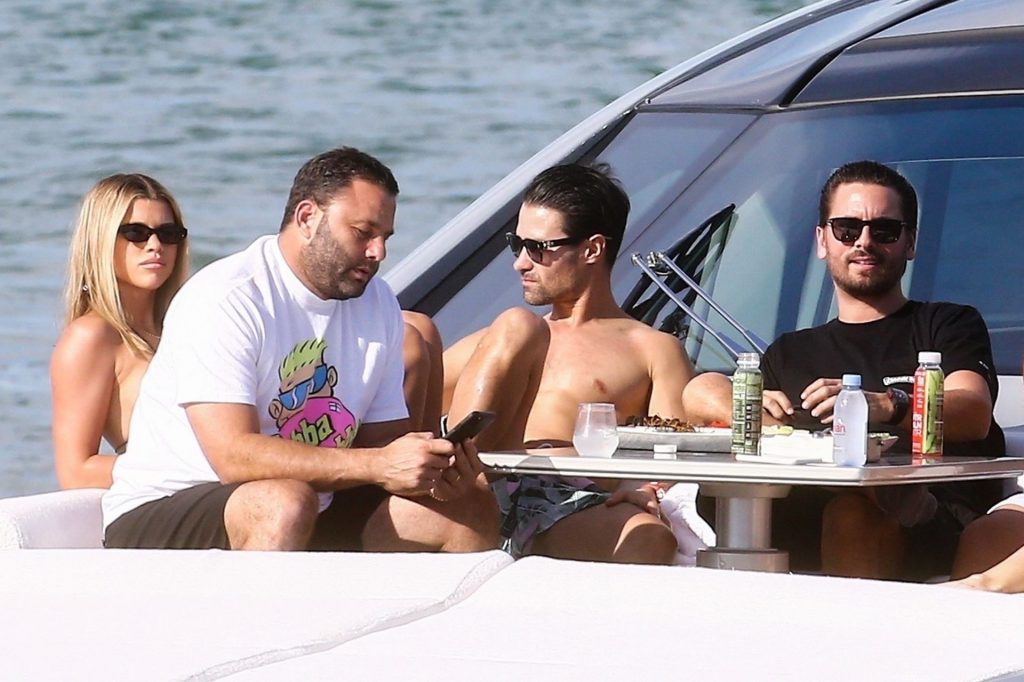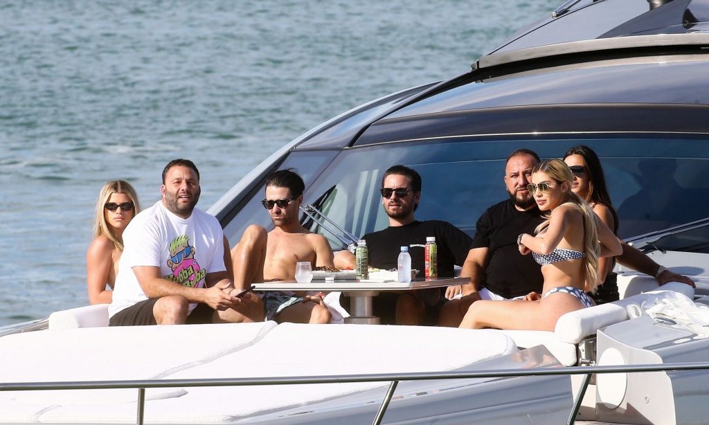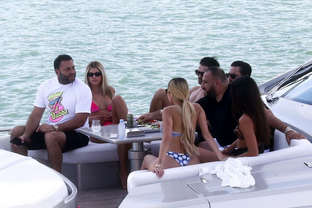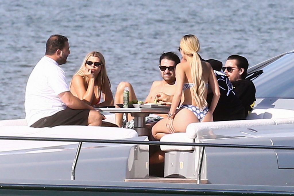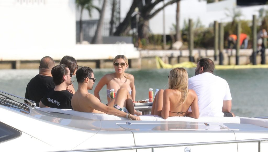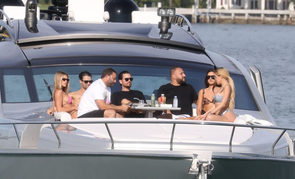 Sofia Richie y su novio Scott Disick están en Miami Beach disfrutando de los rayos del sol de noviembre a bordo del yate de súper lujo de David Grutman y su esposa Isabela, 25/11/2019. También a bordo está el artista callejero Alec Monopoly (Alec Andon) y su novia, Alexa Dellanos.