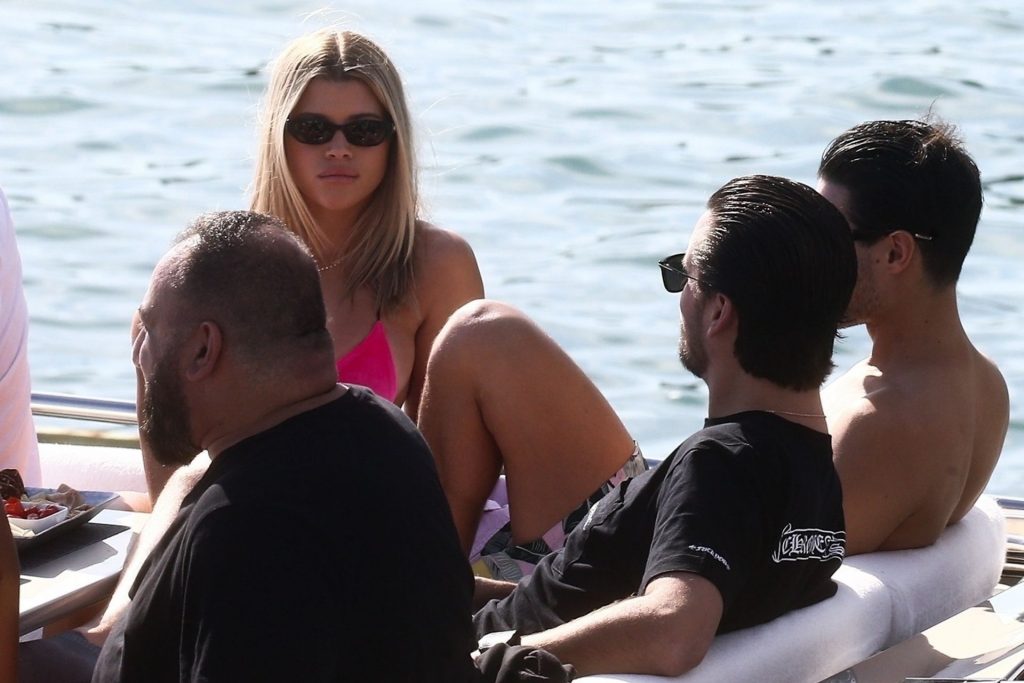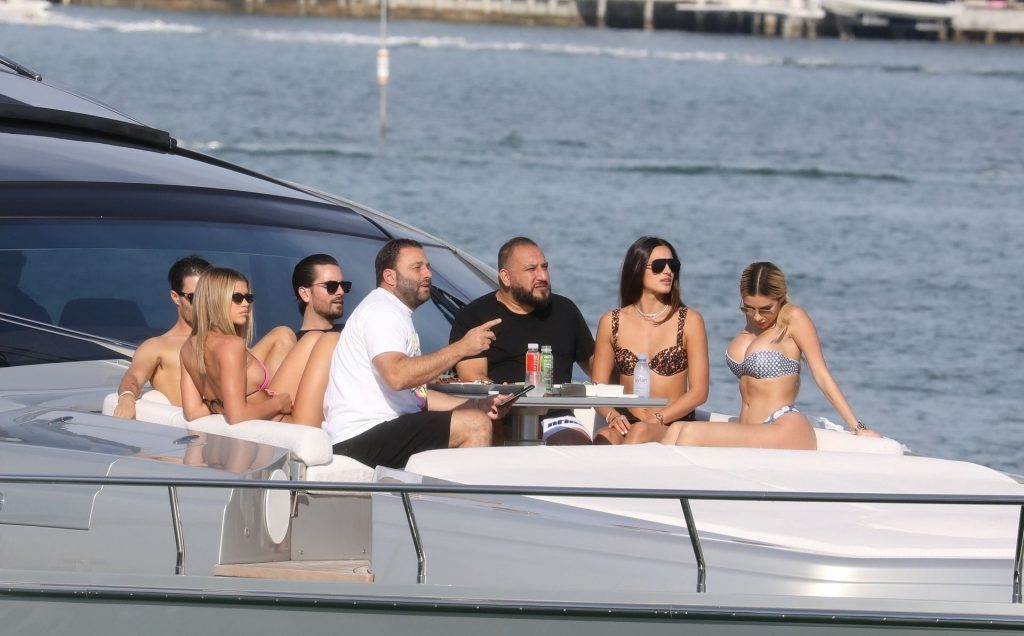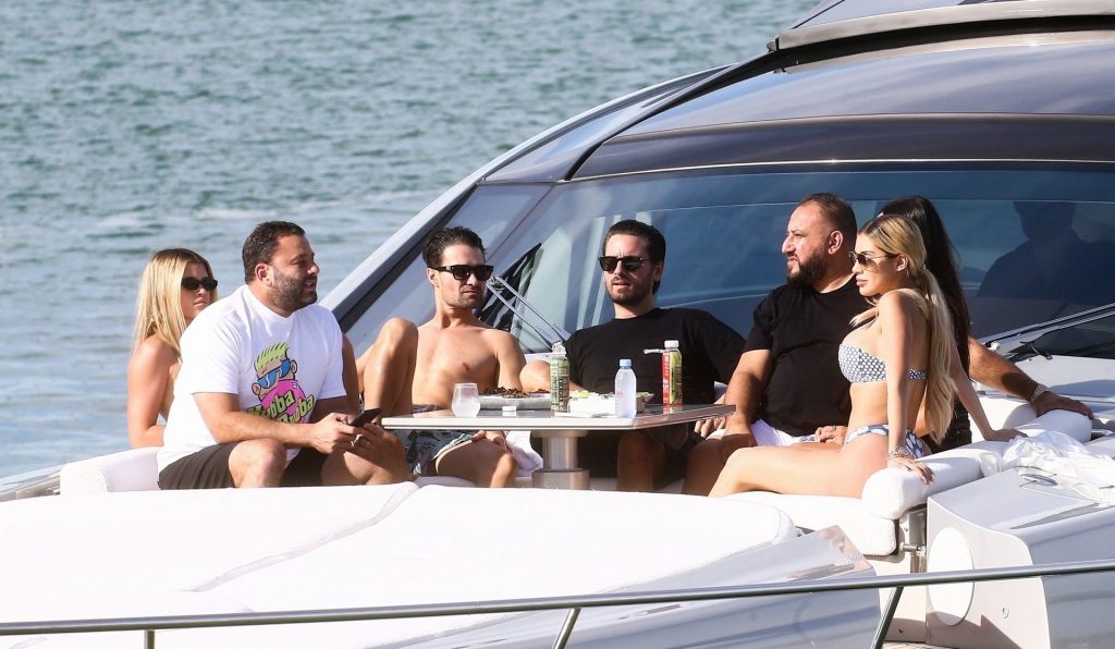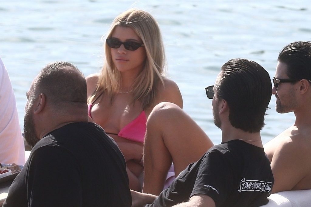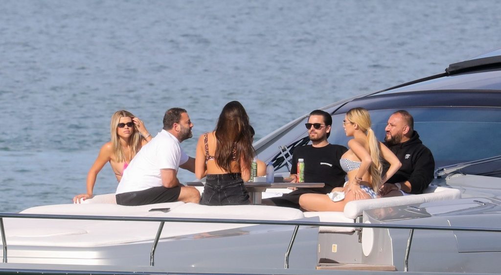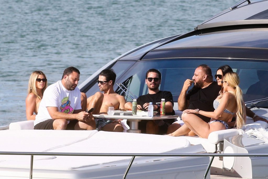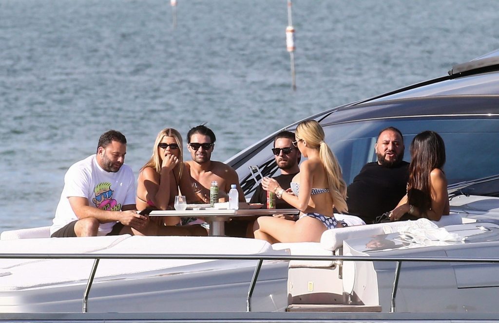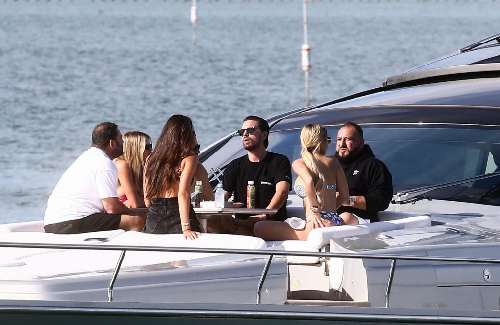 Sofia Richie y su novio Scott Disick están en Miami Beach disfrutando de los rayos del sol de noviembre a bordo del yate de súper lujo de David Grutman y su esposa Isabela, 25/11/2019. También a bordo está el artista callejero Alec Monopoly (Alec Andon) y su novia, Alexa Dellanos.