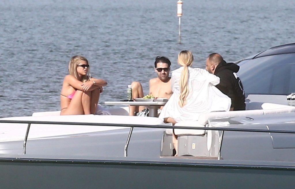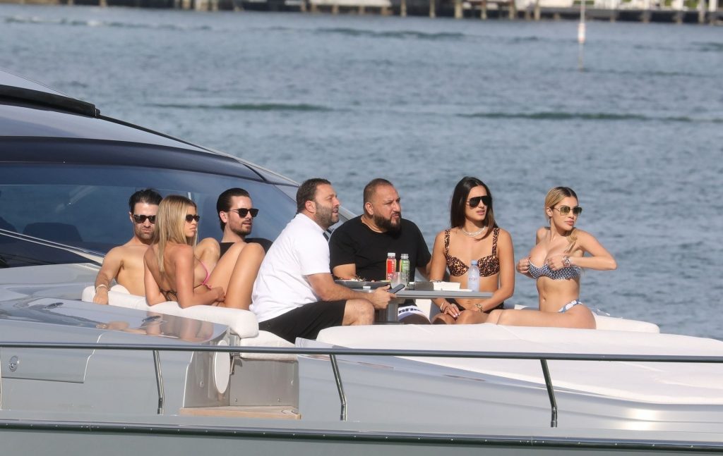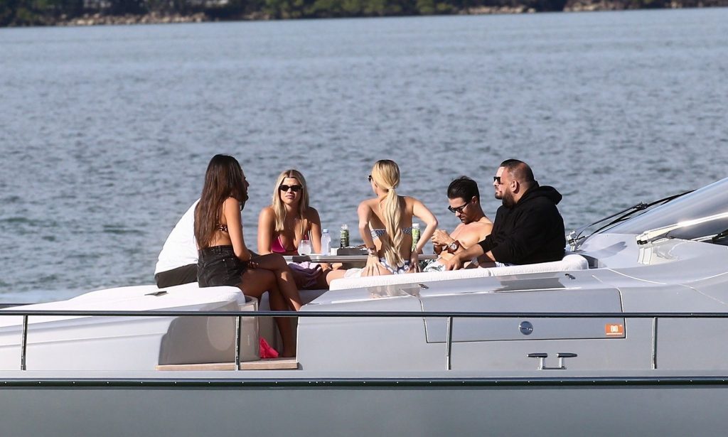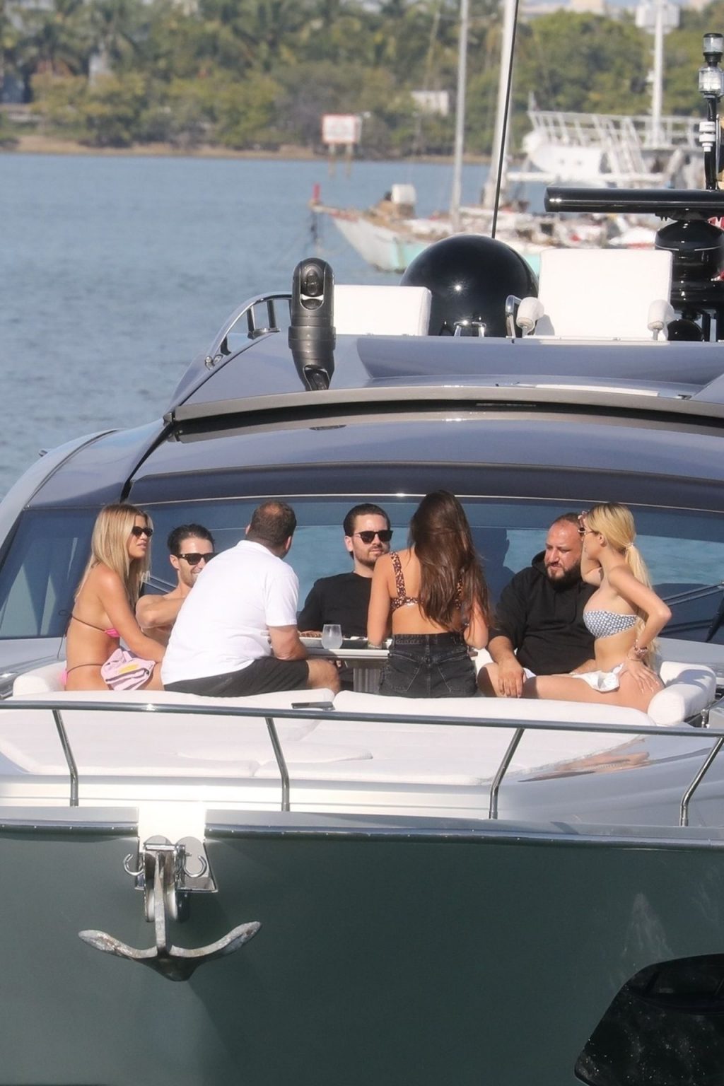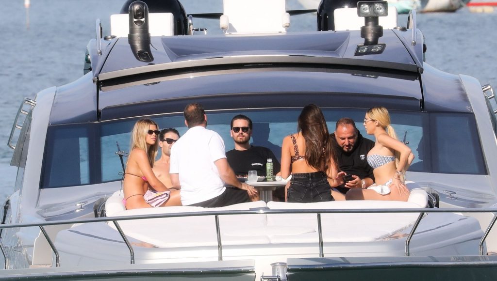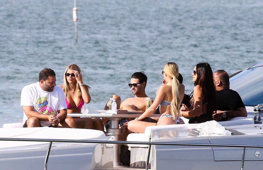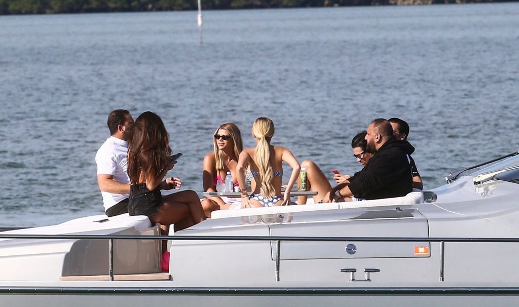 Sofia Richie y su novio Scott Disick están en Miami Beach disfrutando de los rayos del sol de noviembre a bordo del yate de súper lujo de David Grutman y su esposa Isabela, 25/11/2019. También a bordo está el artista callejero Alec Monopoly (Alec Andon) y su novia, Alexa Dellanos.