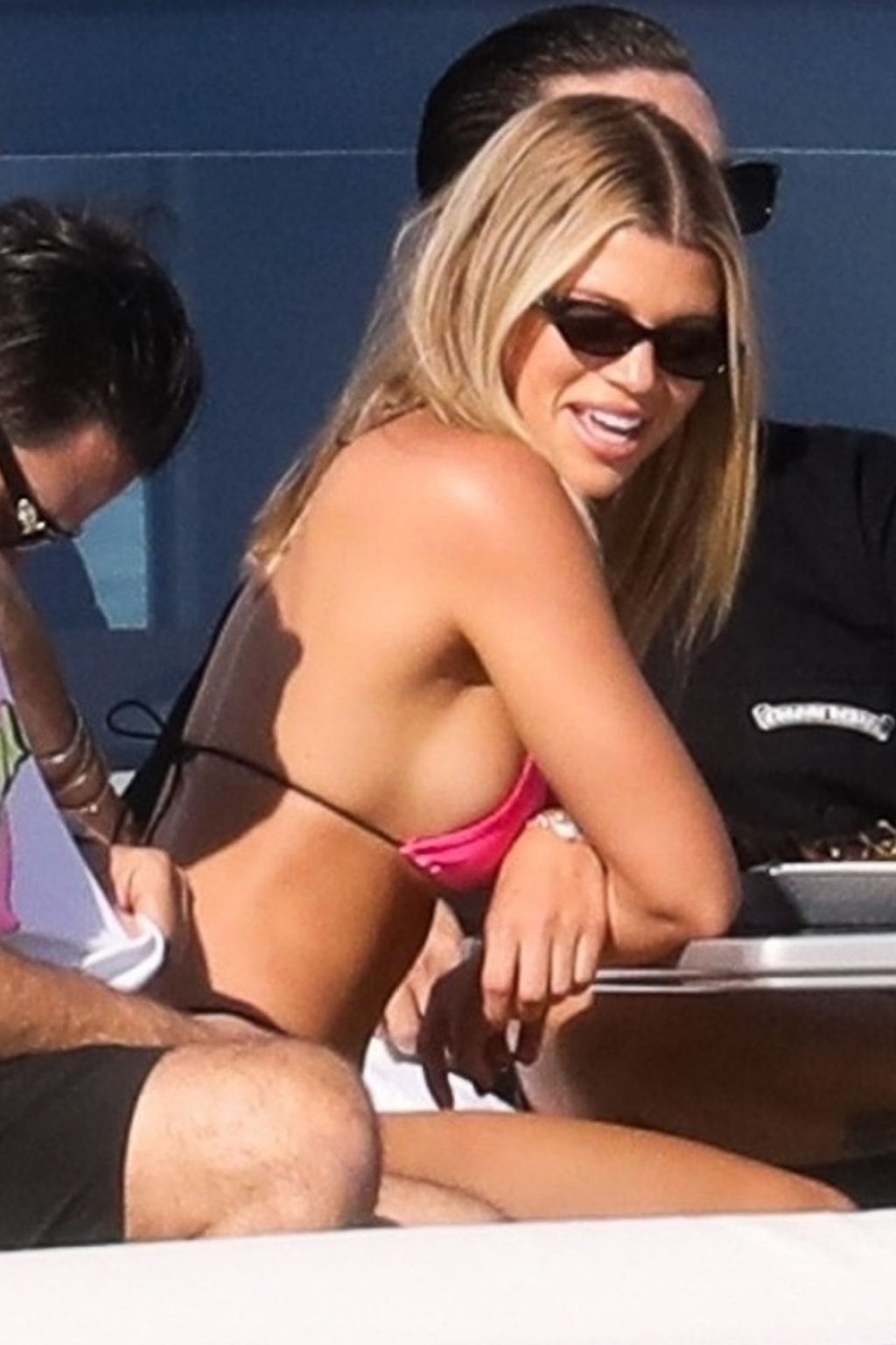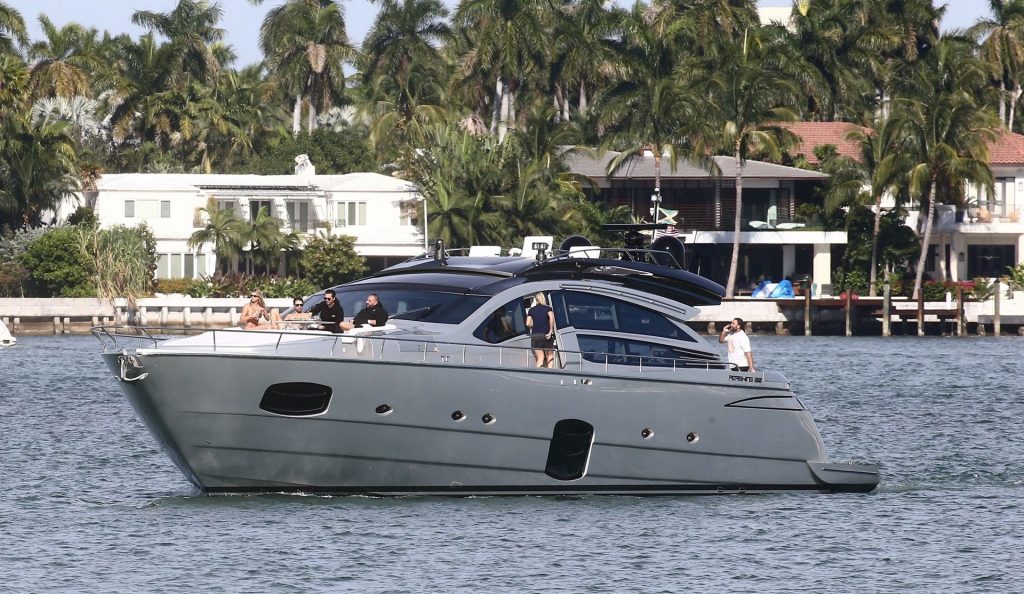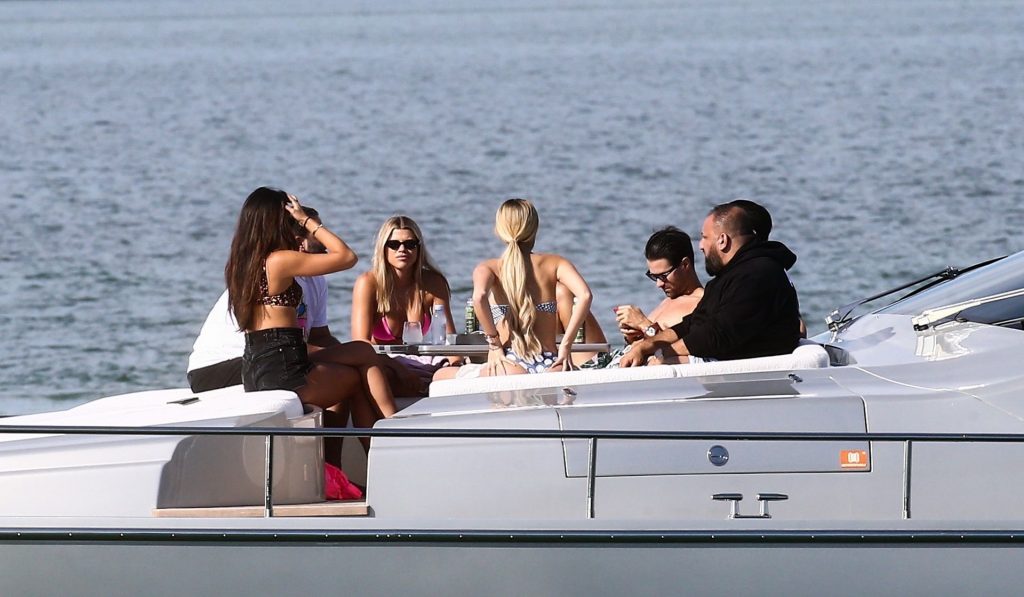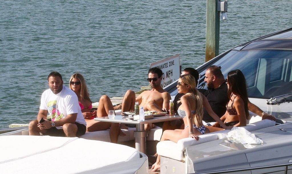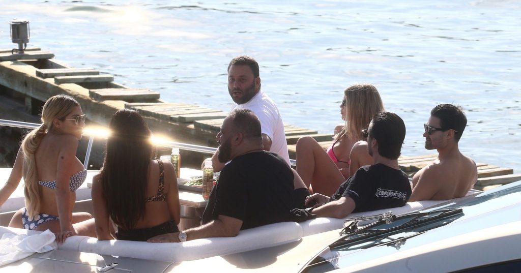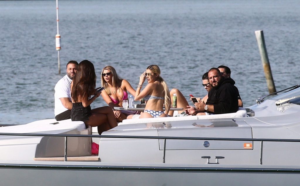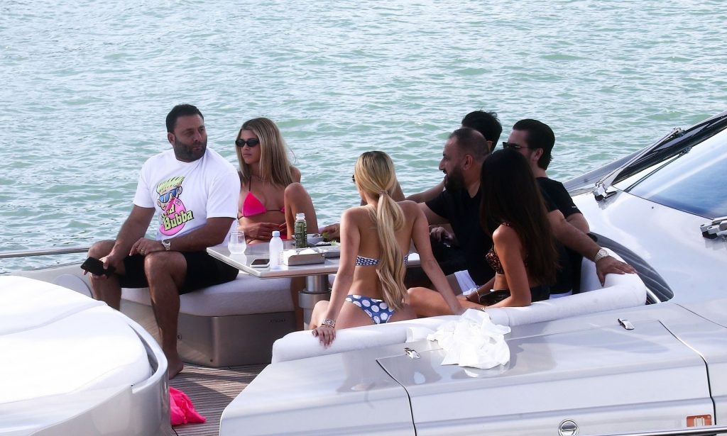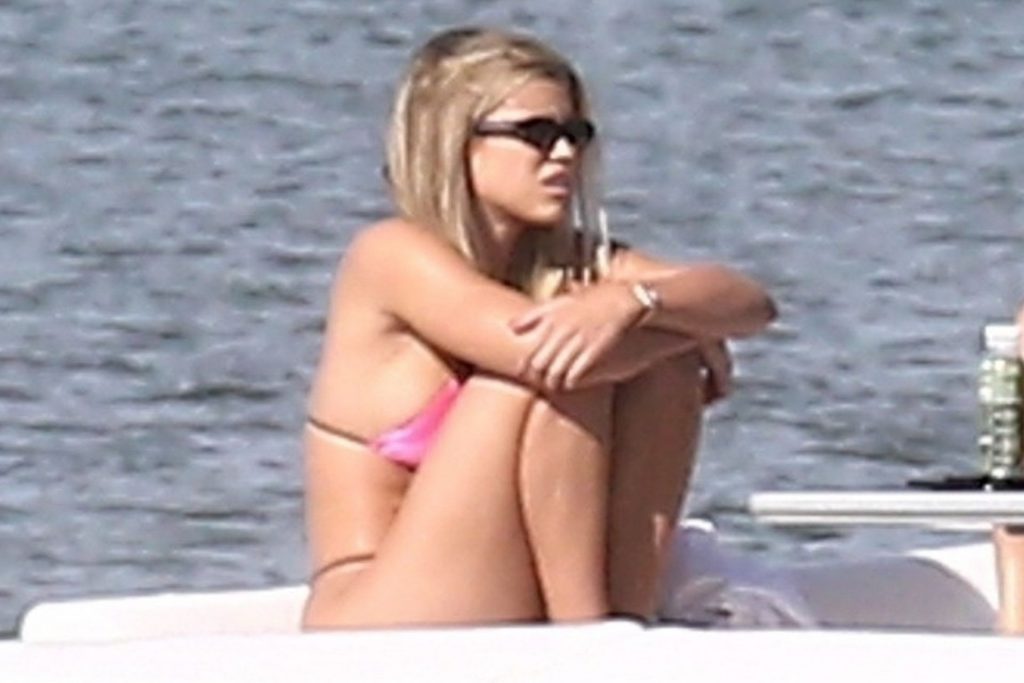 Sofia Richie y su novio Scott Disick están en Miami Beach disfrutando de los rayos del sol de noviembre a bordo del yate de súper lujo de David Grutman y su esposa Isabela, 25/11/2019. También a bordo está el artista callejero Alec Monopoly (Alec Andon) y su novia, Alexa Dellanos.