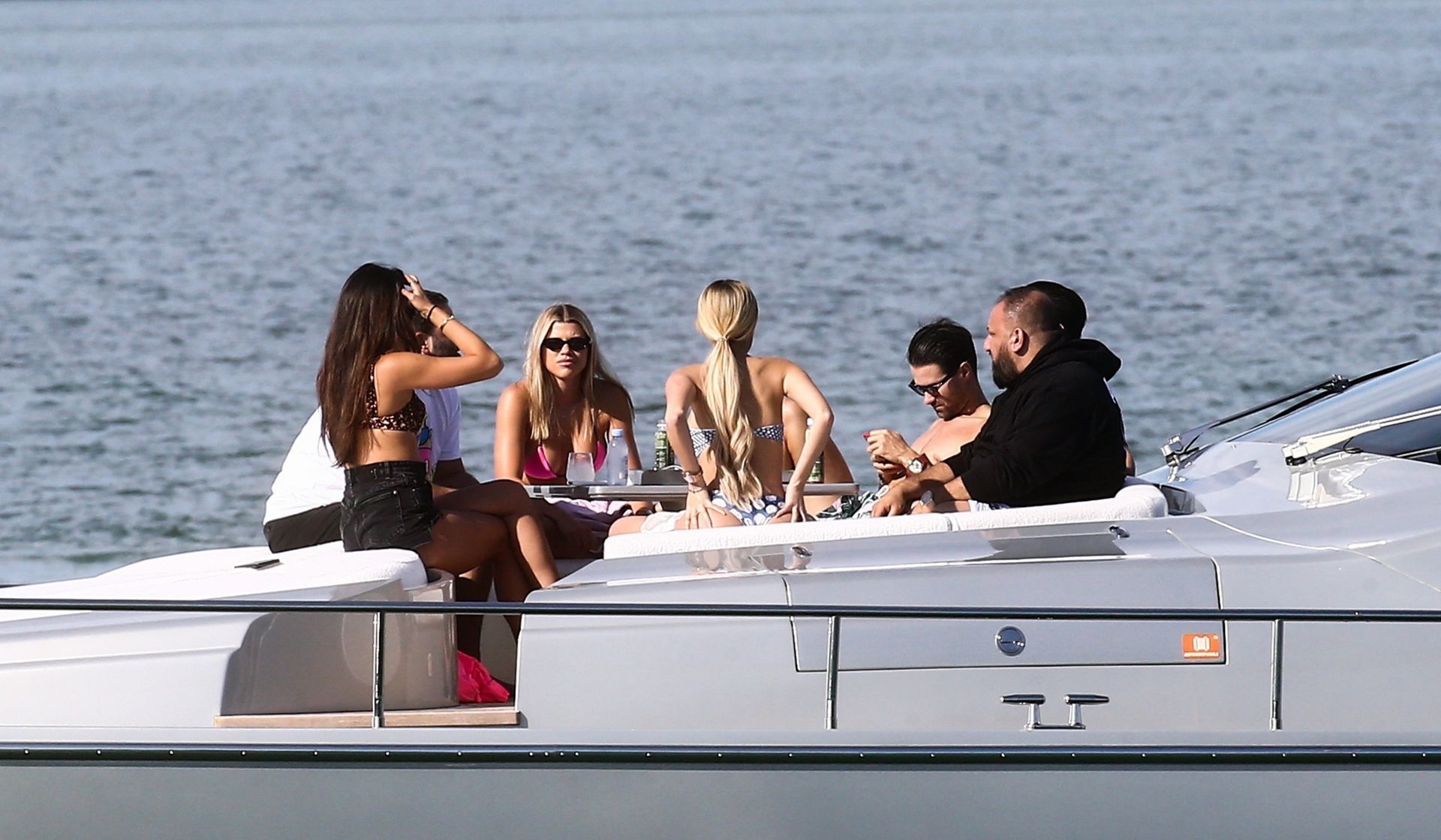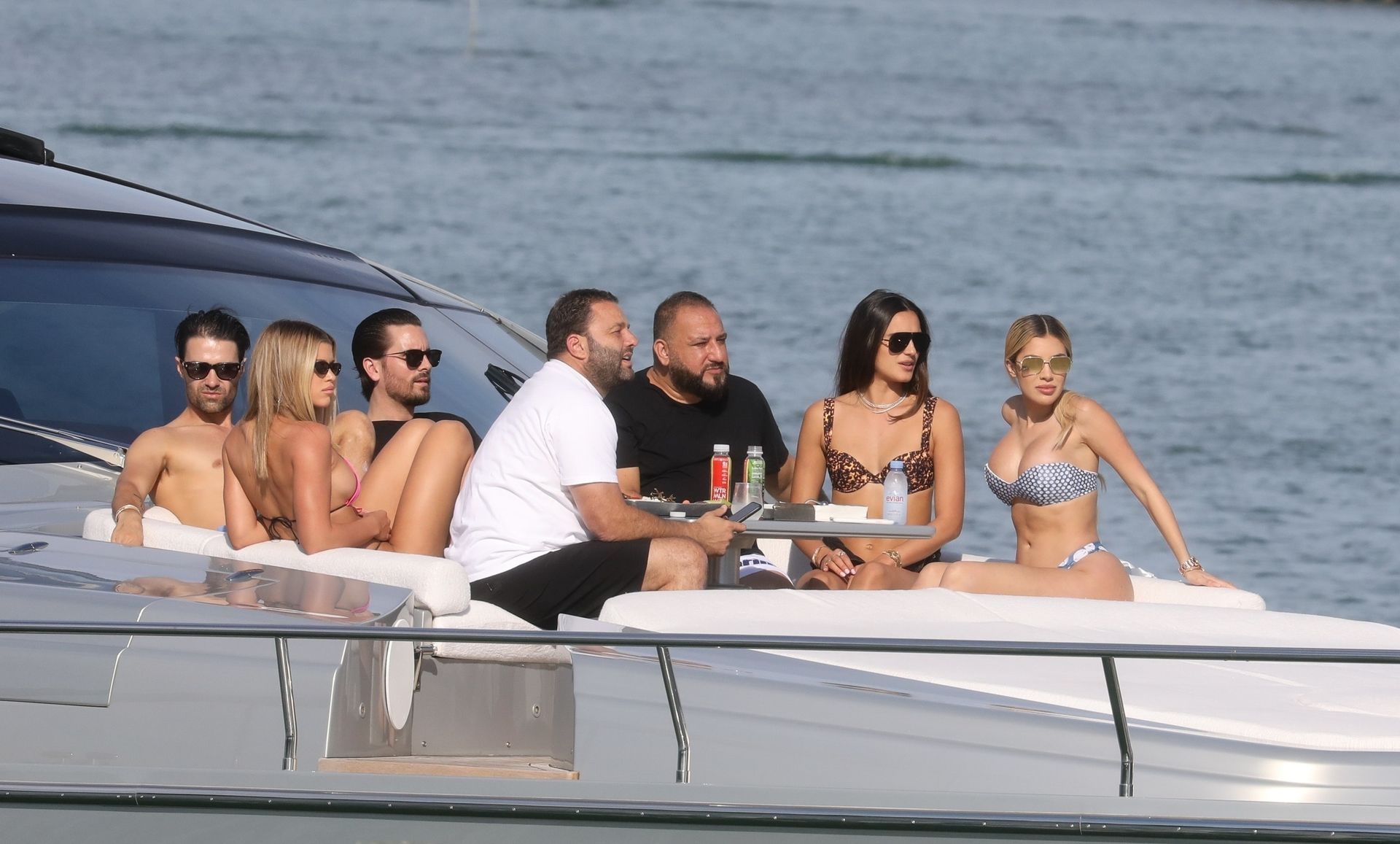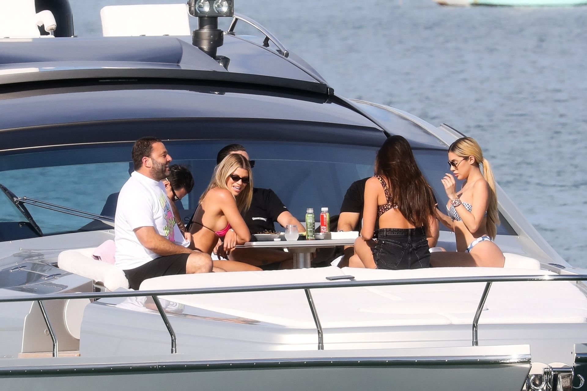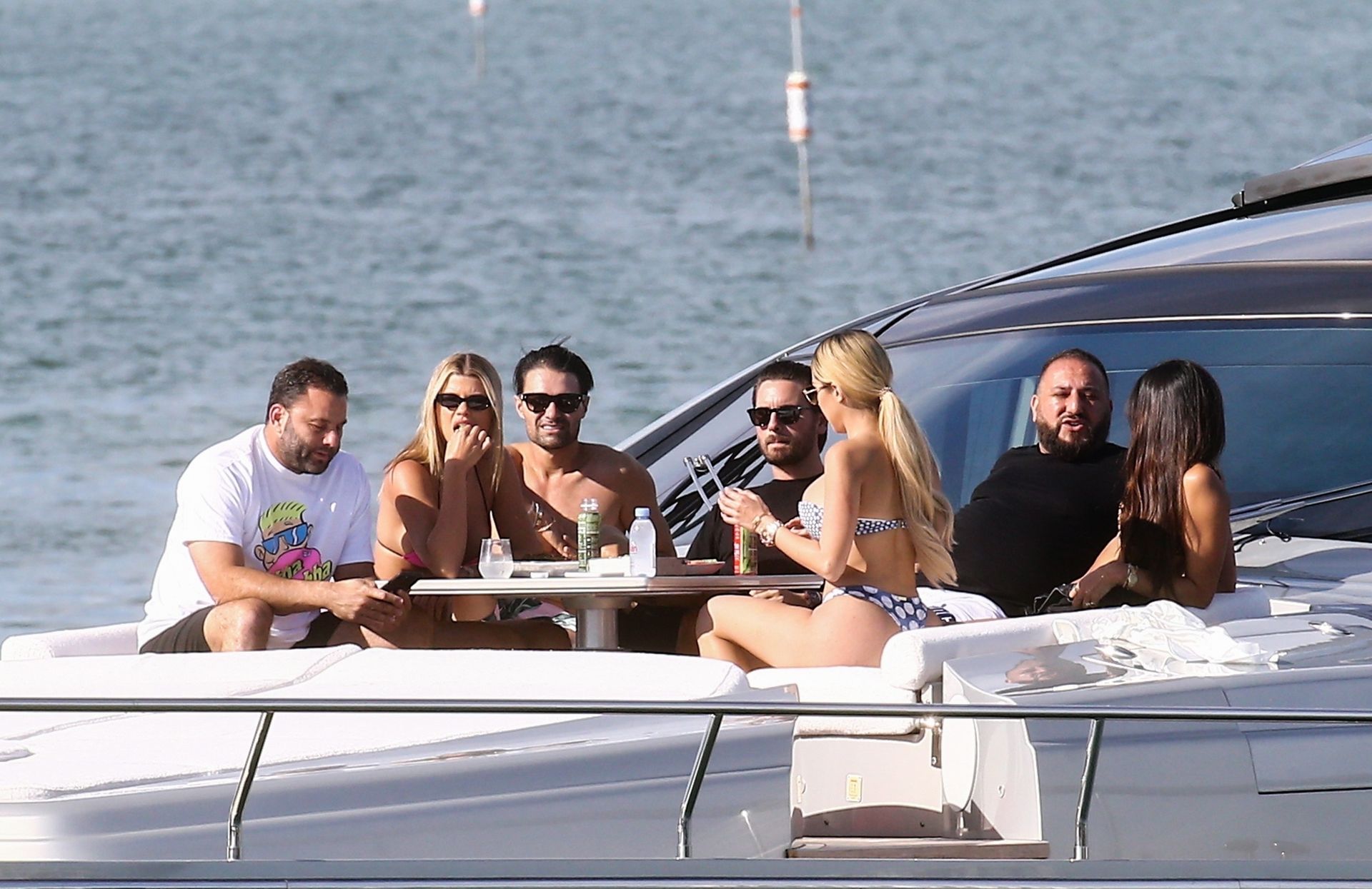 Sofia Richie y su novio Scott Disick están en Miami Beach disfrutando de los rayos del sol de noviembre a bordo del yate de súper lujo de David Grutman y su esposa Isabela, 25/11/2019. También a bordo está el artista callejero Alec Monopoly (Alec Andon) y su novia, Alexa Dellanos.