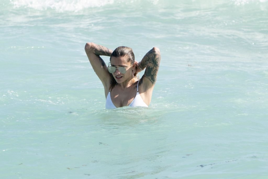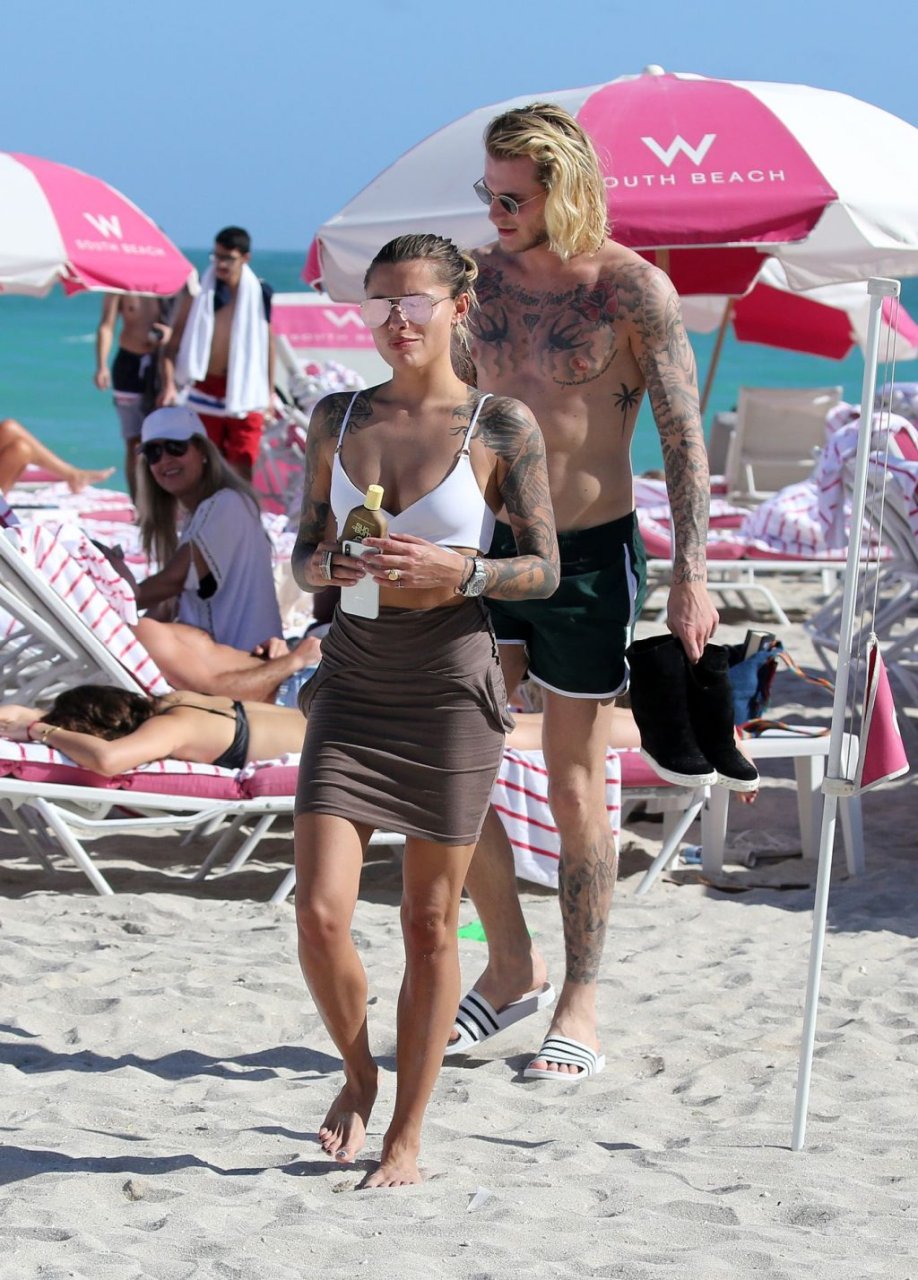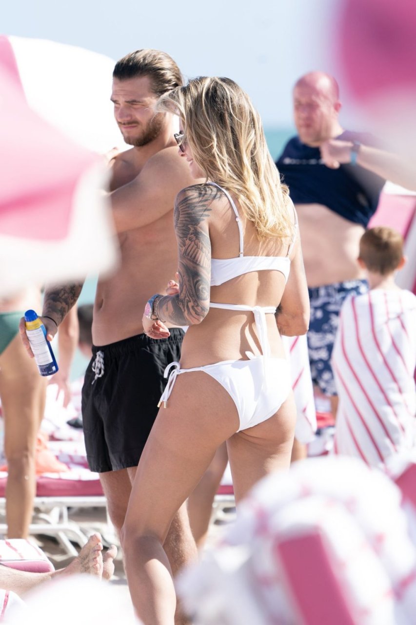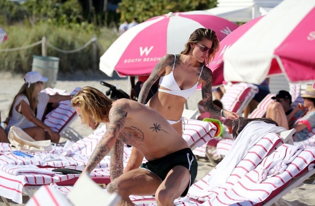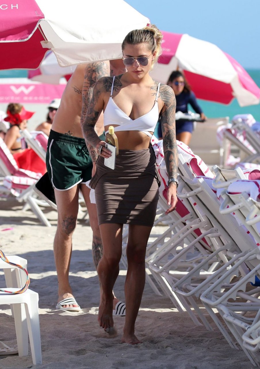 La belleza tatuada Sophia Thomalla y su nuevo novio, el portero Loris Karius, fueron vistos acercándose durante un divertido día en la playa en Miami, 30/12/2018.