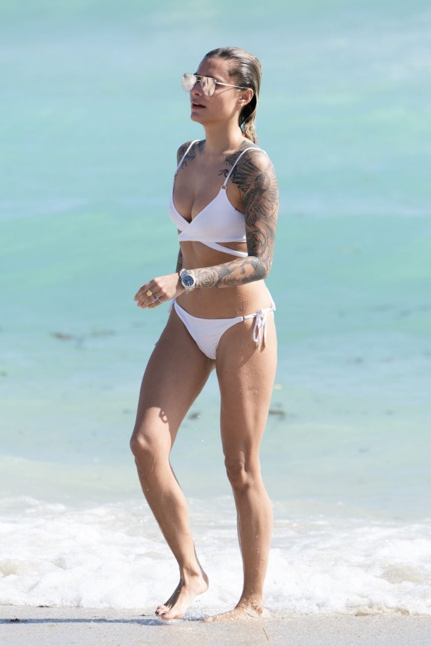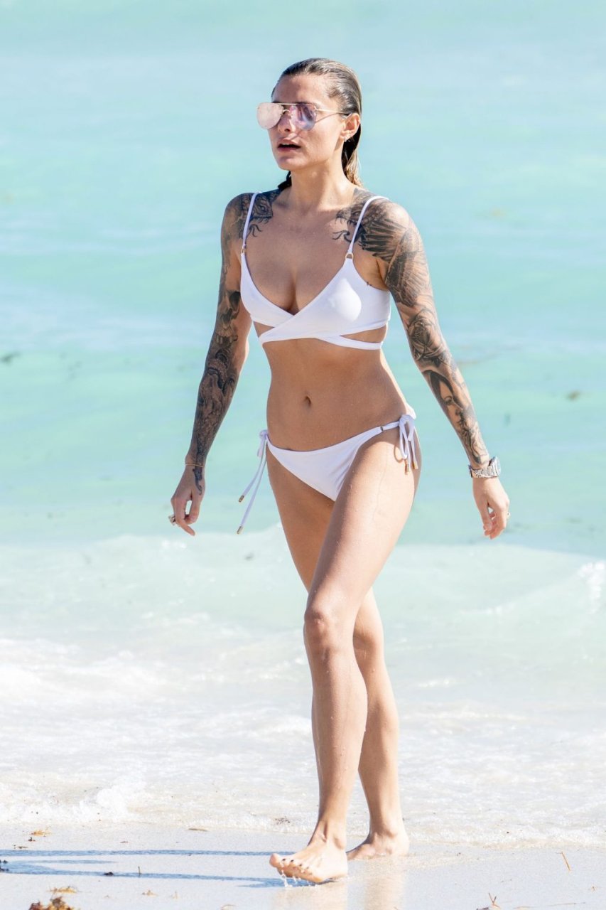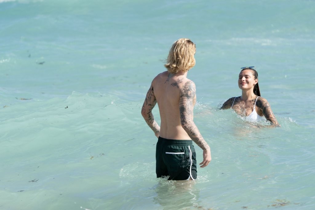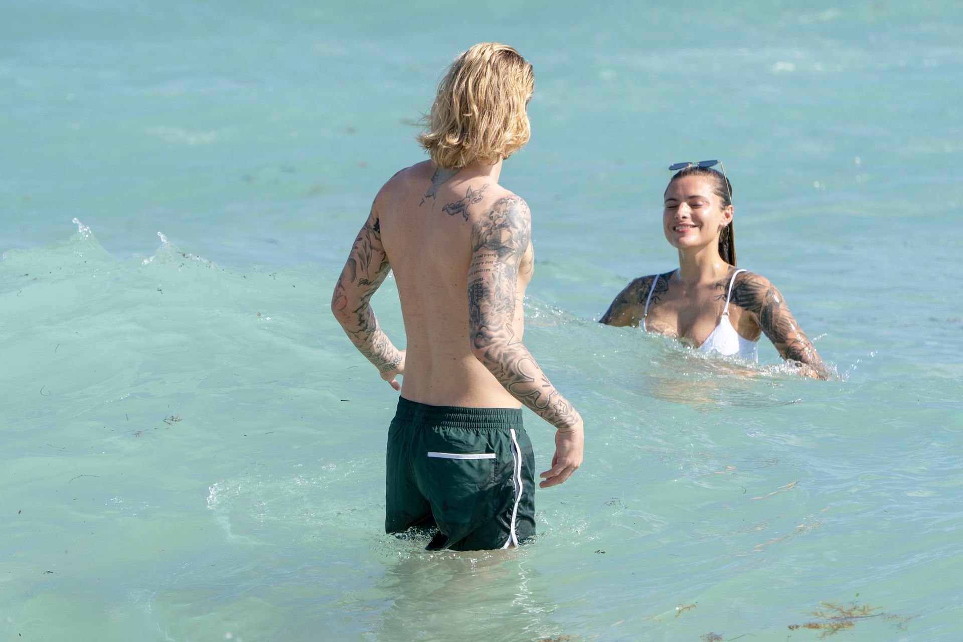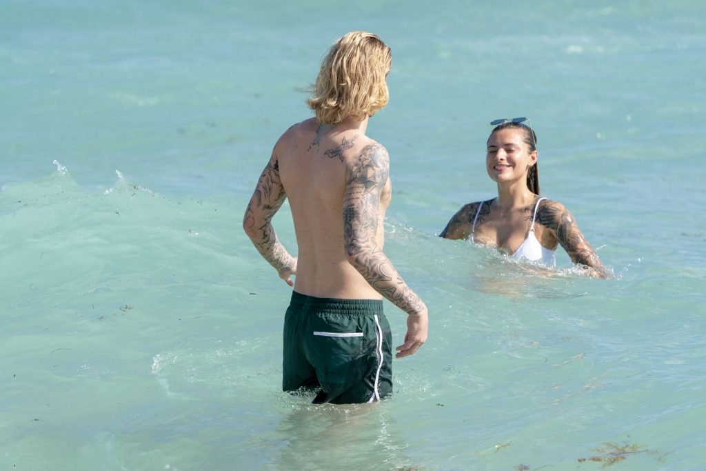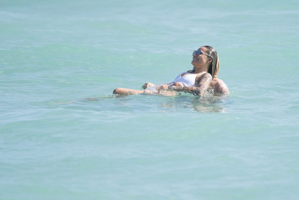 La belleza tatuada Sophia Thomalla y su nuevo novio, el portero Loris Karius, fueron vistos acercándose durante un divertido día en la playa en Miami, 30/12/2018.
