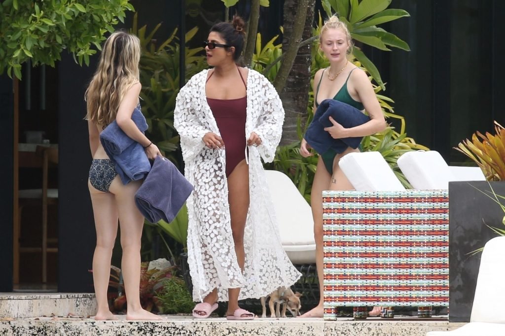 Sophie Turner se ve en un bikini verde mientras Priyanka Chopra como amigas se unen a los Jonas para su próxima gira, 08/03/2019.