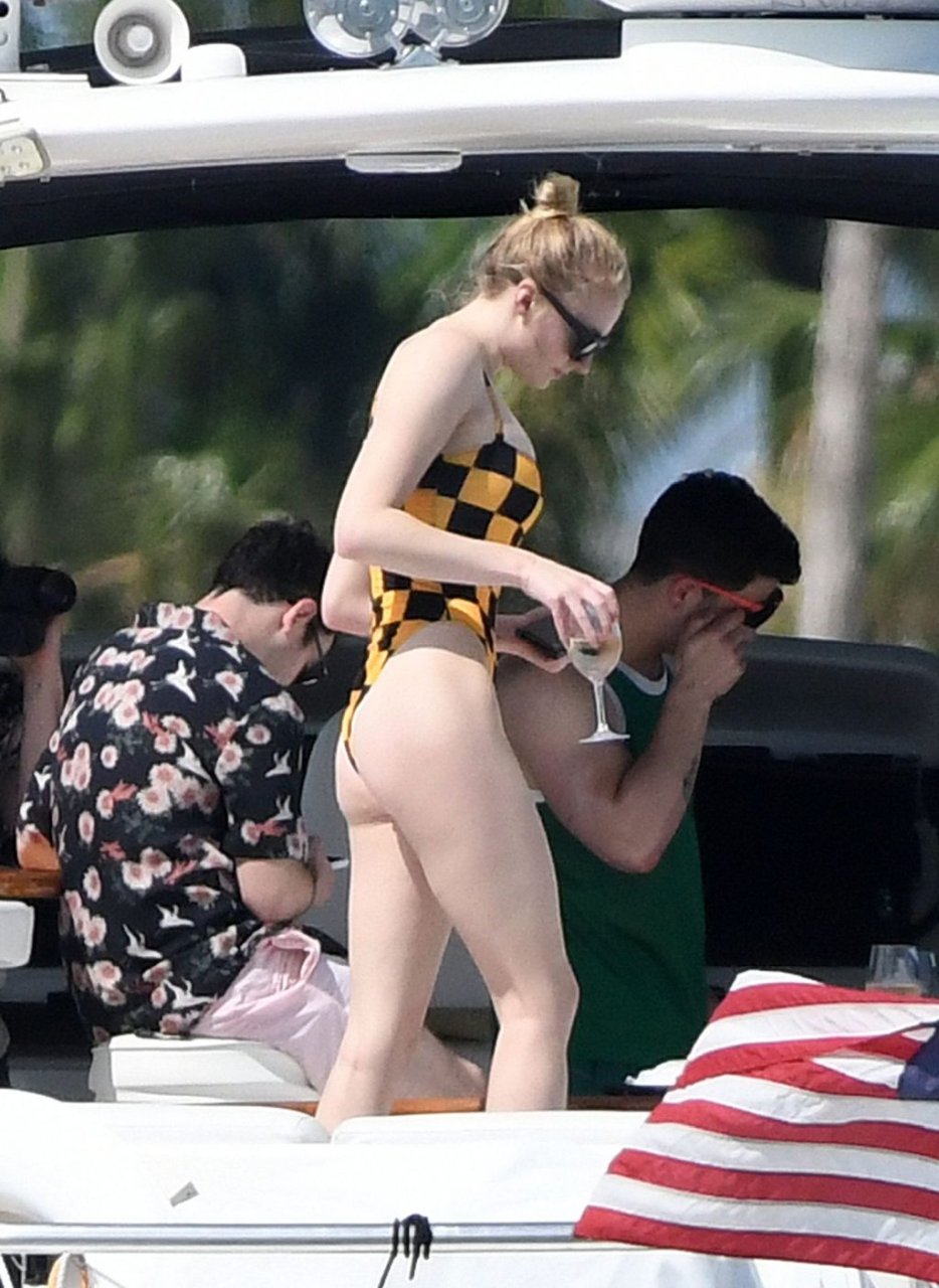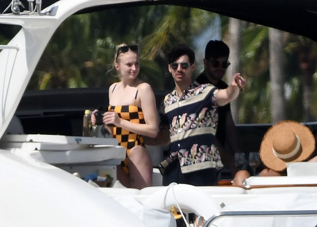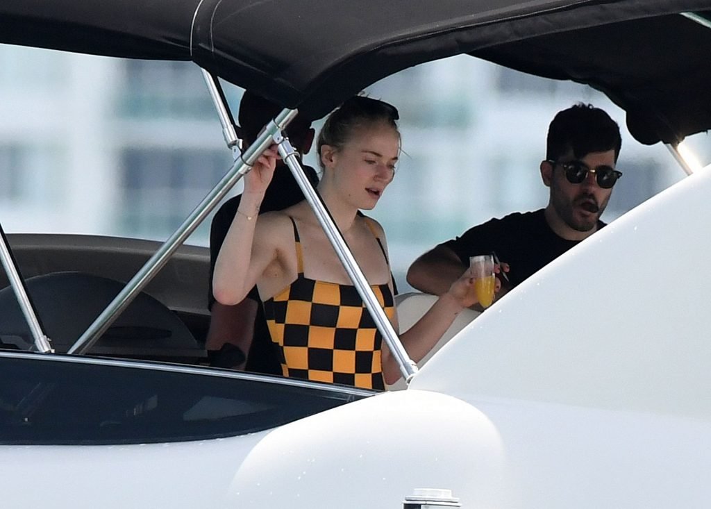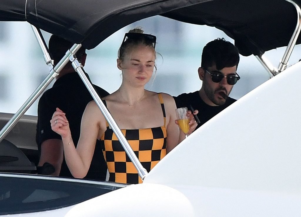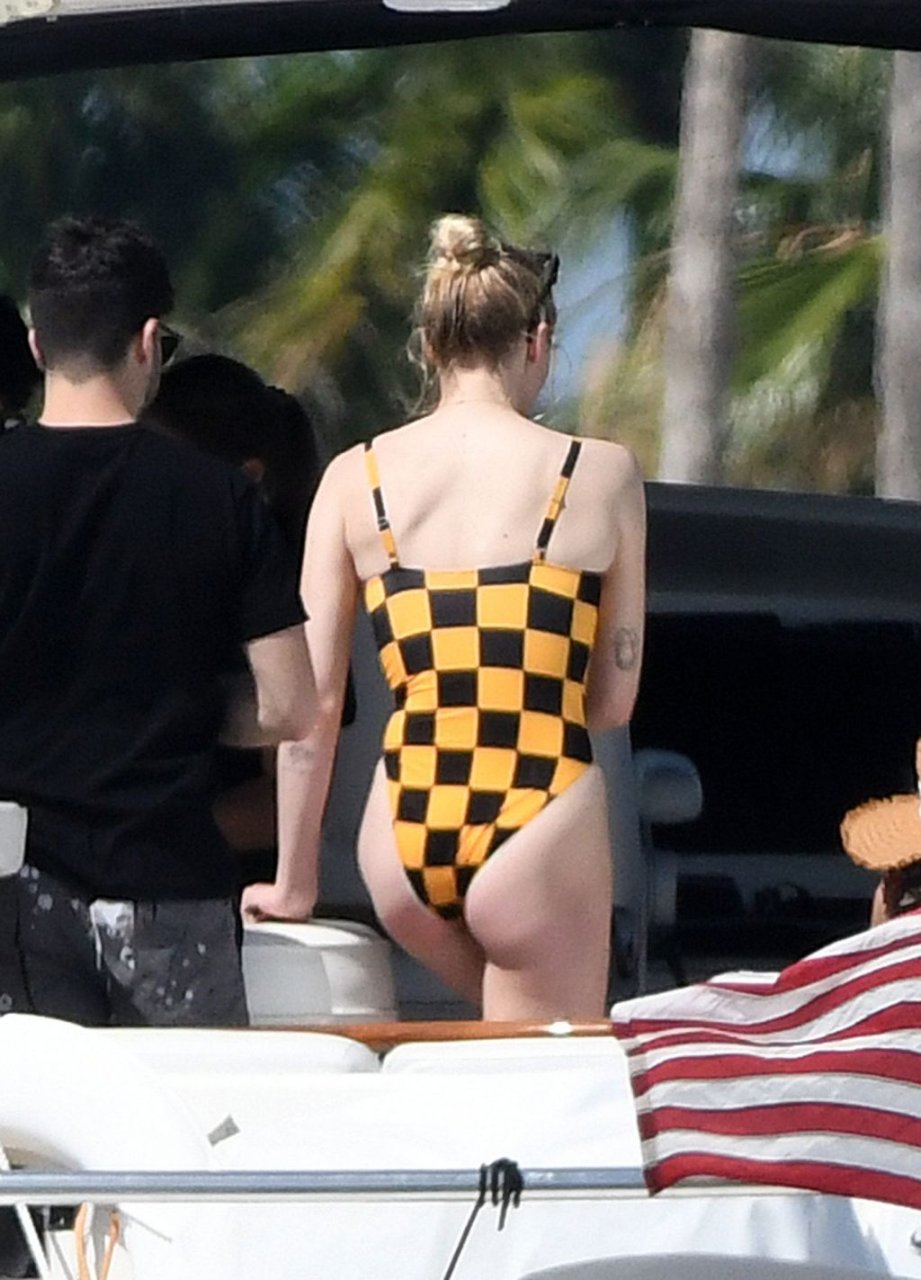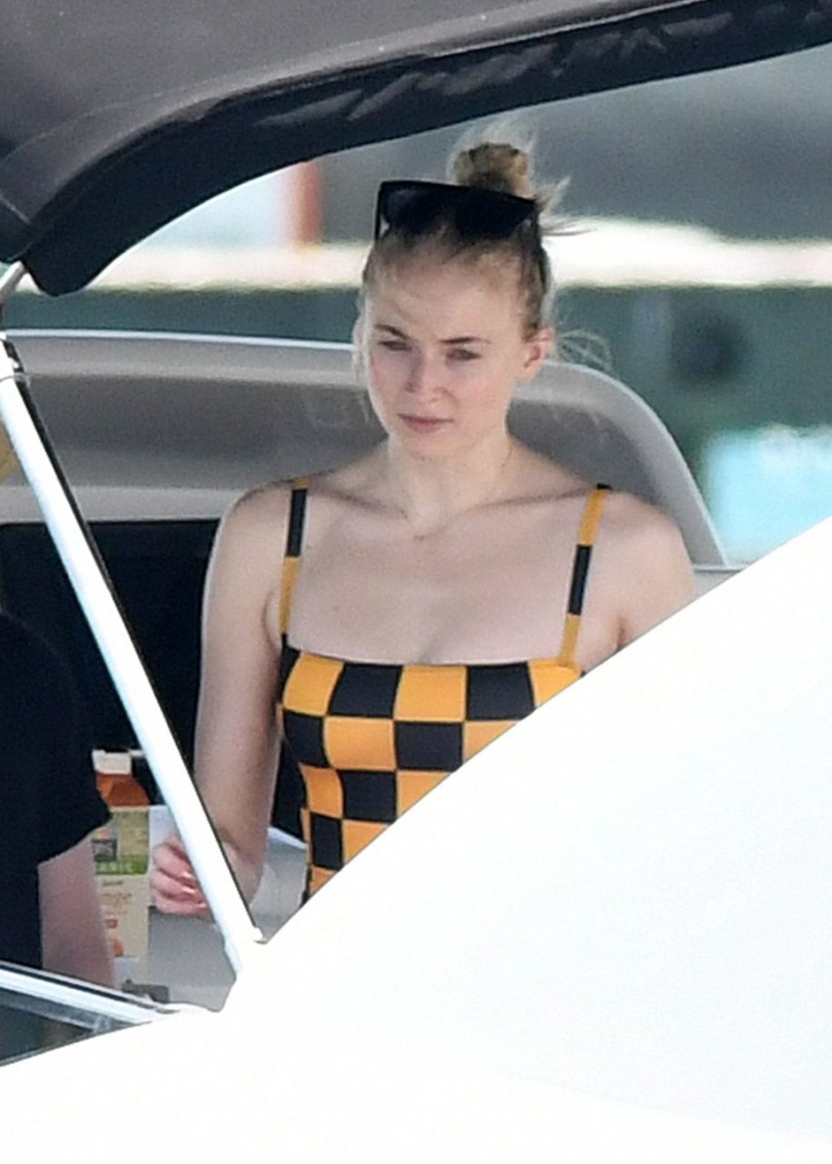 La estrella de “Game of Thrones” Sophie Turner lleva un traje de baño a cuadros mientras disfruta con The Jonas Brothers y Priyanka Chopra en Miami, 25/03/2019.