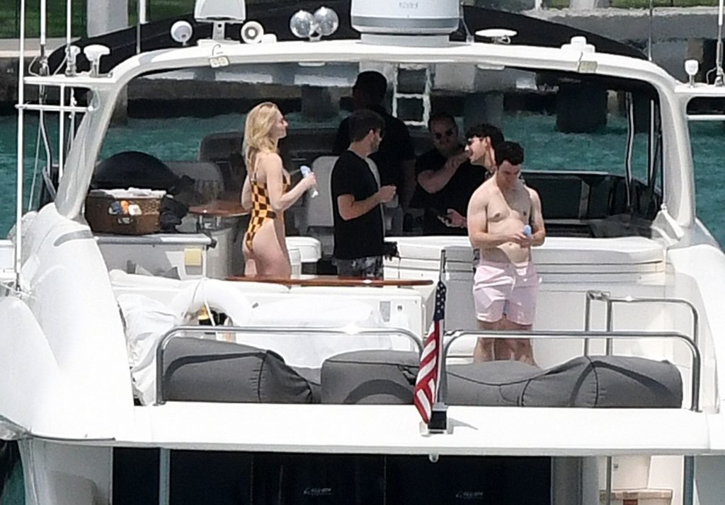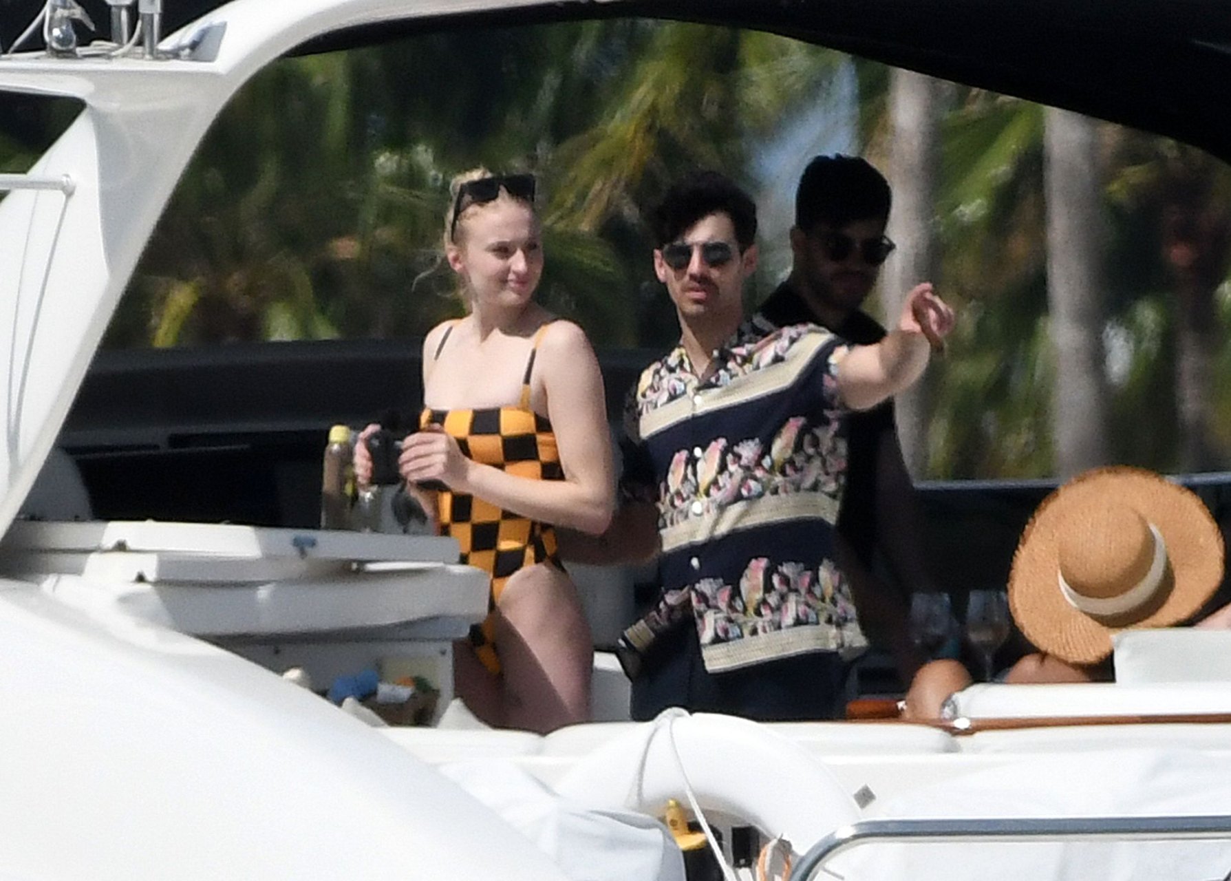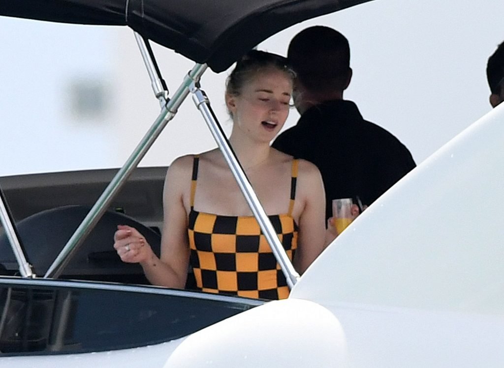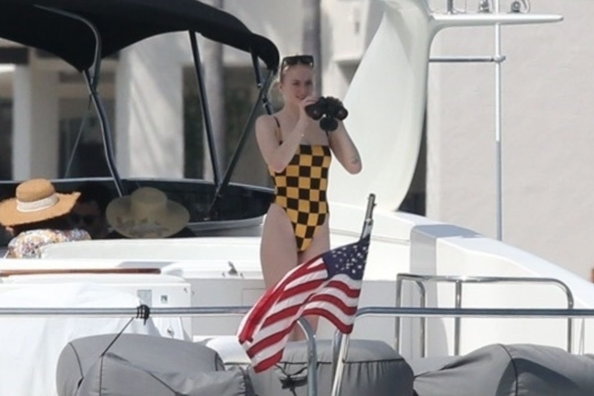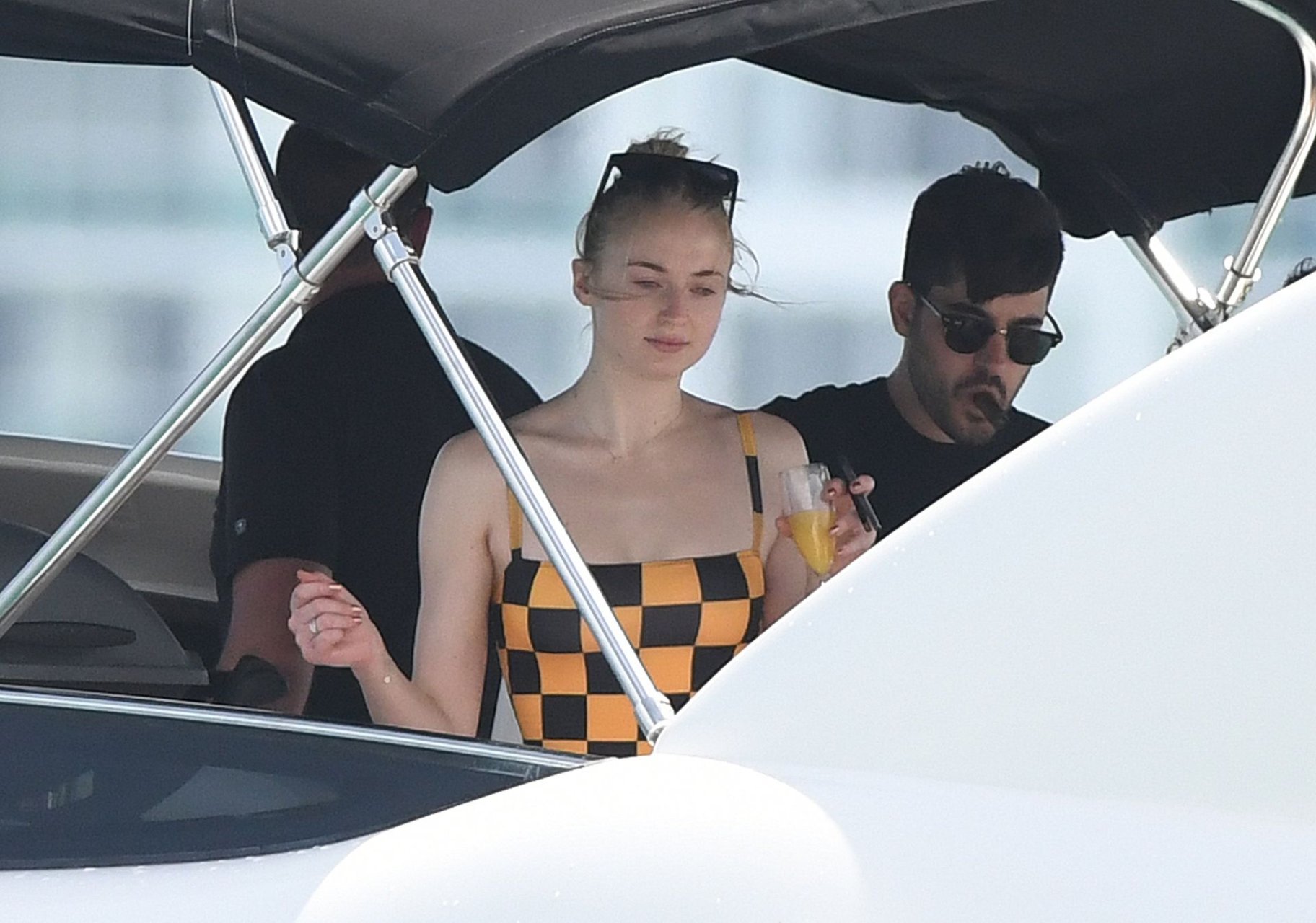 La estrella de “Game of Thrones” Sophie Turner lleva un traje de baño a cuadros mientras disfruta con The Jonas Brothers y Priyanka Chopra en Miami, 25/03/2019.