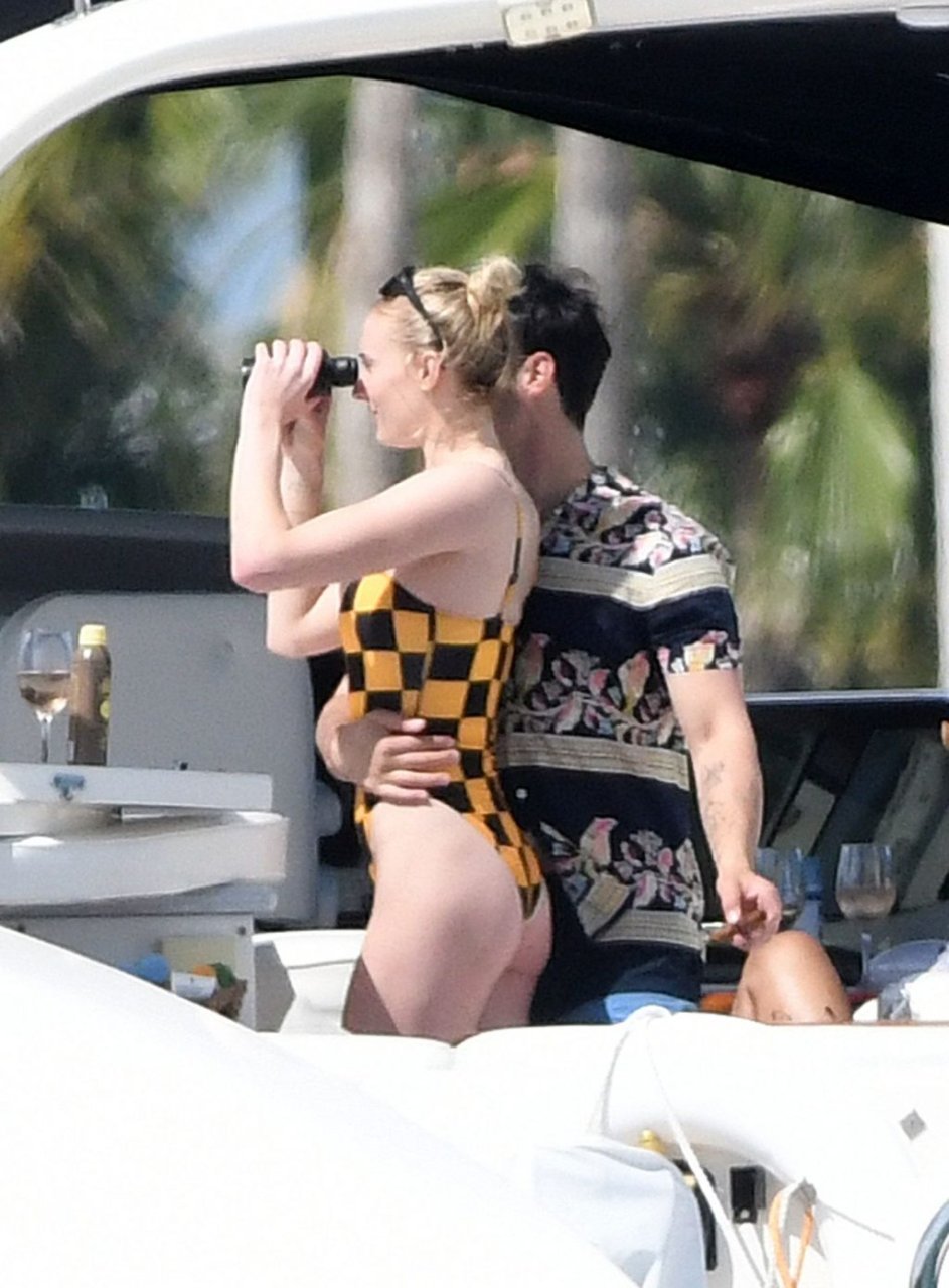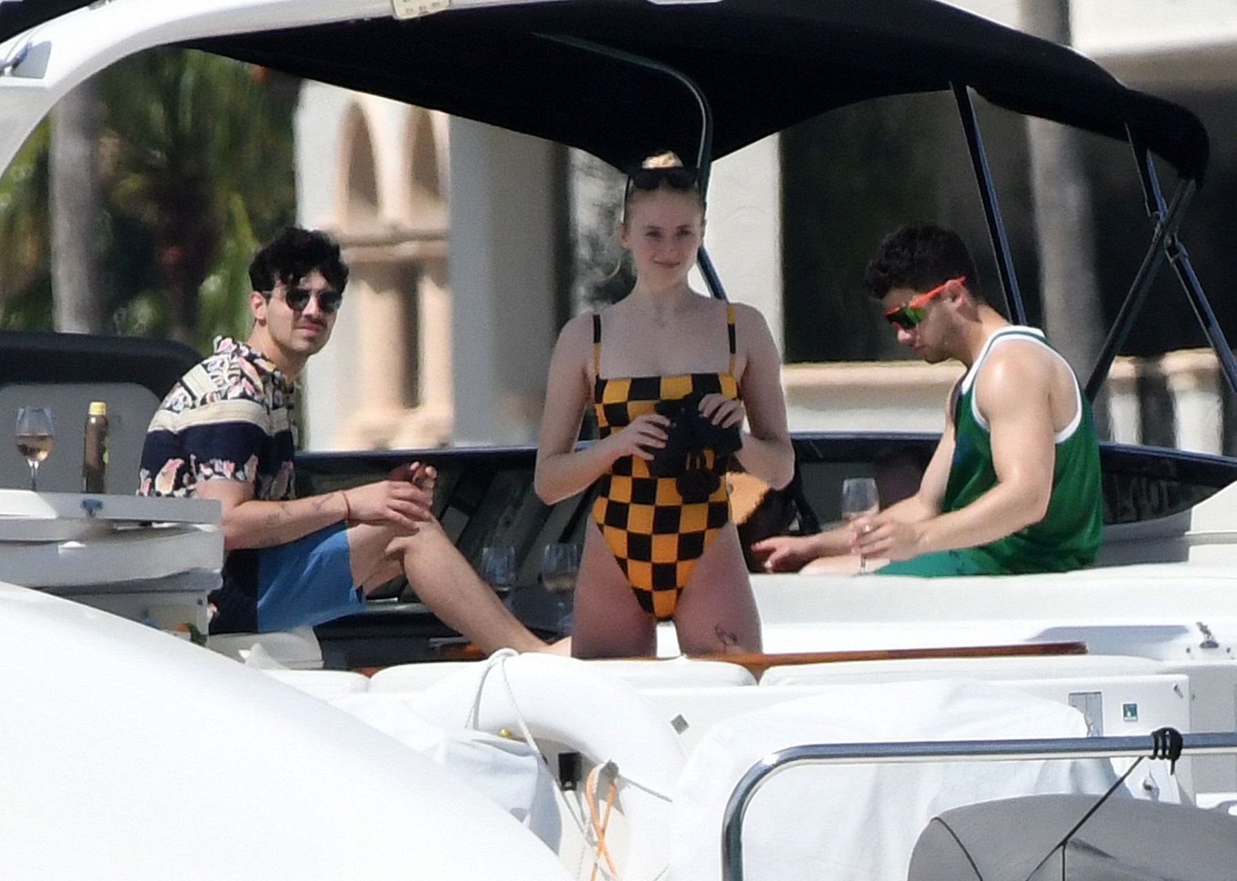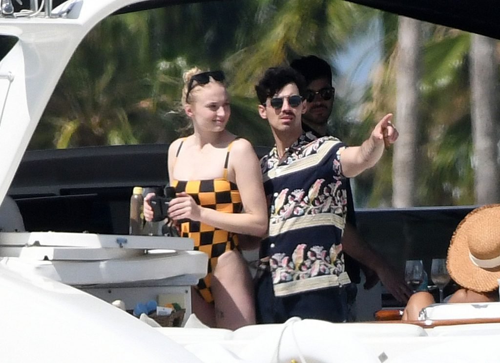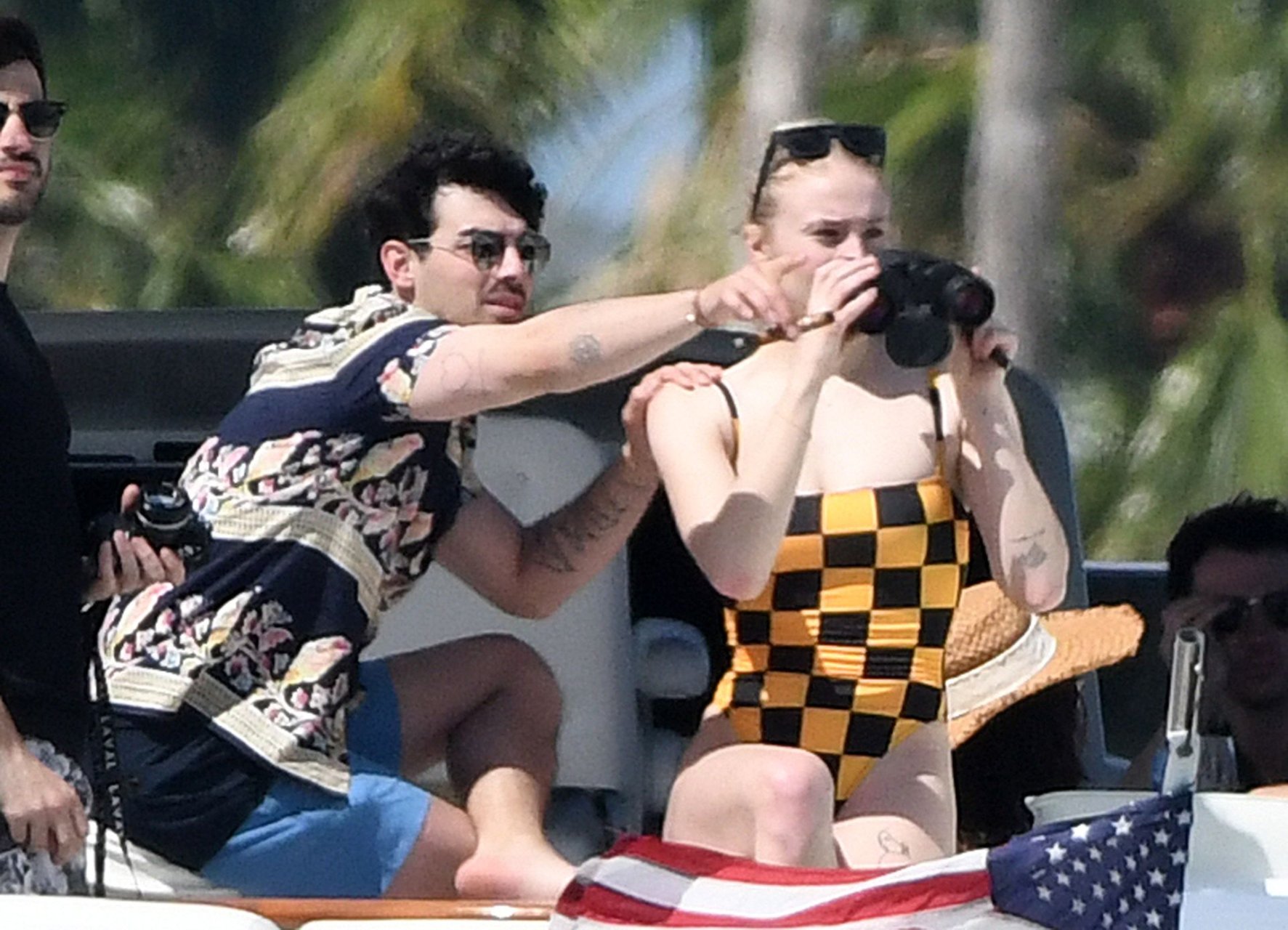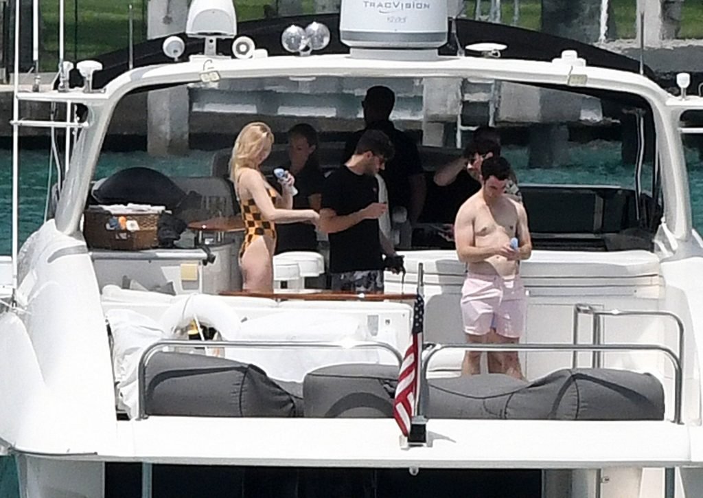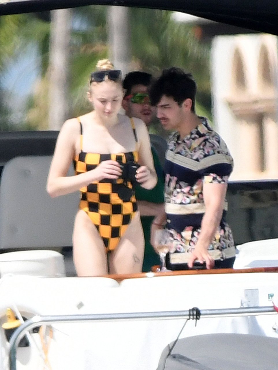 La estrella de “Game of Thrones” Sophie Turner lleva un traje de baño a cuadros mientras disfruta con The Jonas Brothers y Priyanka Chopra en Miami, 25/03/2019.