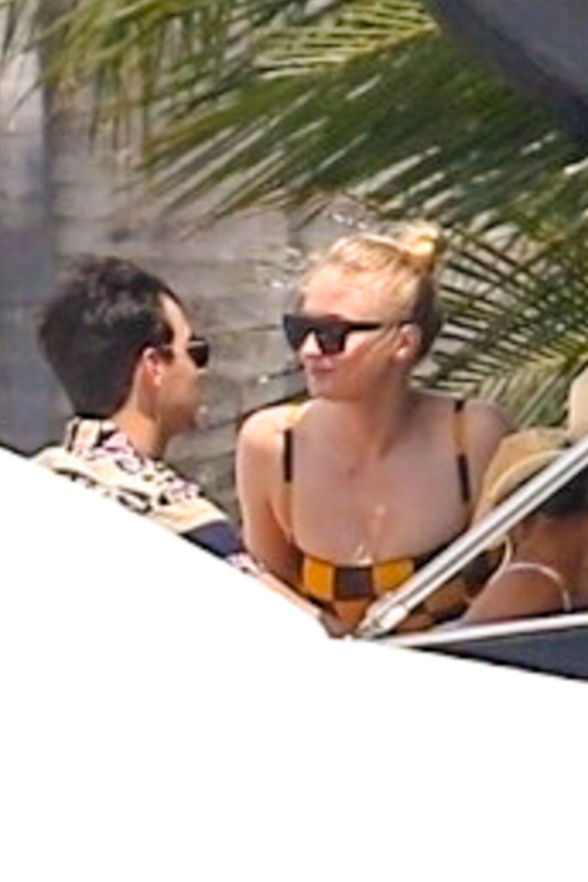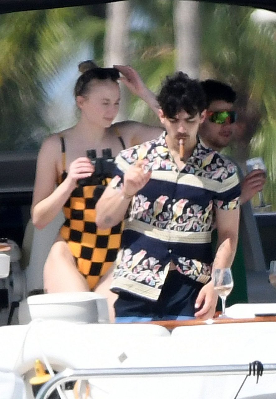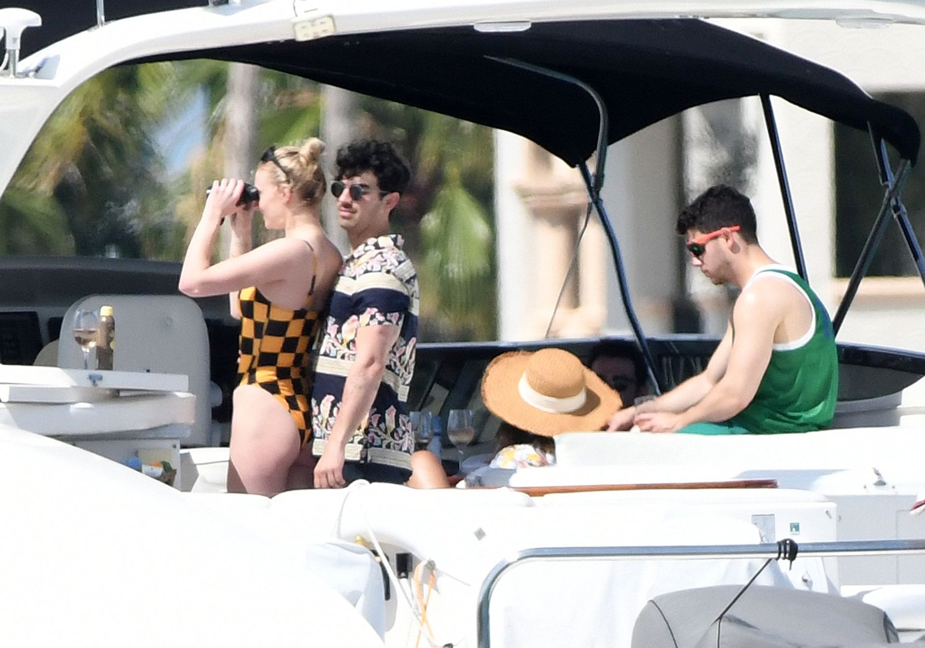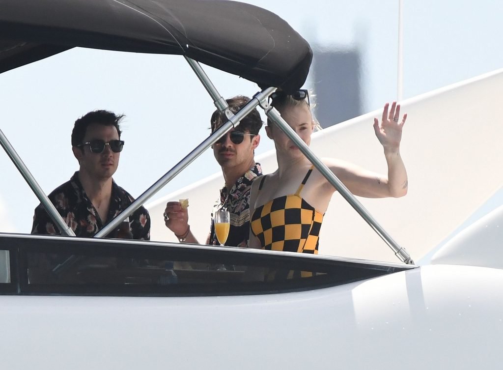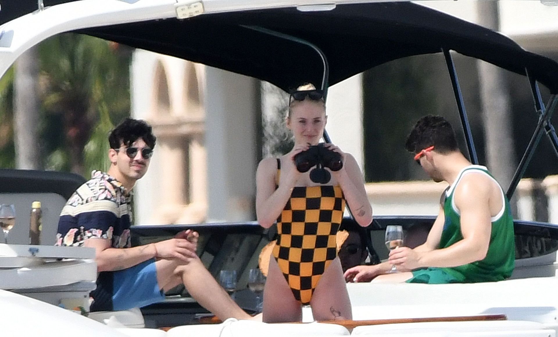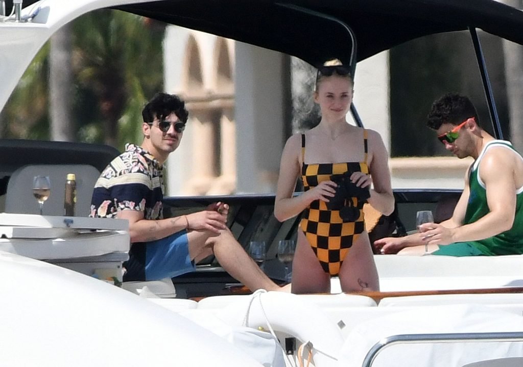 La estrella de “Game of Thrones” Sophie Turner lleva un traje de baño a cuadros mientras disfruta con The Jonas Brothers y Priyanka Chopra en Miami, 25/03/2019.