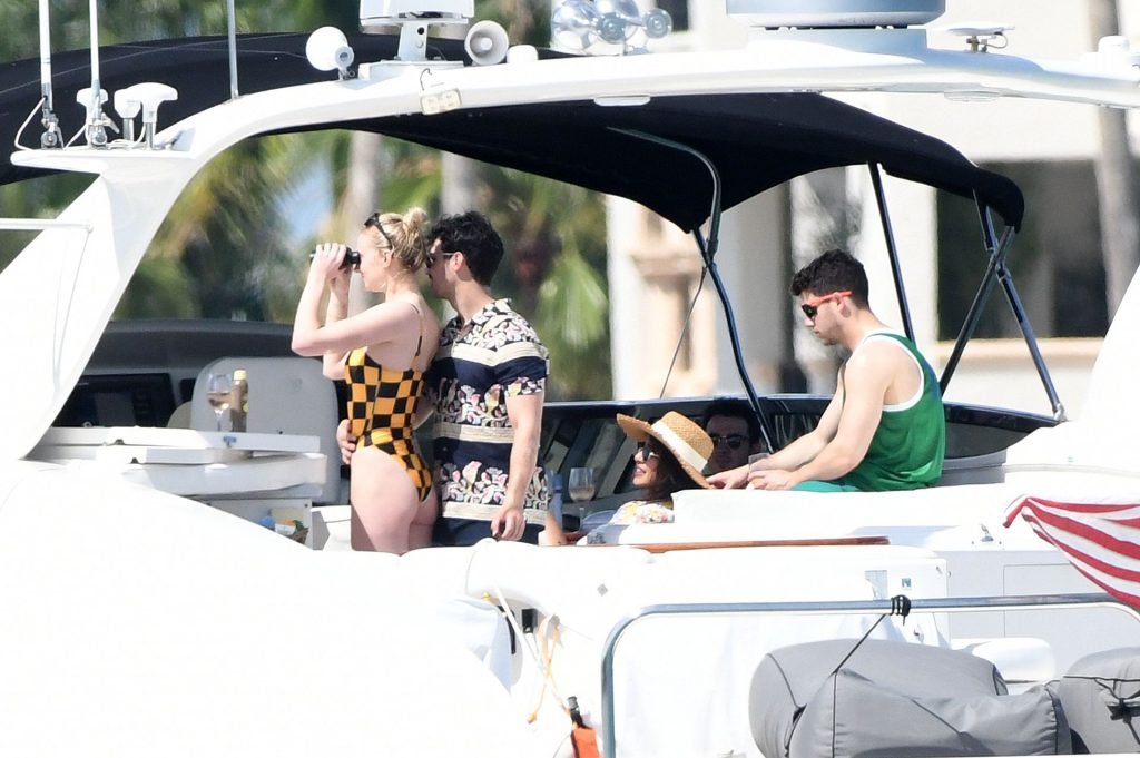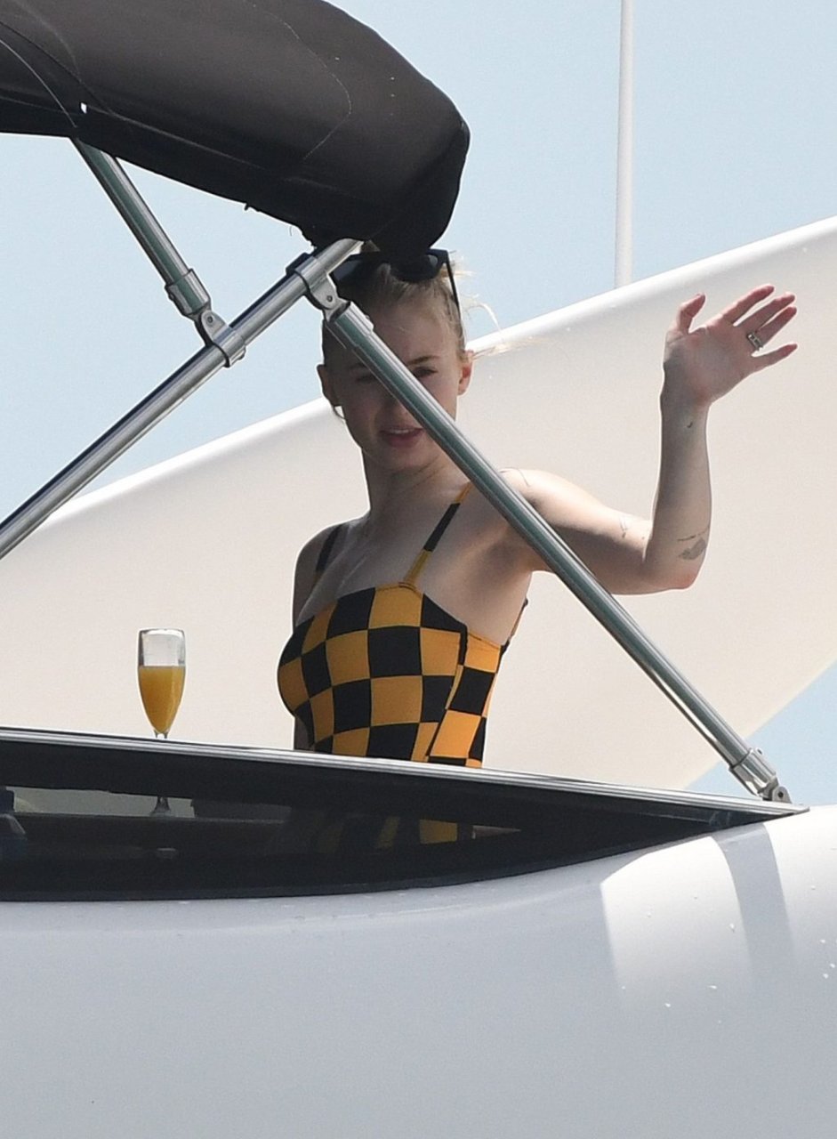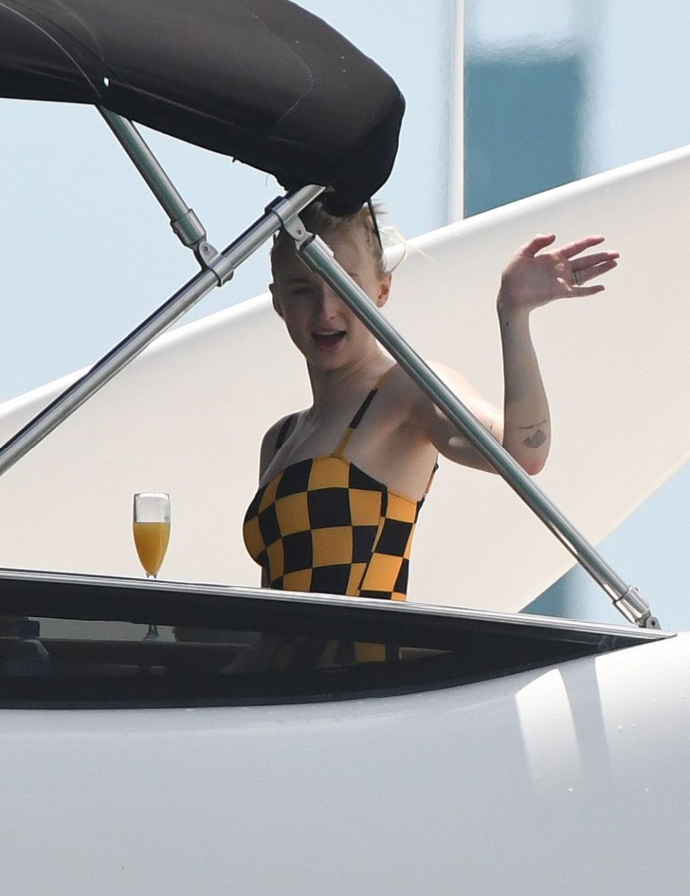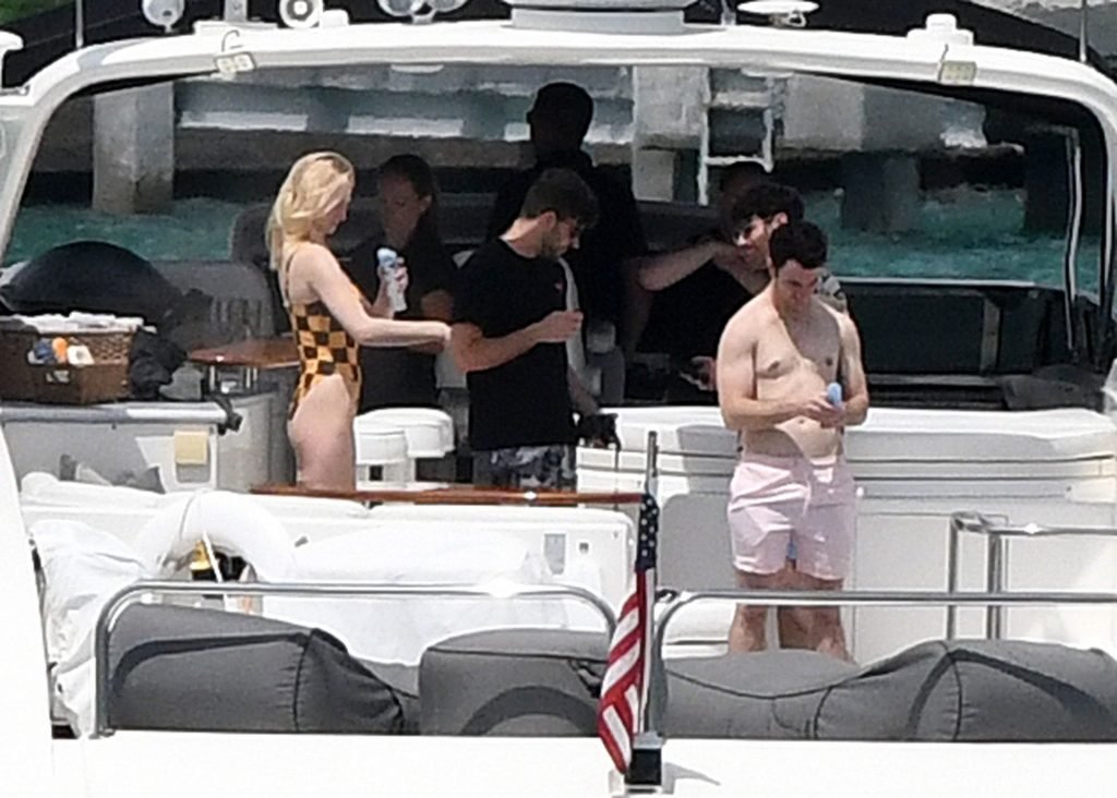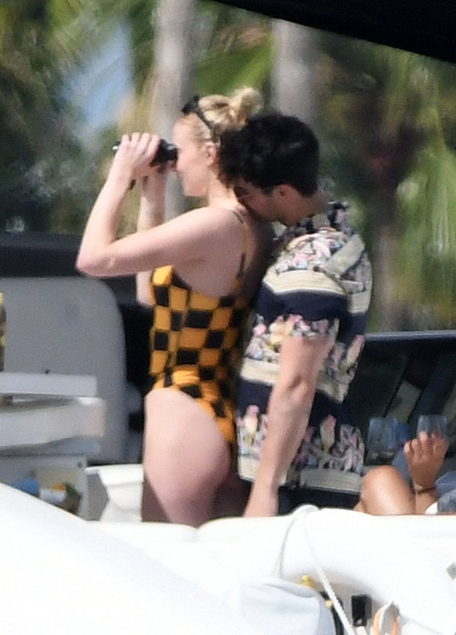 La estrella de “Game of Thrones” Sophie Turner lleva un traje de baño a cuadros mientras disfruta con The Jonas Brothers y Priyanka Chopra en Miami, 25/03/2019.