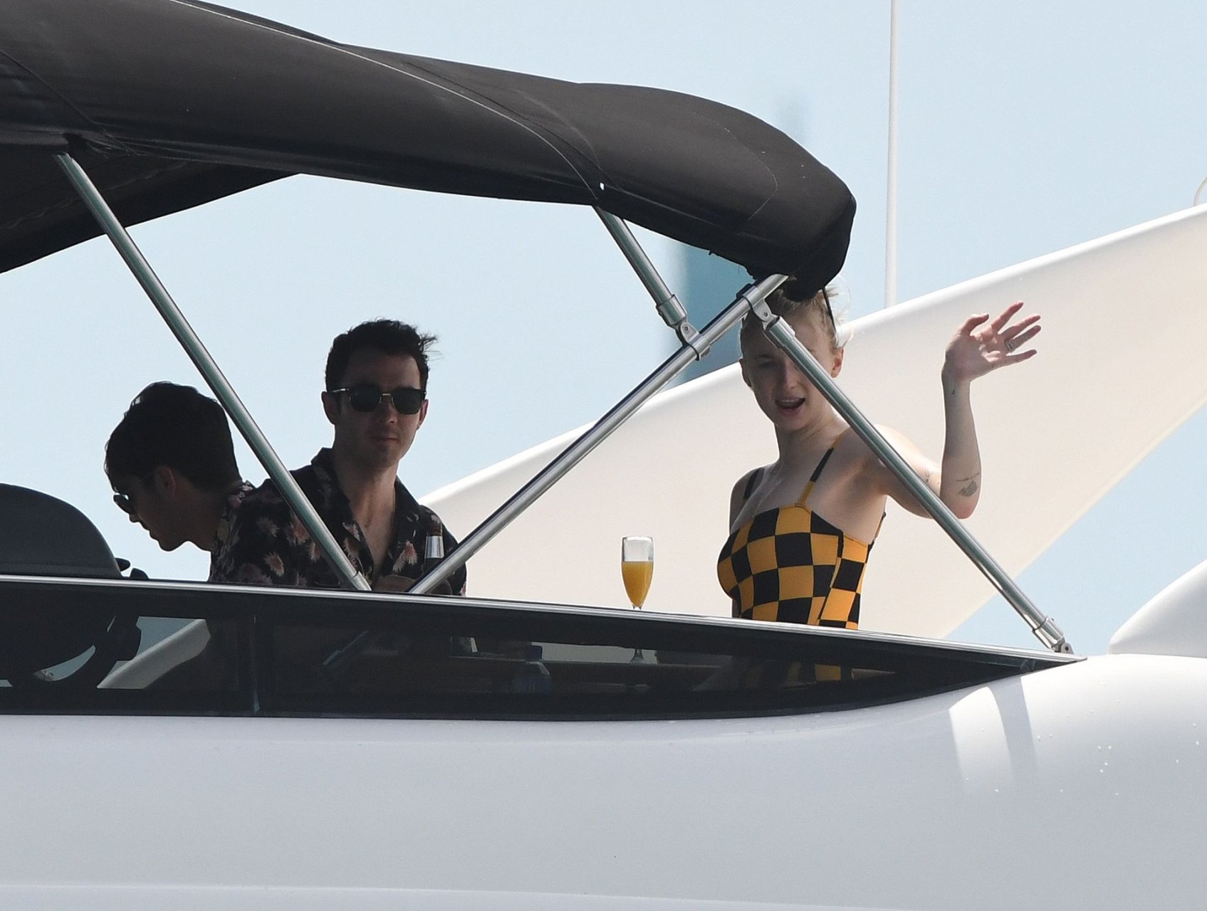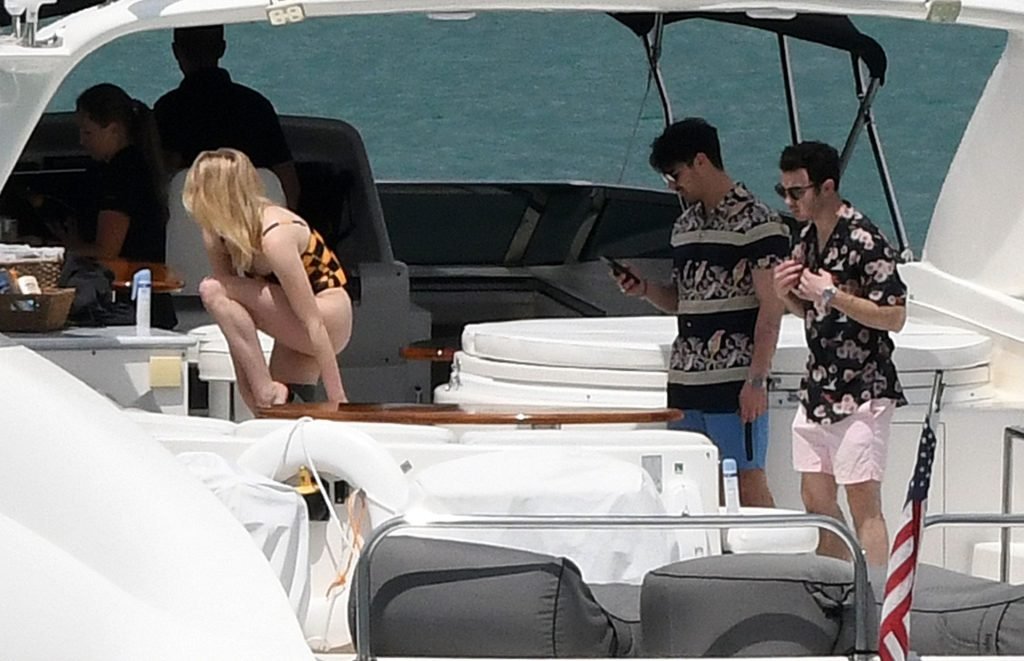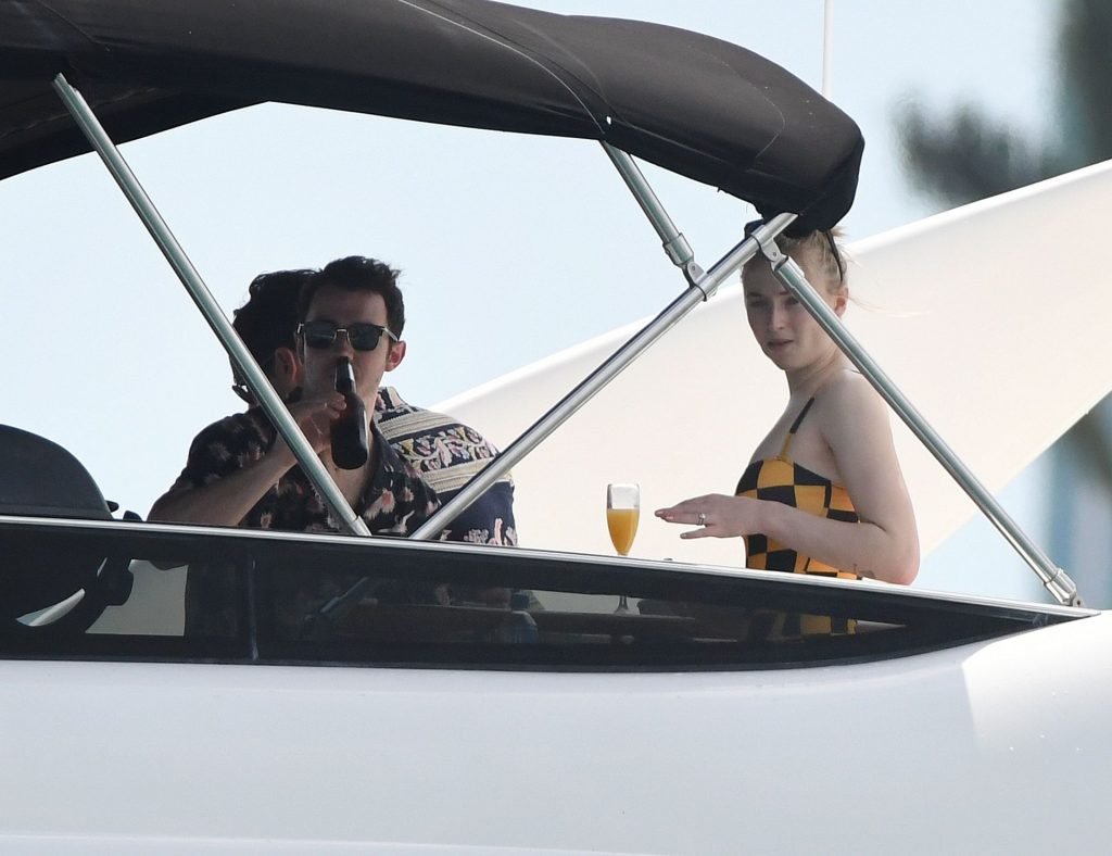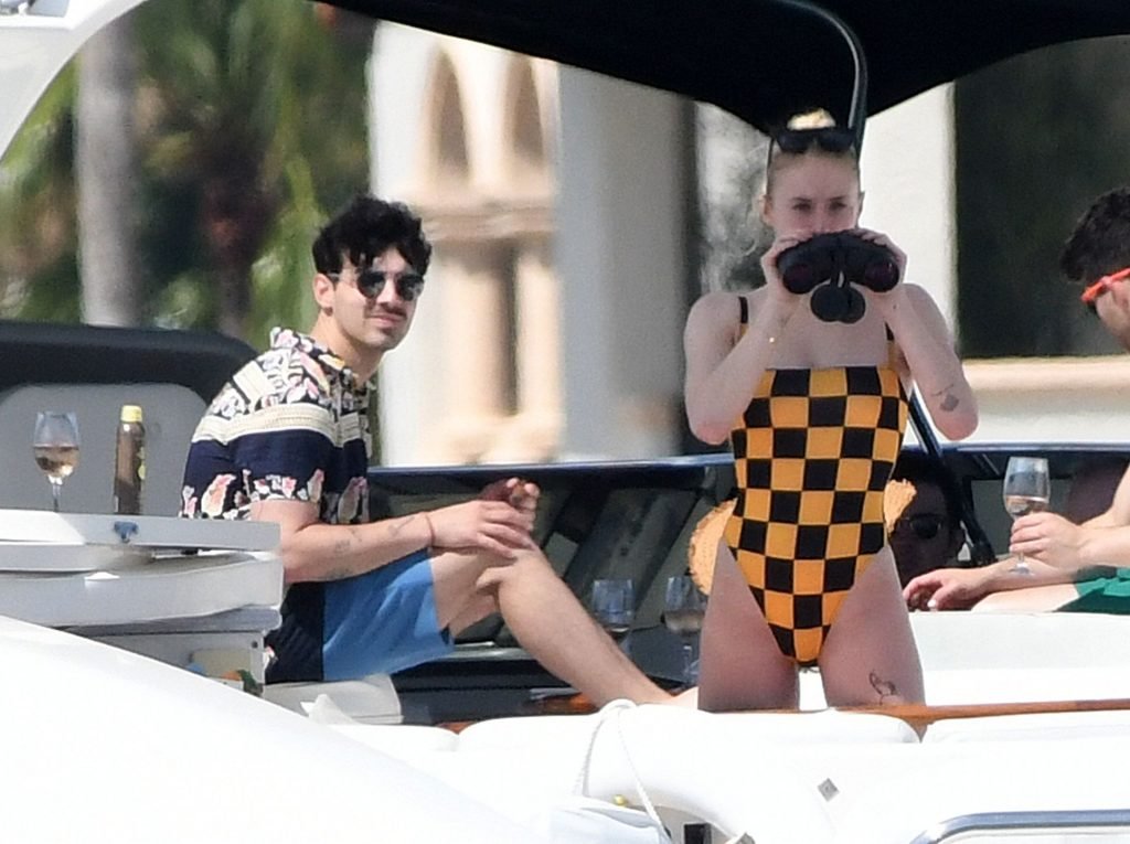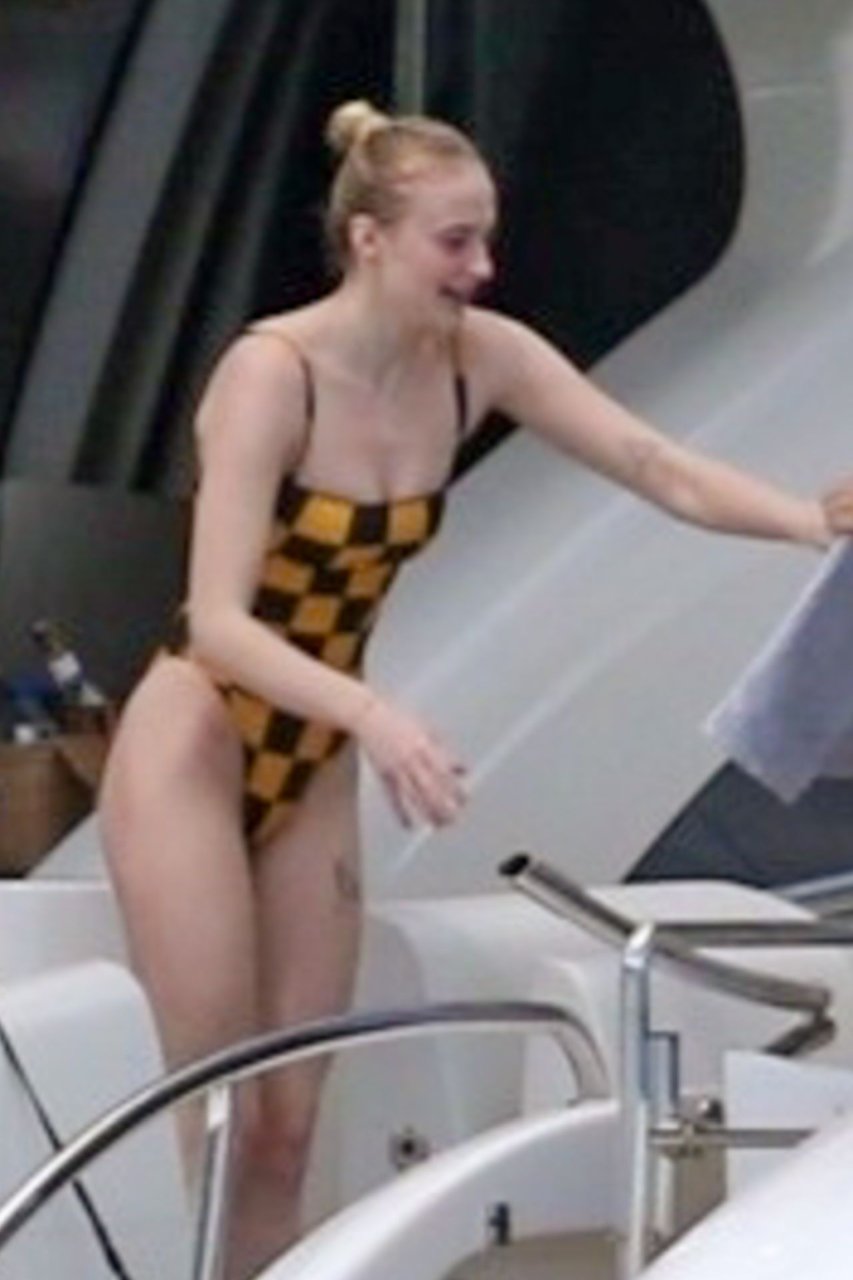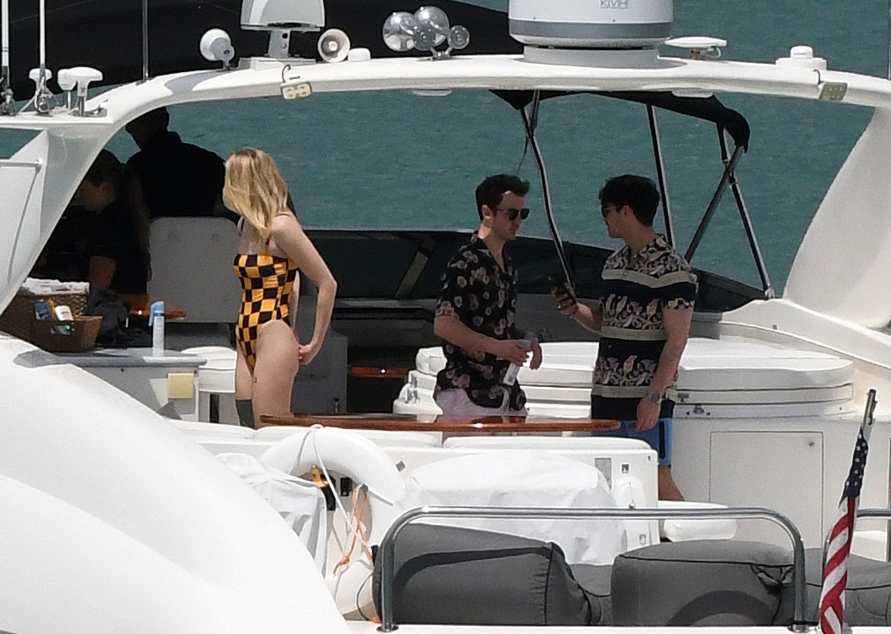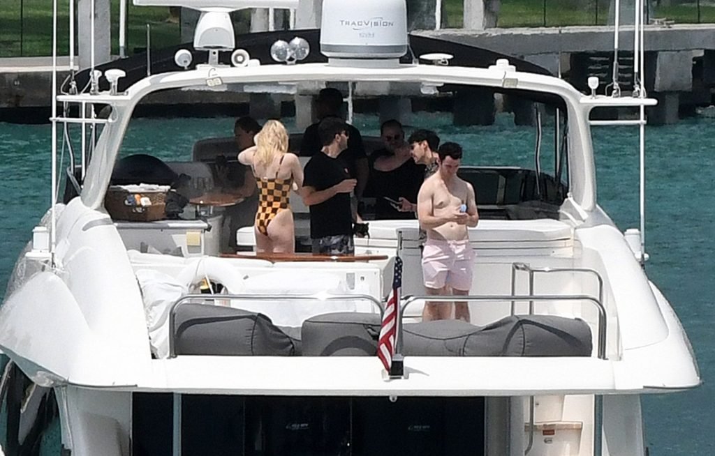 La estrella de “Game of Thrones” Sophie Turner lleva un traje de baño a cuadros mientras disfruta con The Jonas Brothers y Priyanka Chopra en Miami, 25/03/2019.