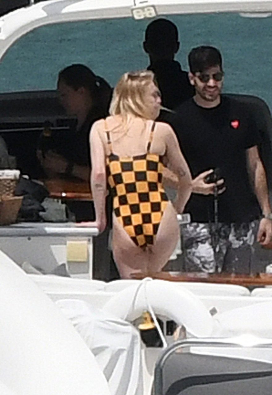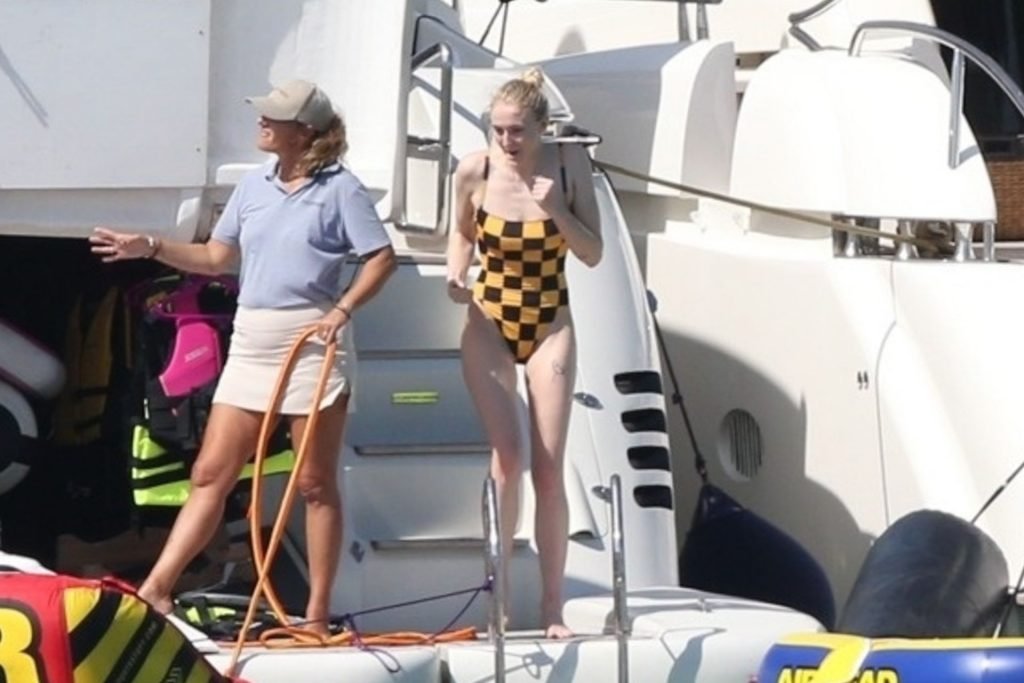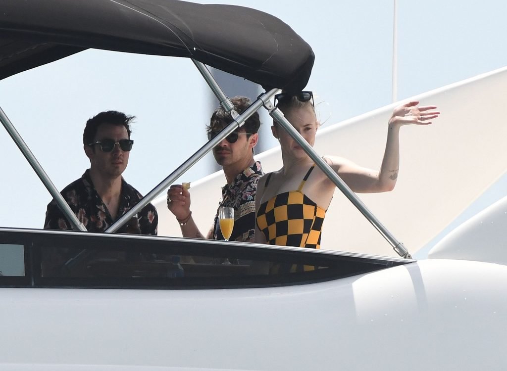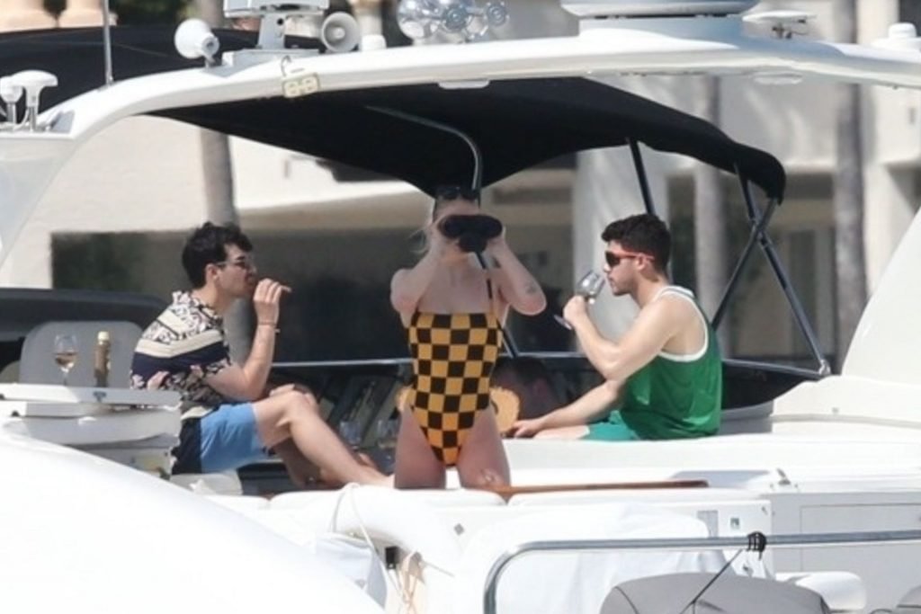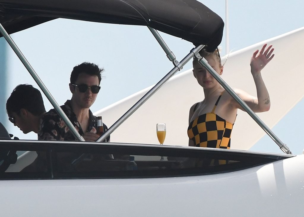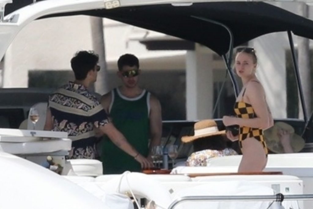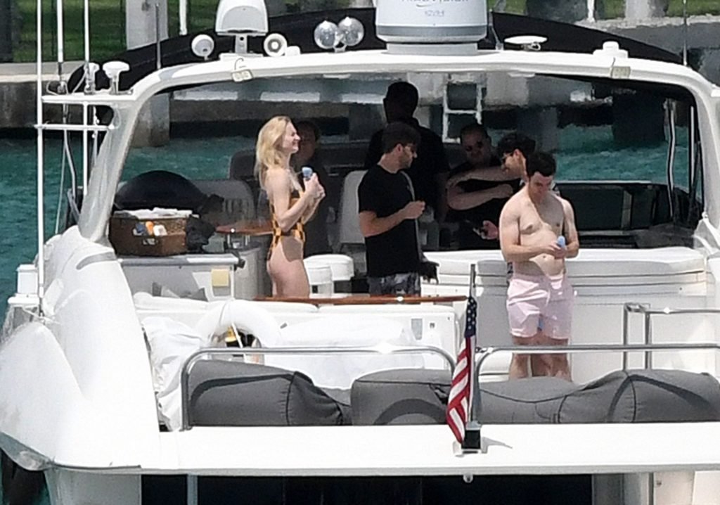 La estrella de “Game of Thrones” Sophie Turner lleva un traje de baño a cuadros mientras disfruta con The Jonas Brothers y Priyanka Chopra en Miami, 25/03/2019.