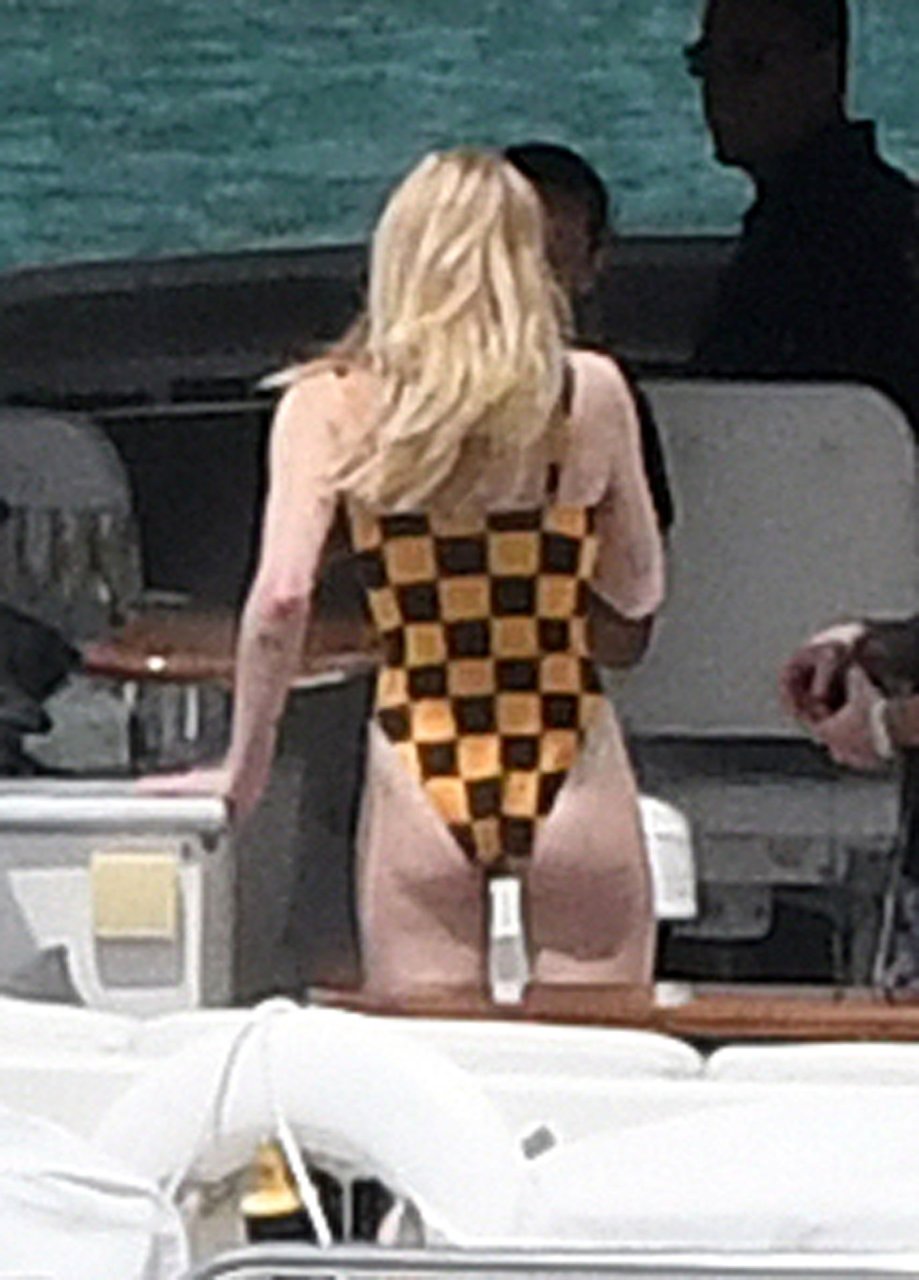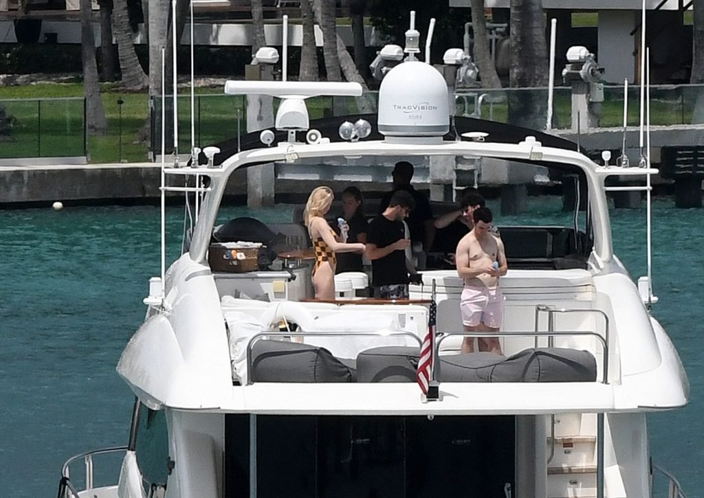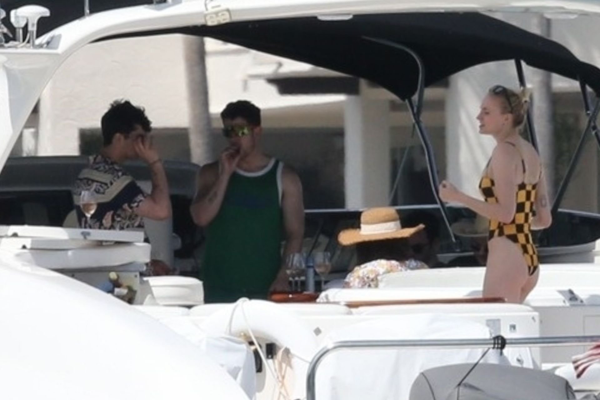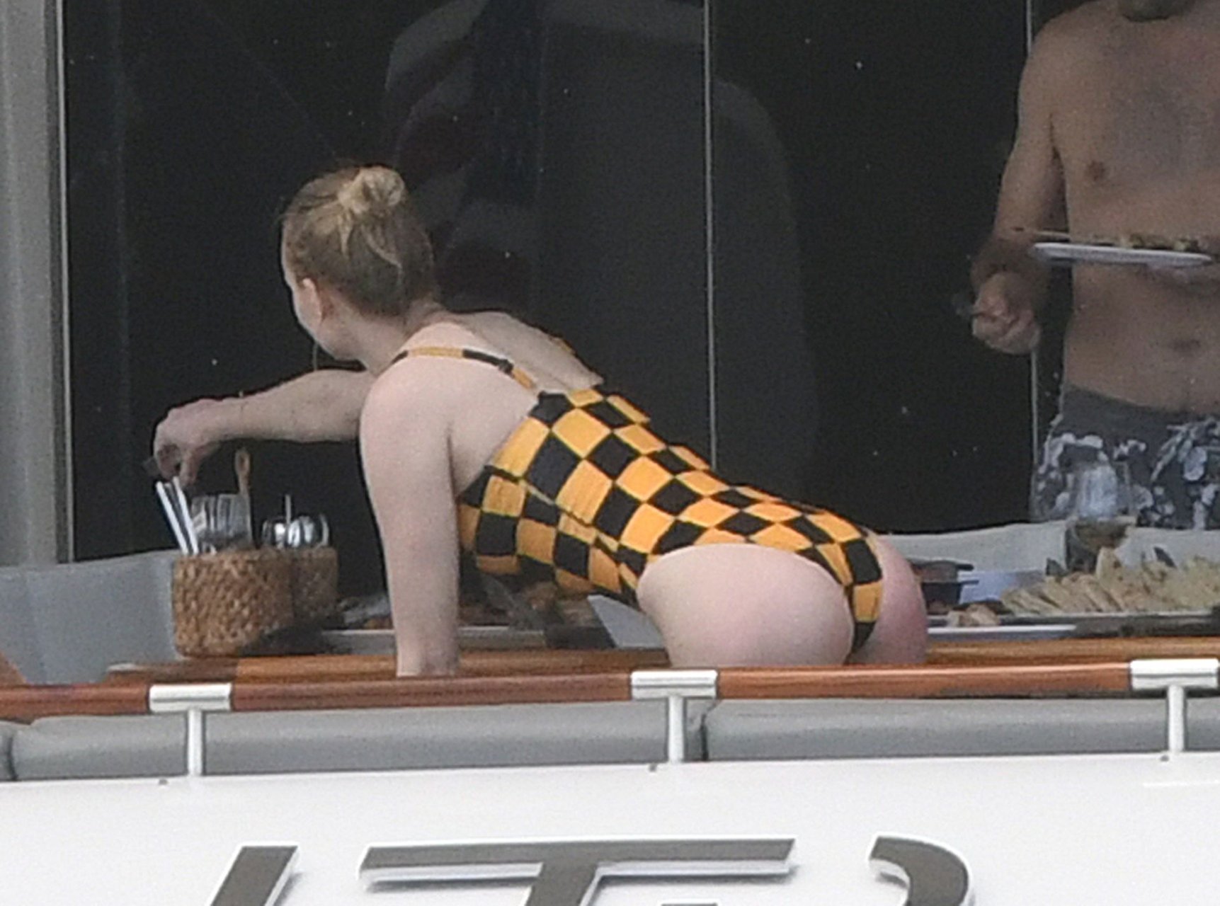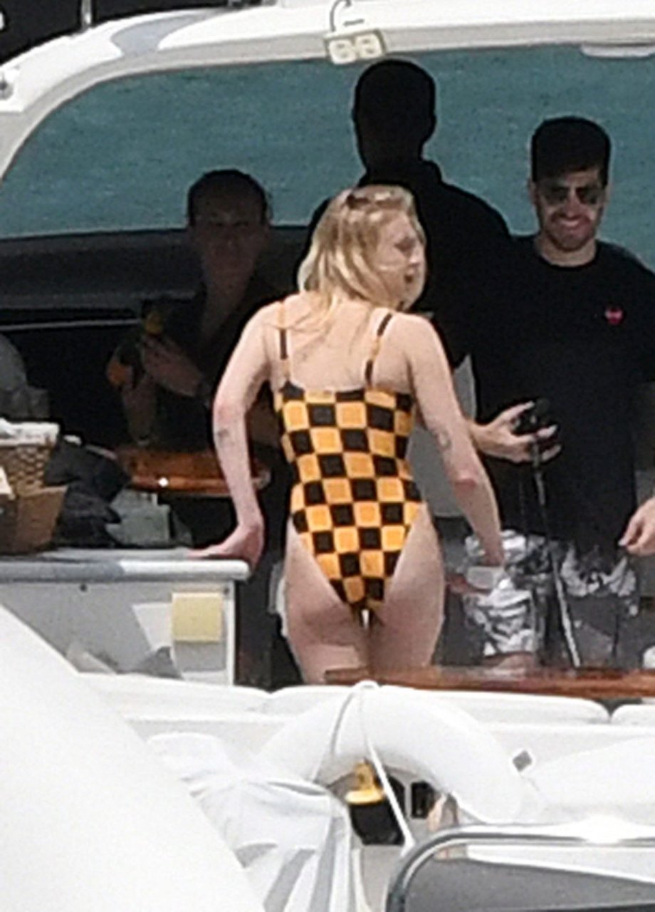 La estrella de “Game of Thrones” Sophie Turner lleva un traje de baño a cuadros mientras disfruta con The Jonas Brothers y Priyanka Chopra en Miami, 25/03/2019.