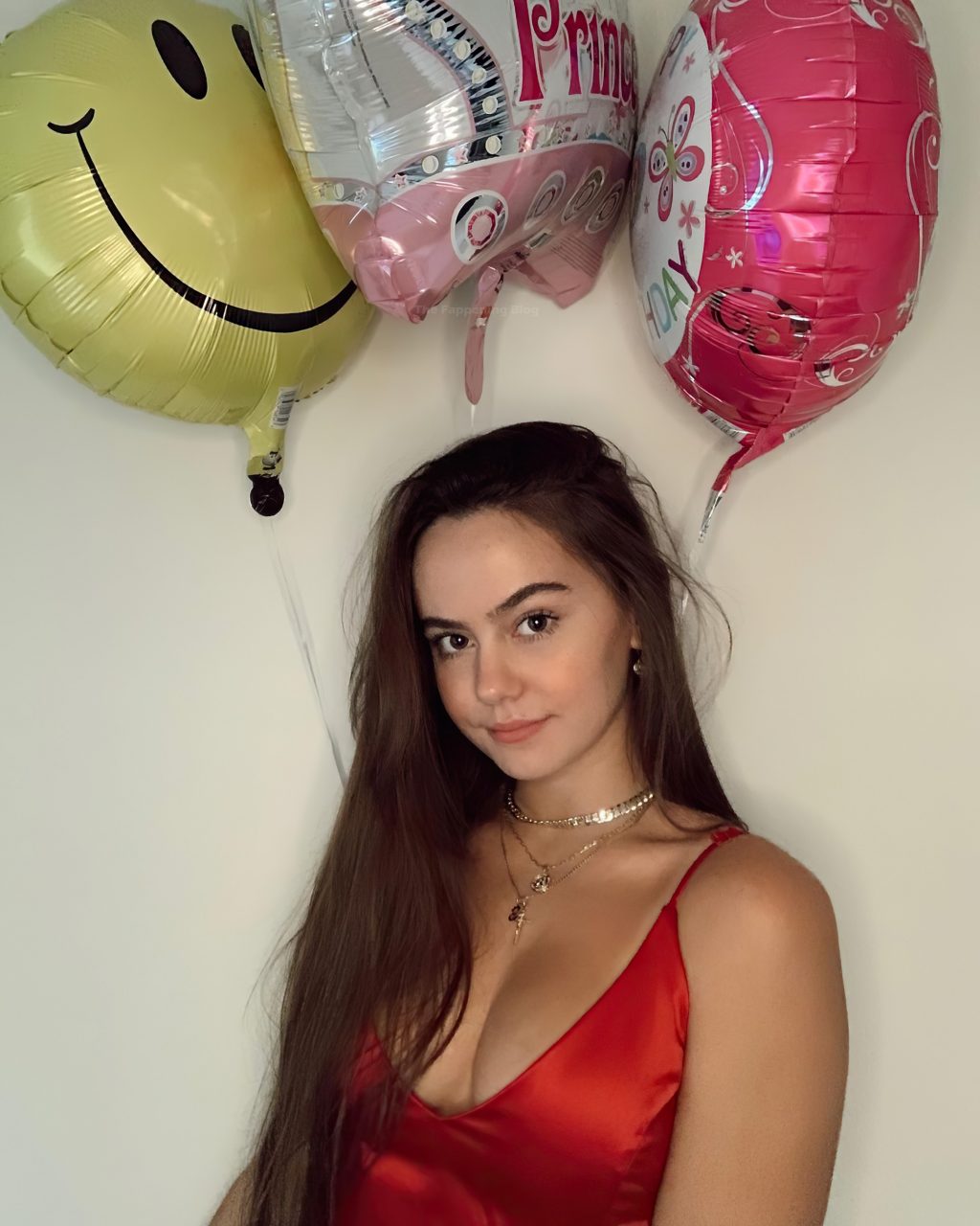 La estrella canadiense de TikTok Spencer Barbosa muestra su escote mientras posa con un sexy vestido rojo celebrando su 18 cumpleaños en Instagram, 29/10/2020.