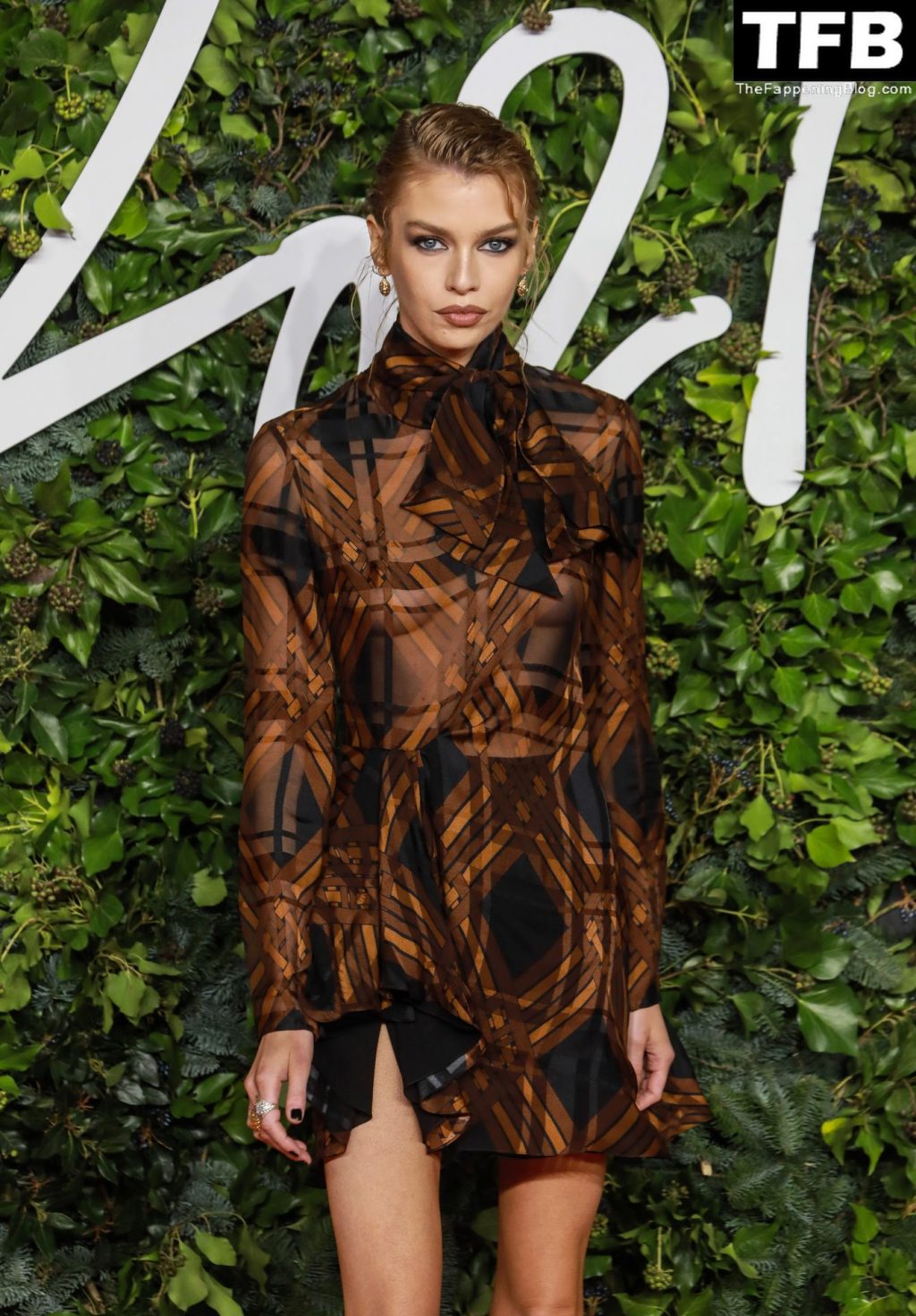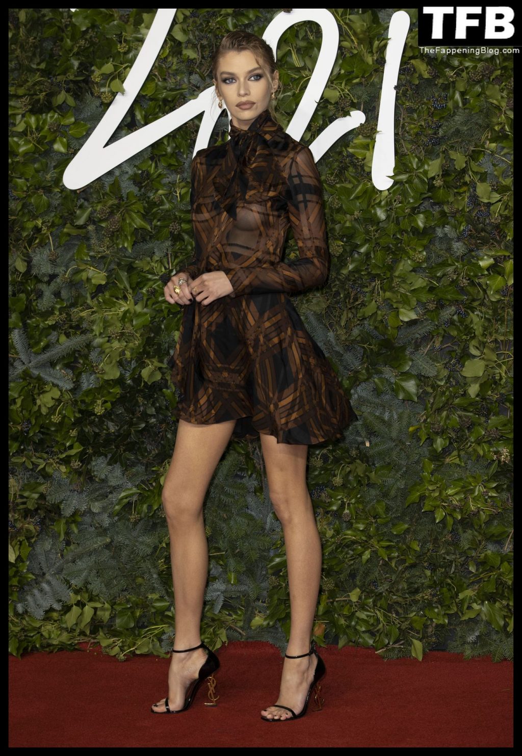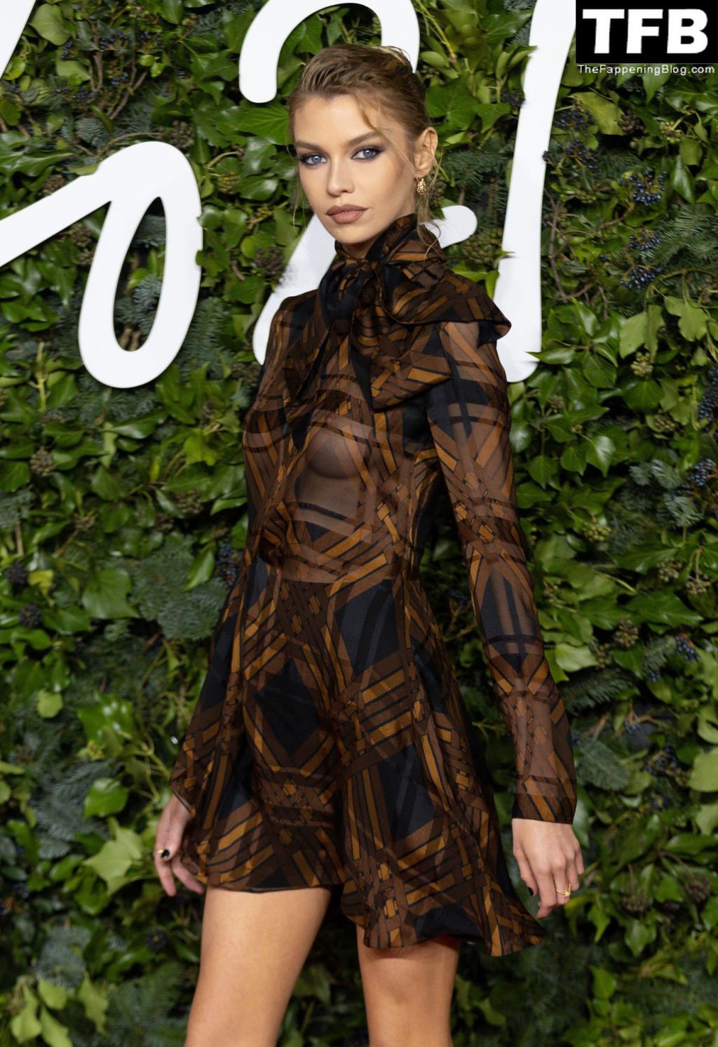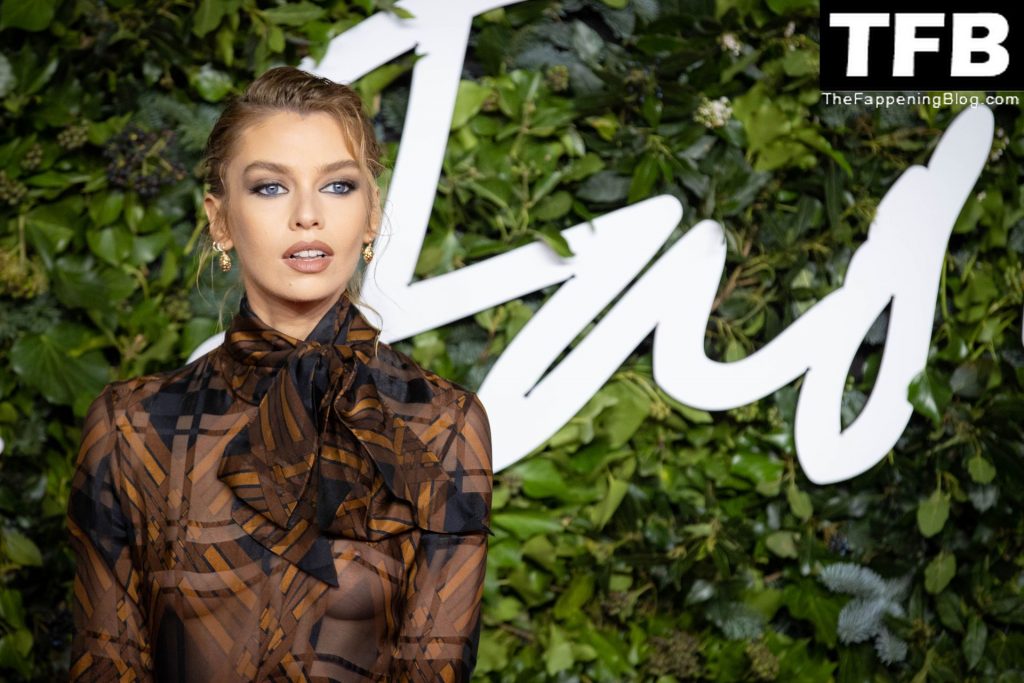 Modelo y estrella de The Fappening Stella Maxwell es vista sin sostén llegando a Los Fashion Awards en Londres, 29/11/2021.