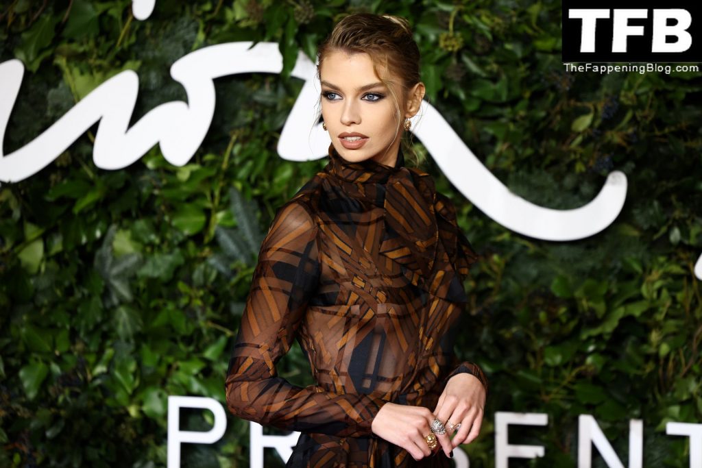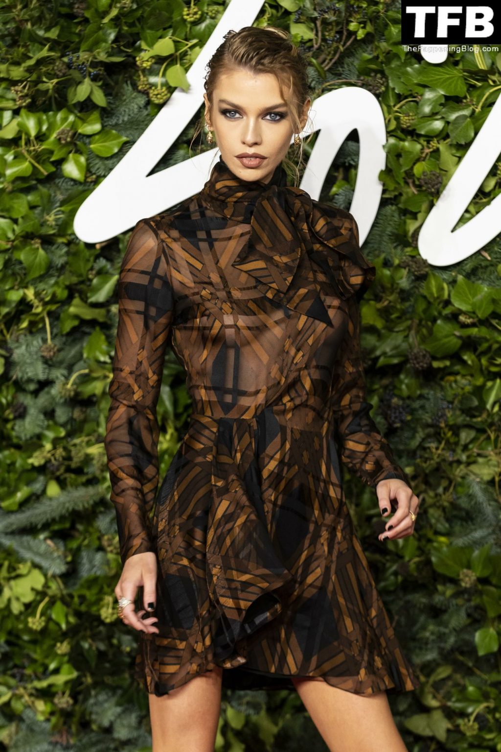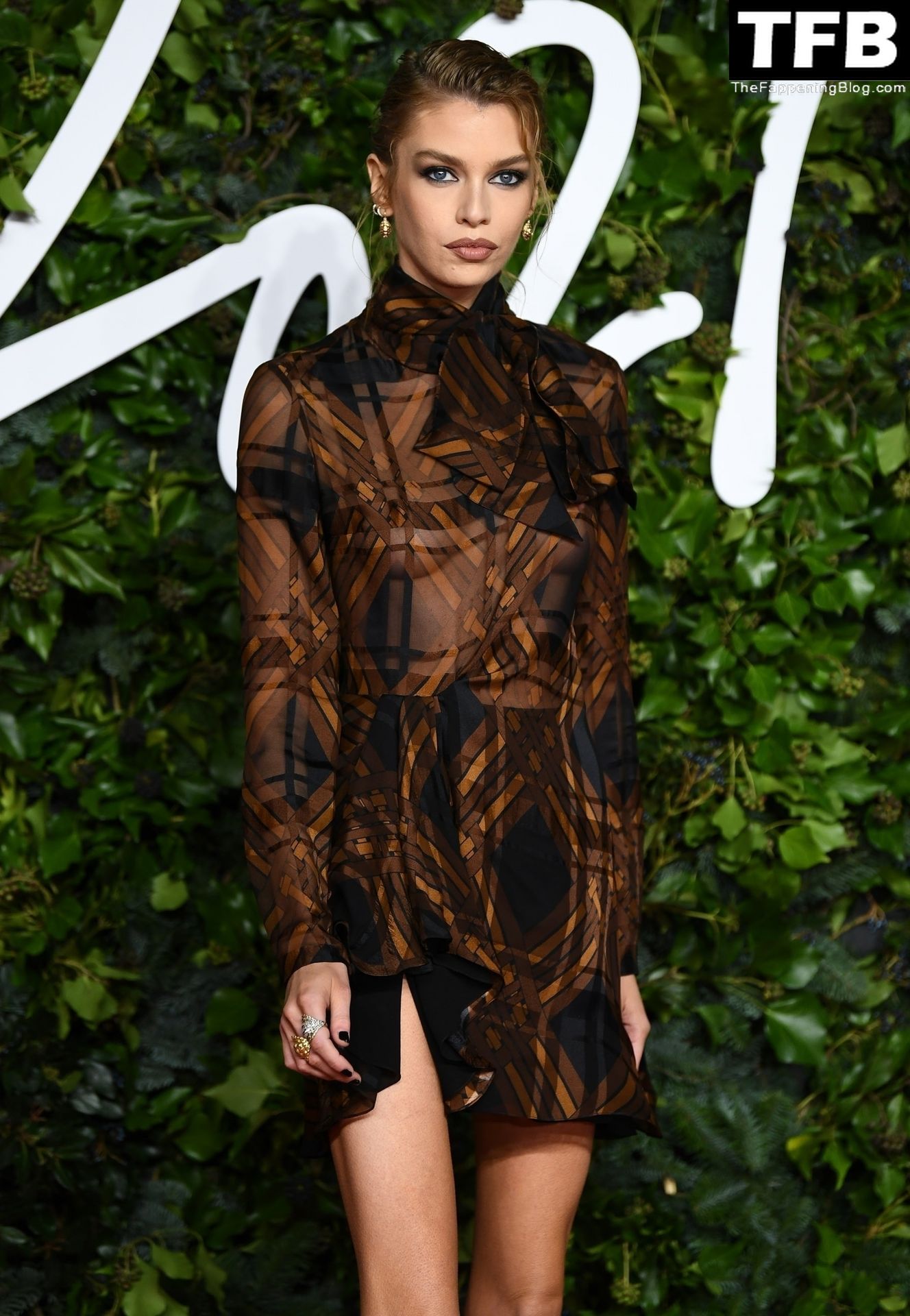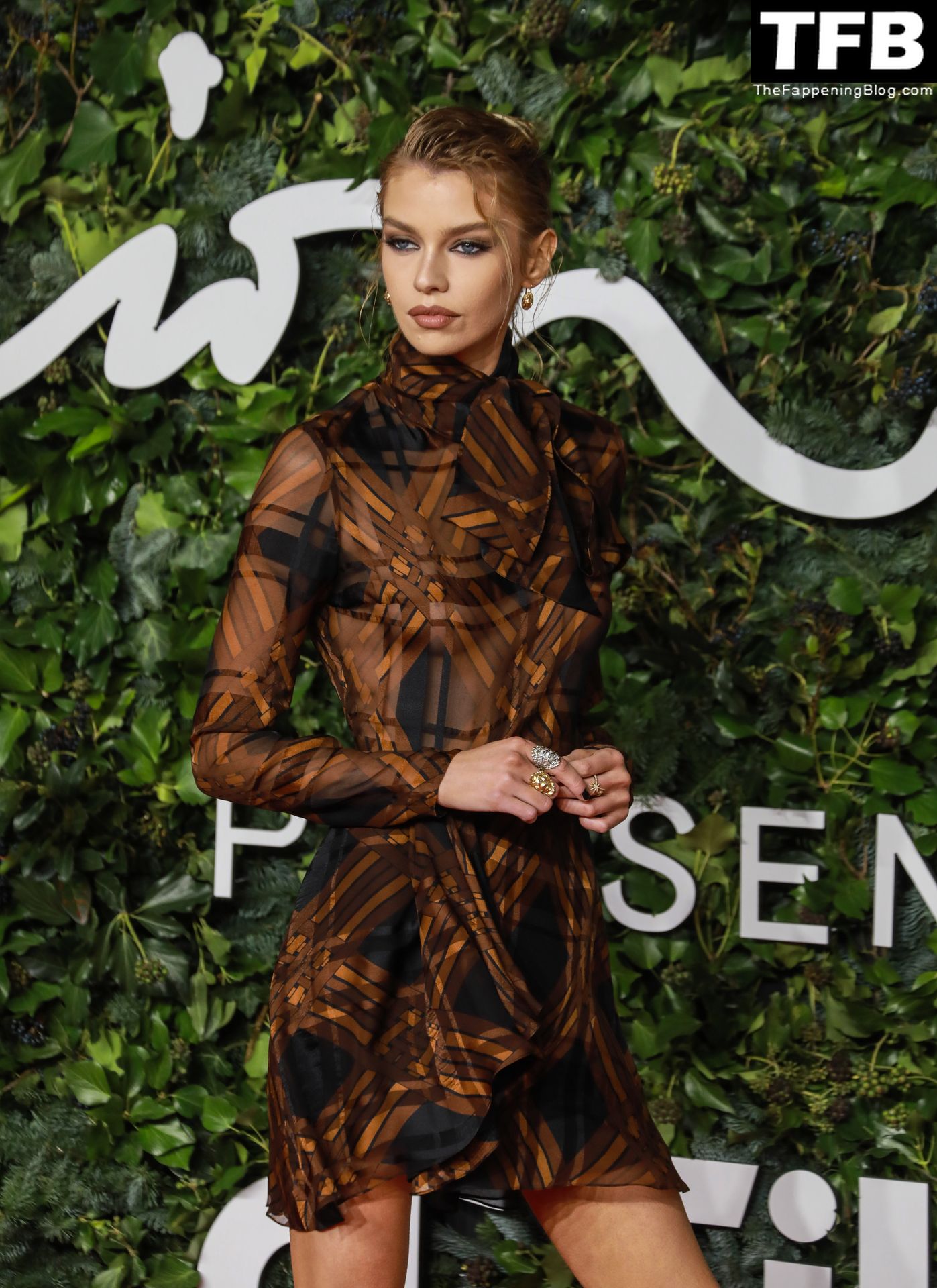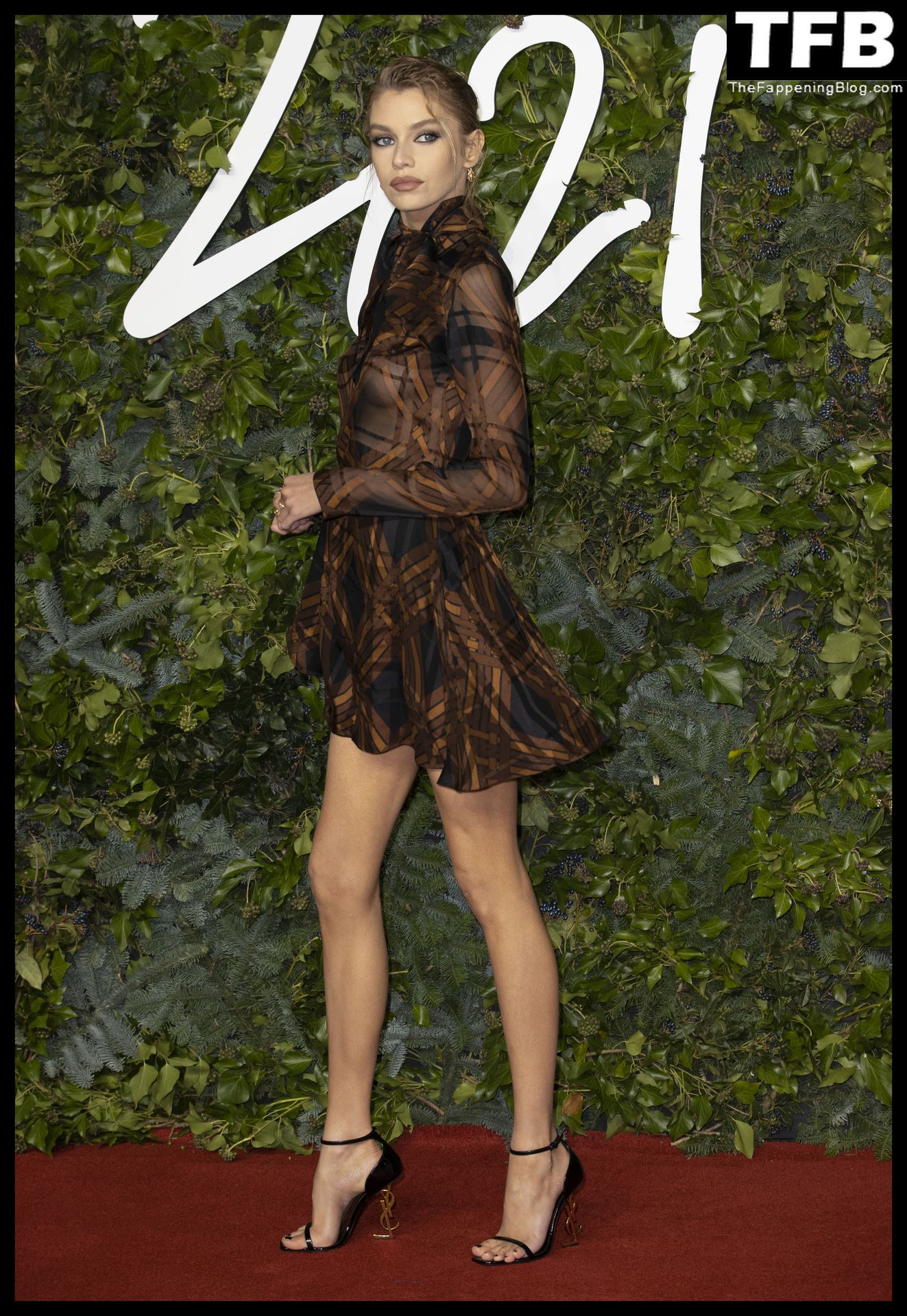 Modelo y estrella de The Fappening Stella Maxwell es vista sin sostén llegando a Los Fashion Awards en Londres, 29/11/2021.