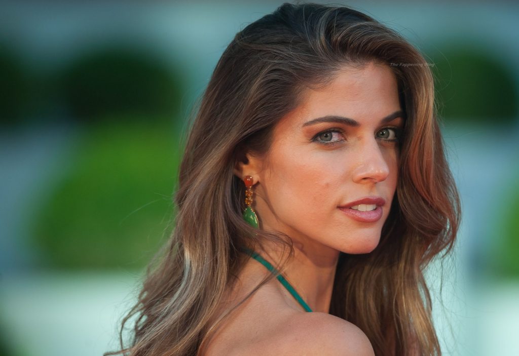 La actriz y modelo peruana Stephanie Cayo se ve con un vestido verde en la alfombra roja dentro del hotel Miramar, 06/07/2021.