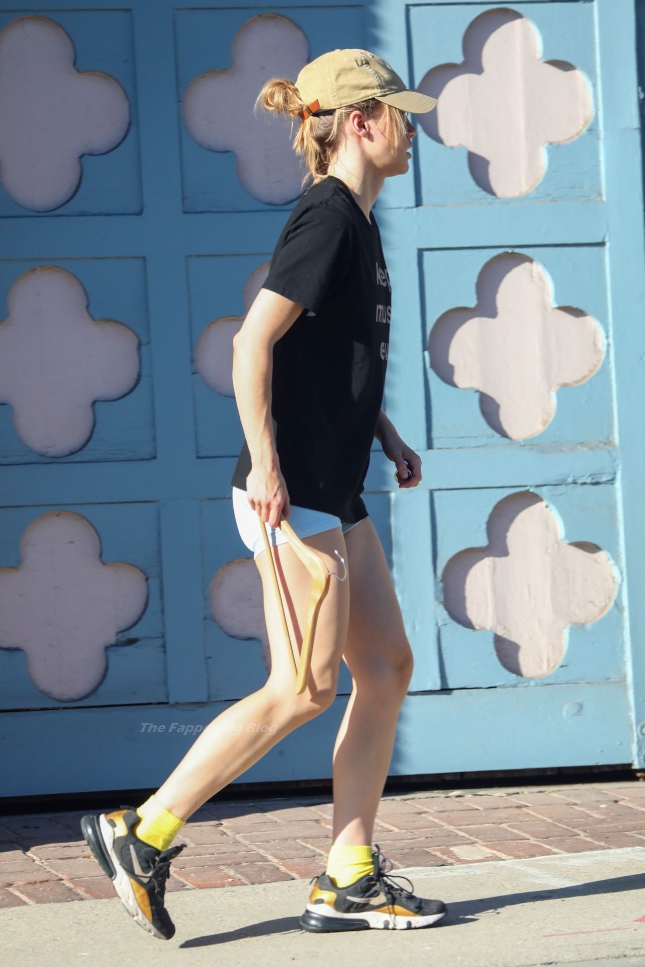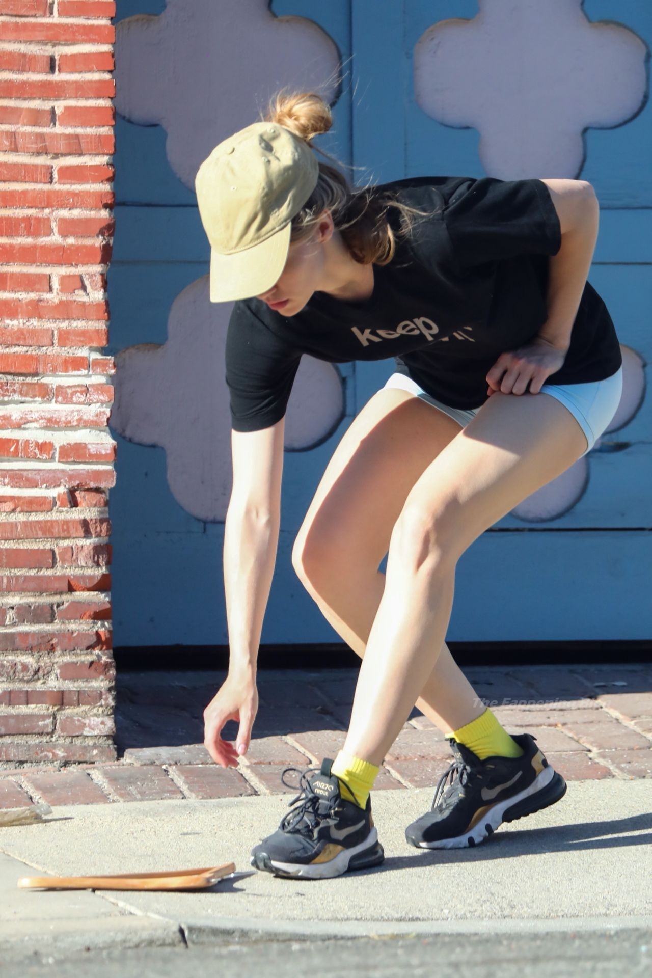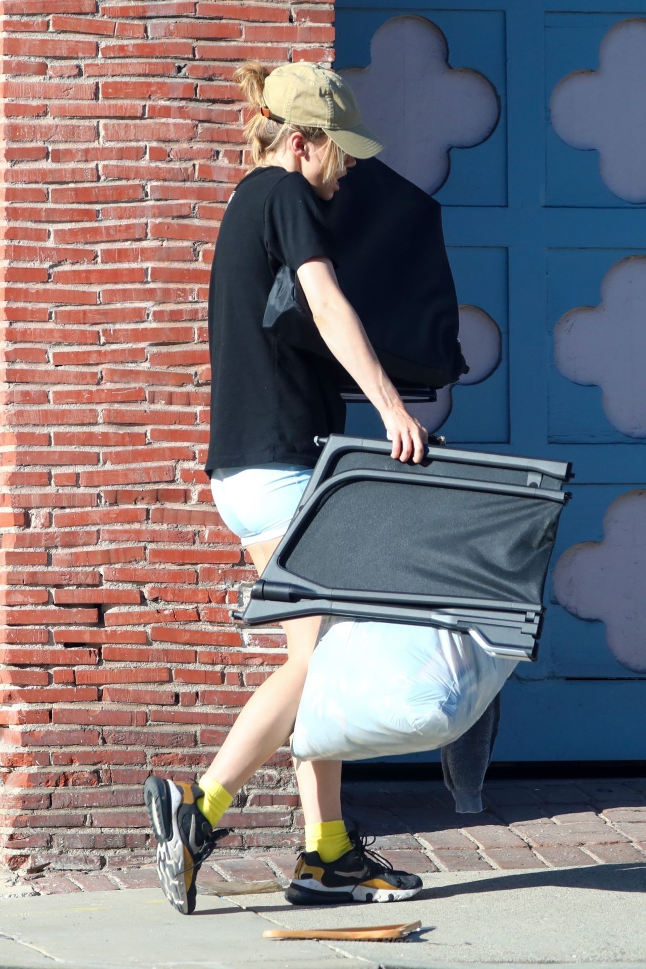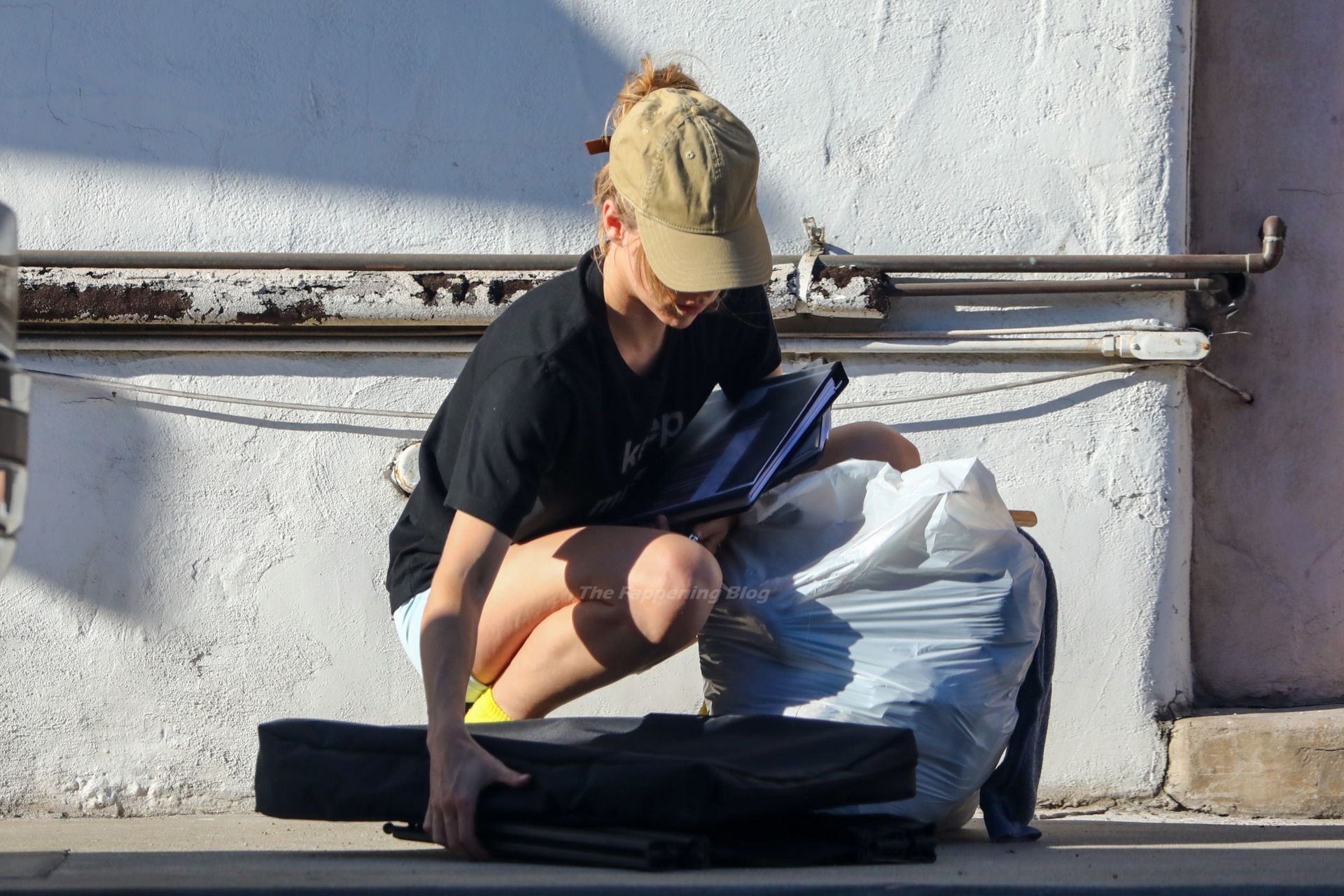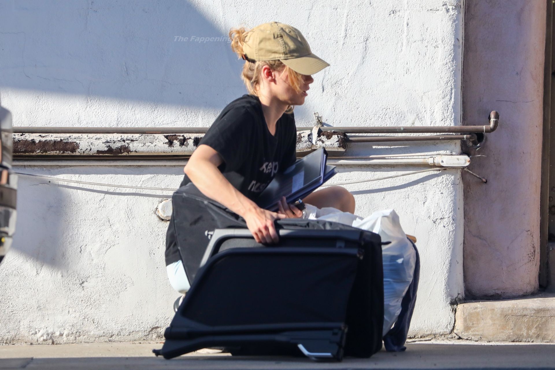 Actriz, modelo y estrella de The Fappening Suki Waterhouse limpia su coche y saca un guion para Daisy Jones and The Six, en Los Ángeles esta tarde. Mostró sus piernas con pantalones cortos y llevaba una camiseta negra que decía: ¡Mantiene la Música Malvada!