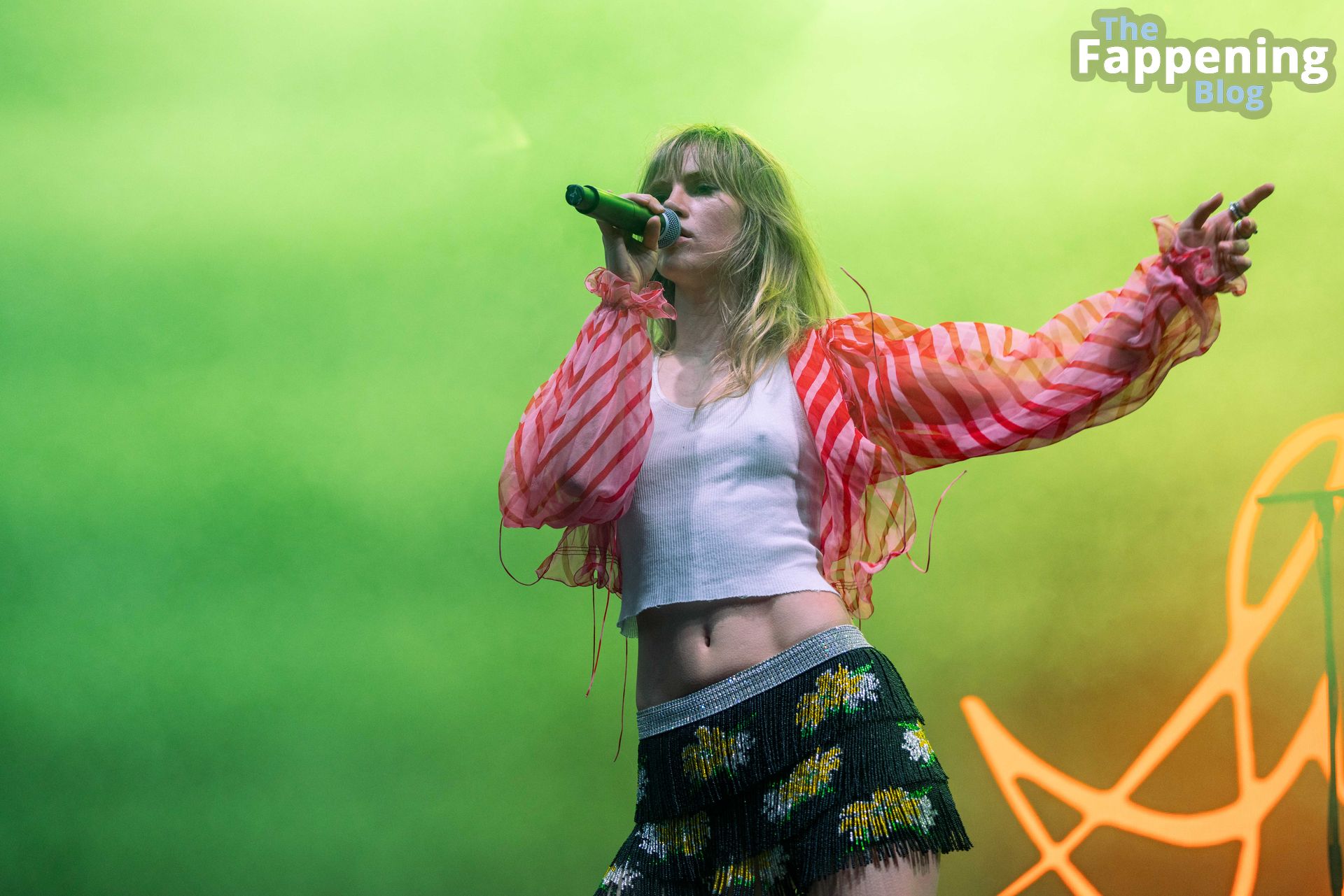 La modelo, cantante y actriz británica Suki Waterhouse actúa sin sostén durante el Día 1 del Festival de Música y Artes Bonnaroo 2023 el 15 de junio de 2023 en Manchester.