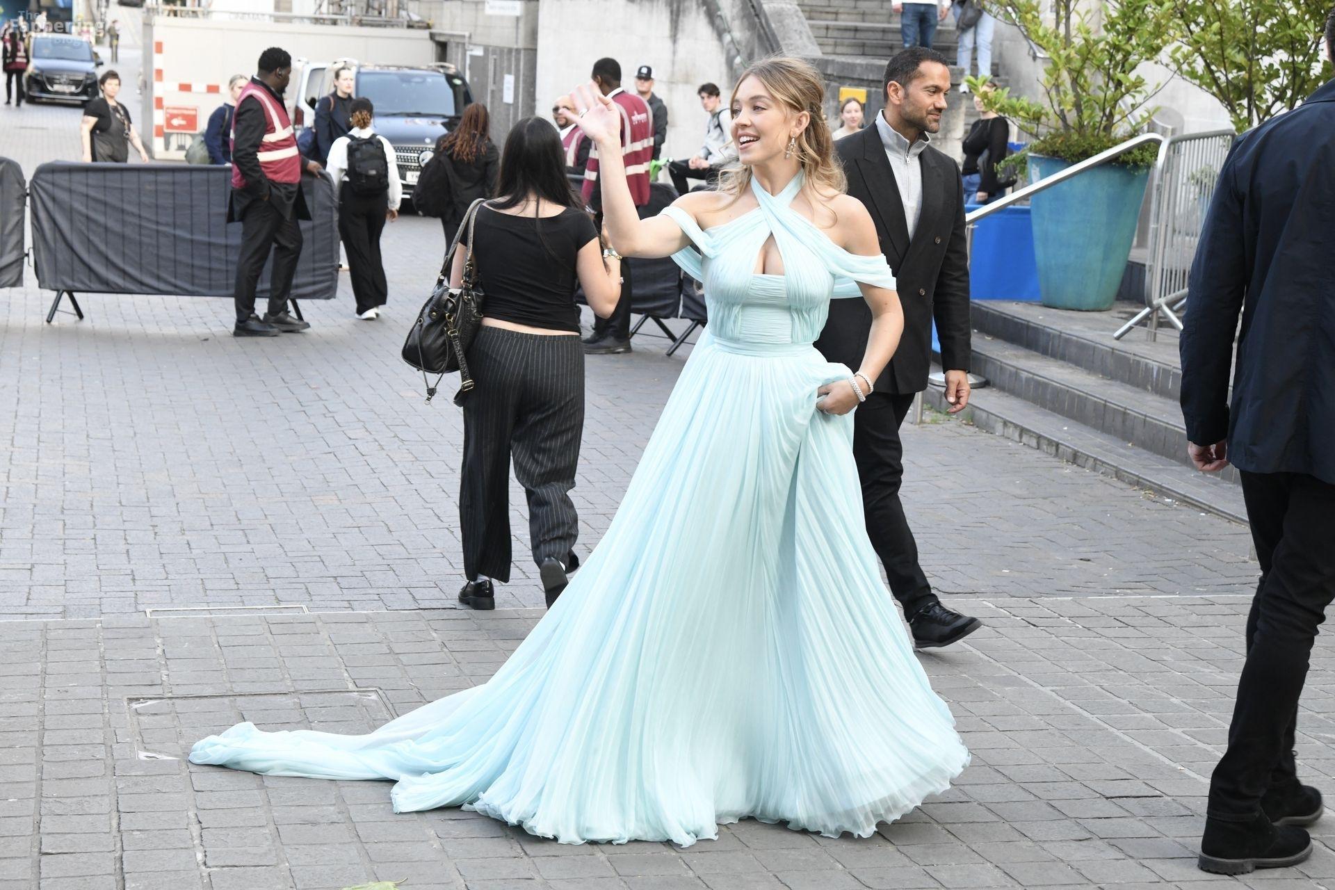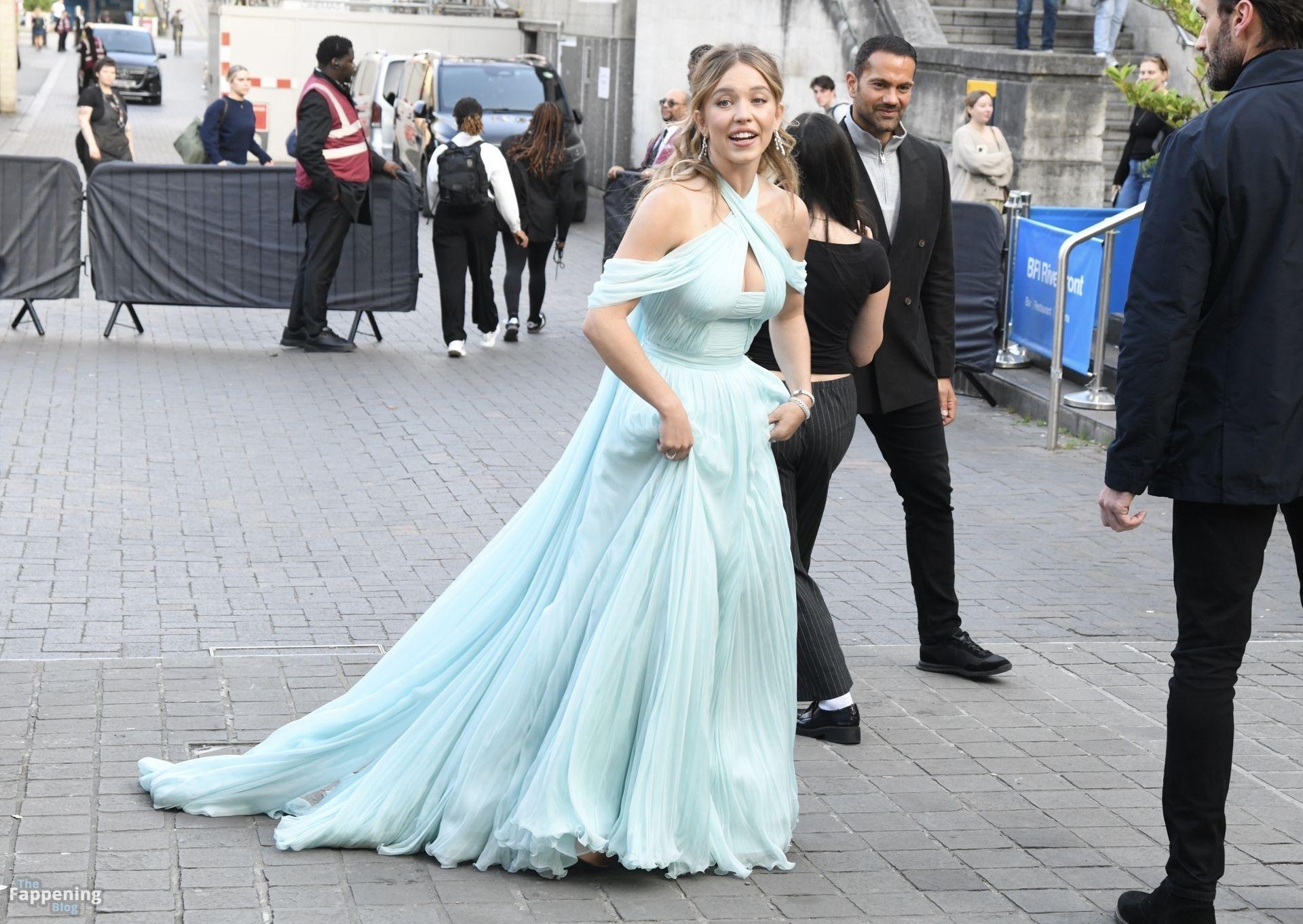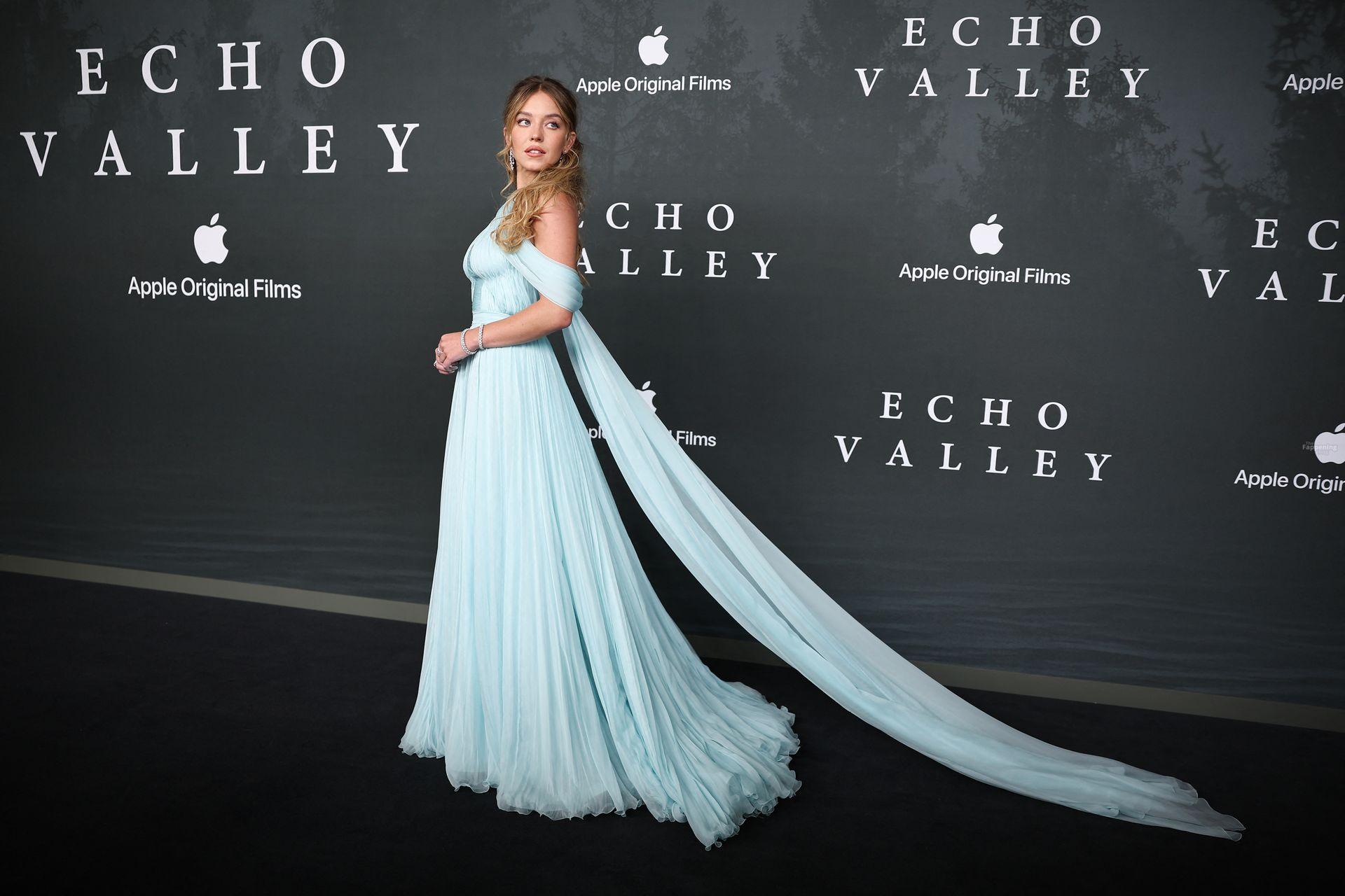 La actriz estadounidense y estrella de The Fappening Sydney Sweeney aparece en un vestido azul en la alfombra roja del estreno europeo de “Echo Valley” en BFI Southbank, Londres.