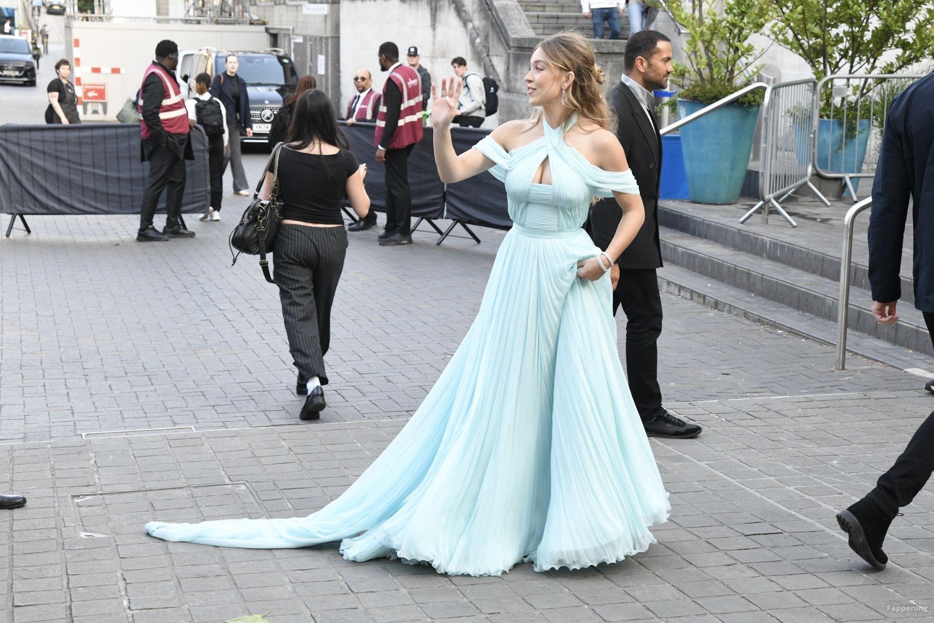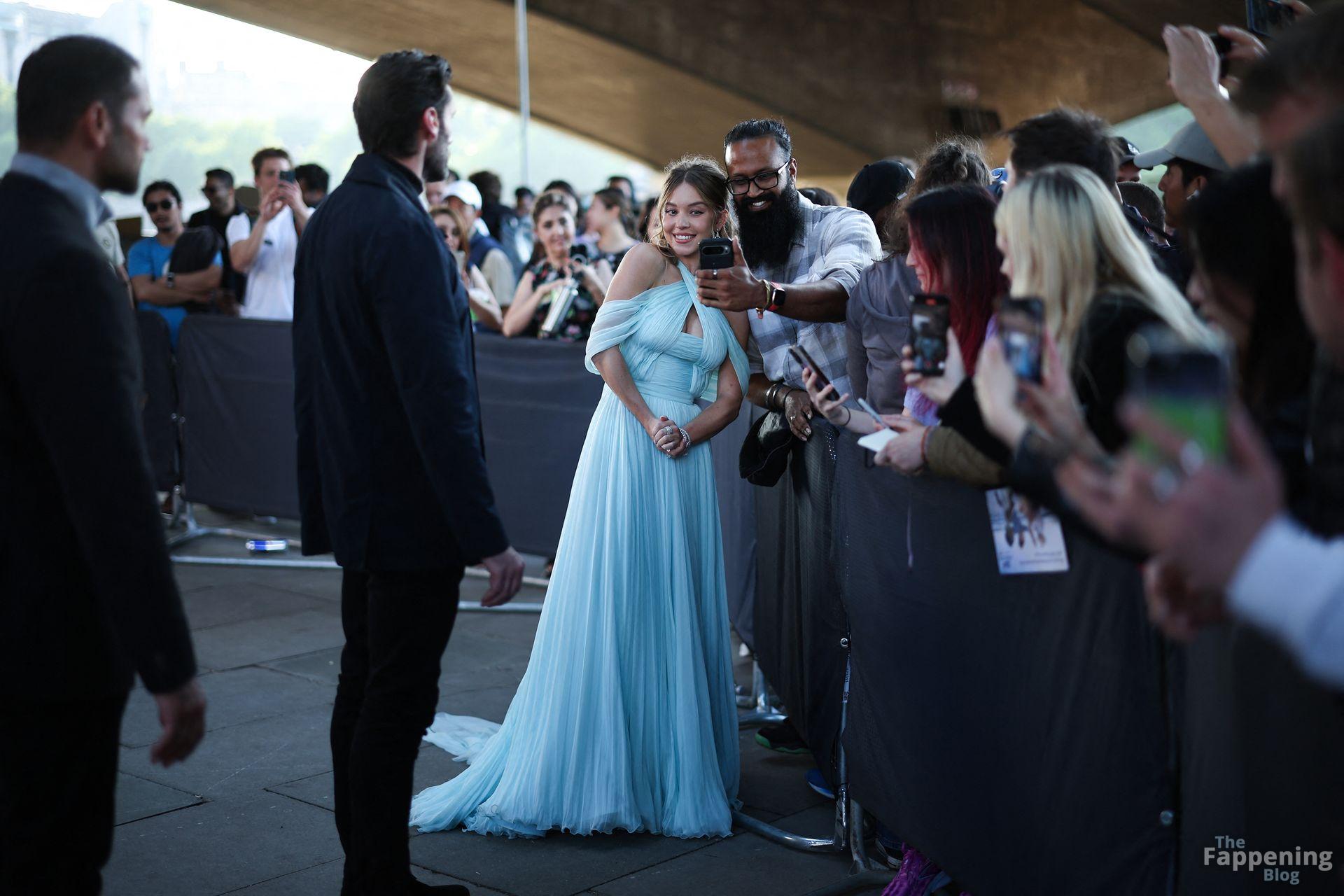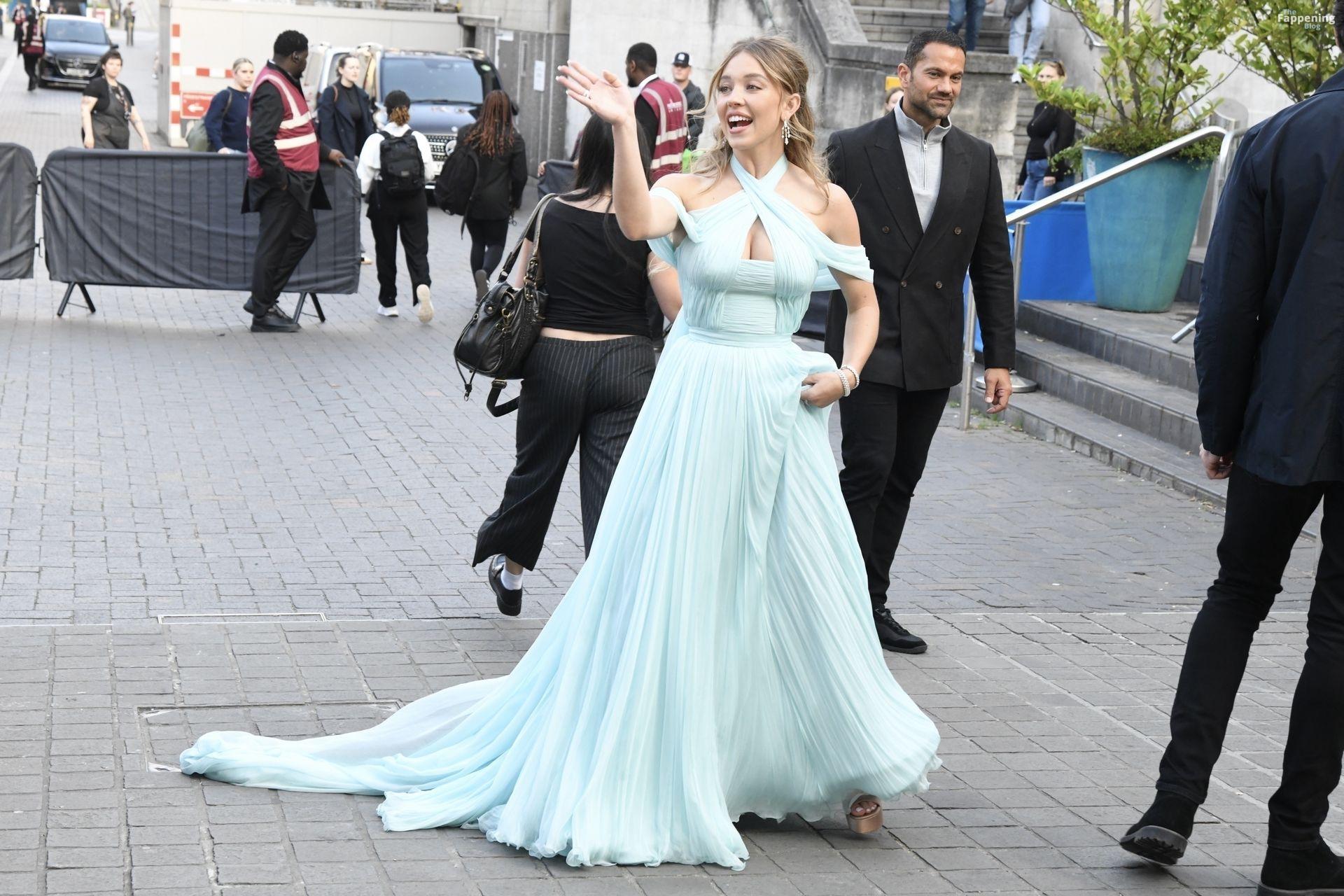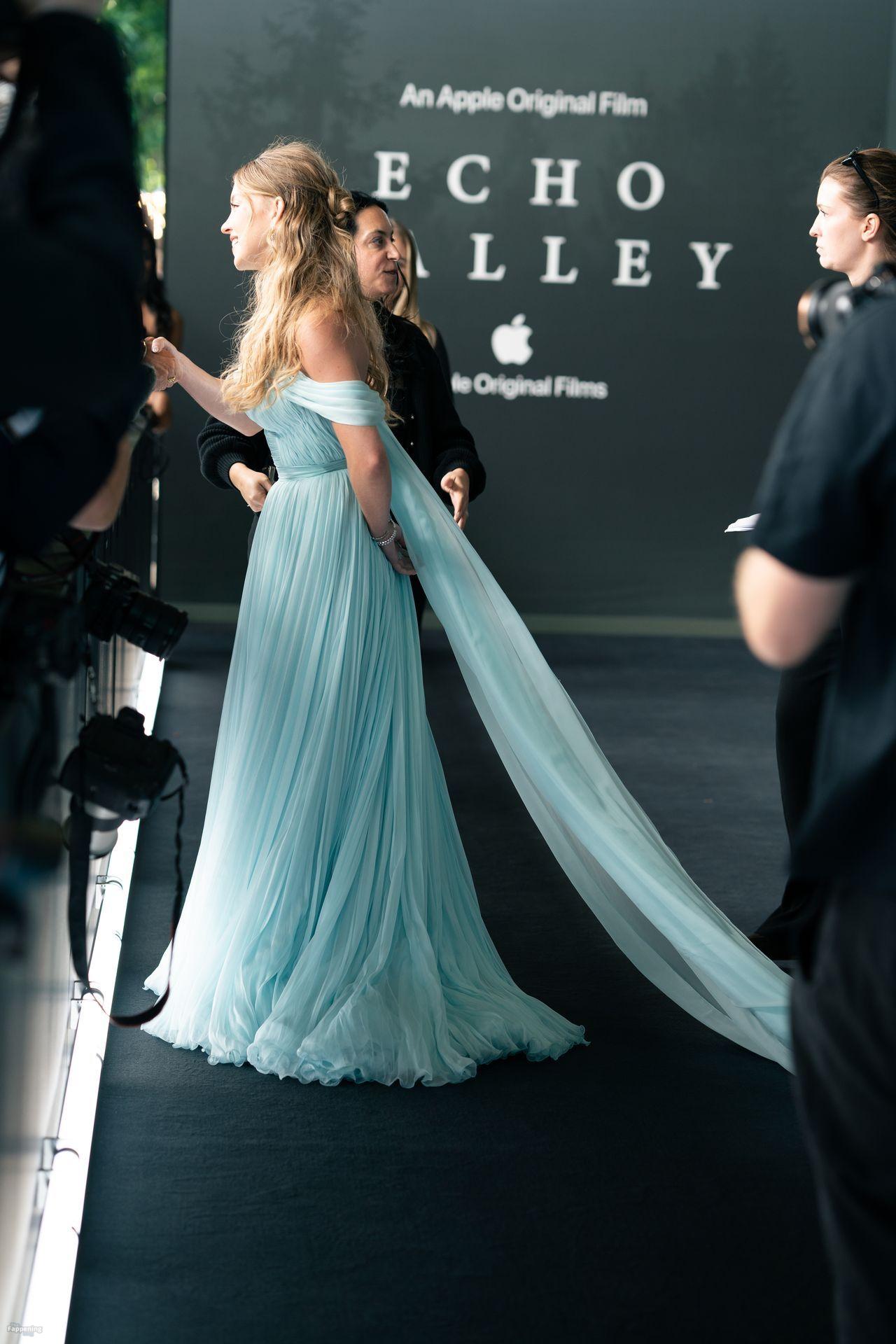 La actriz estadounidense y estrella de The Fappening Sydney Sweeney aparece en un vestido azul en la alfombra roja del estreno europeo de “Echo Valley” en BFI Southbank, Londres.