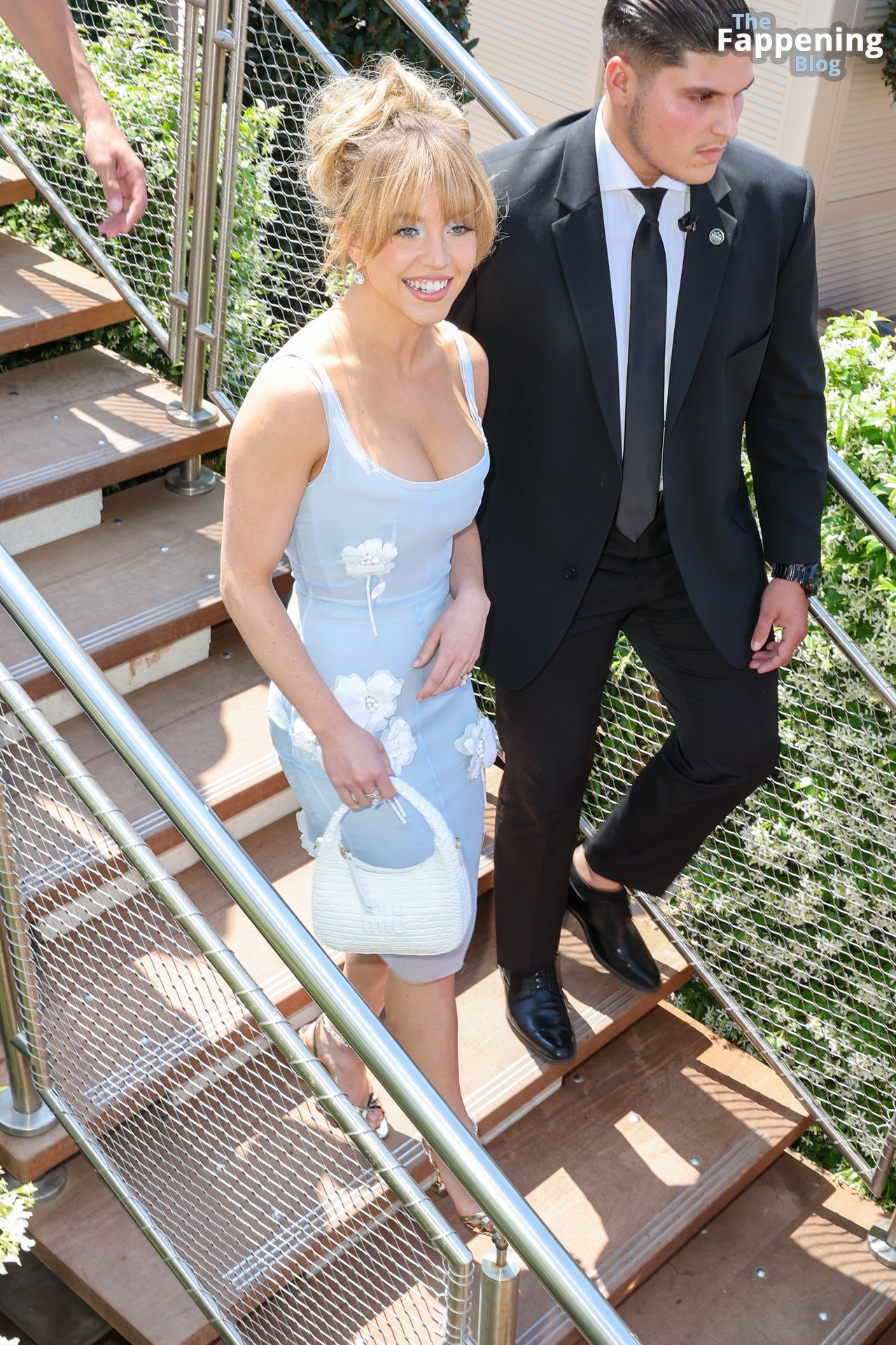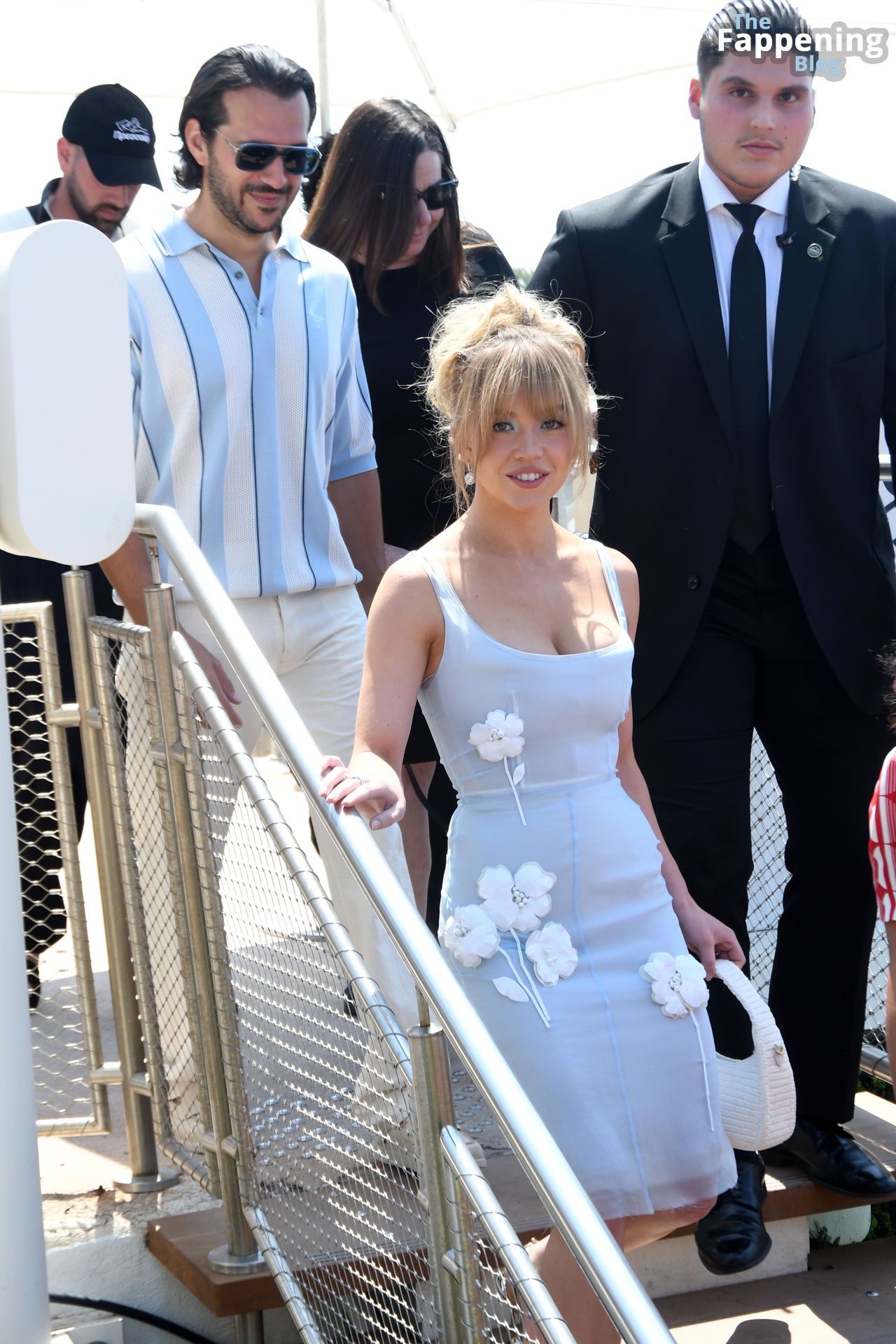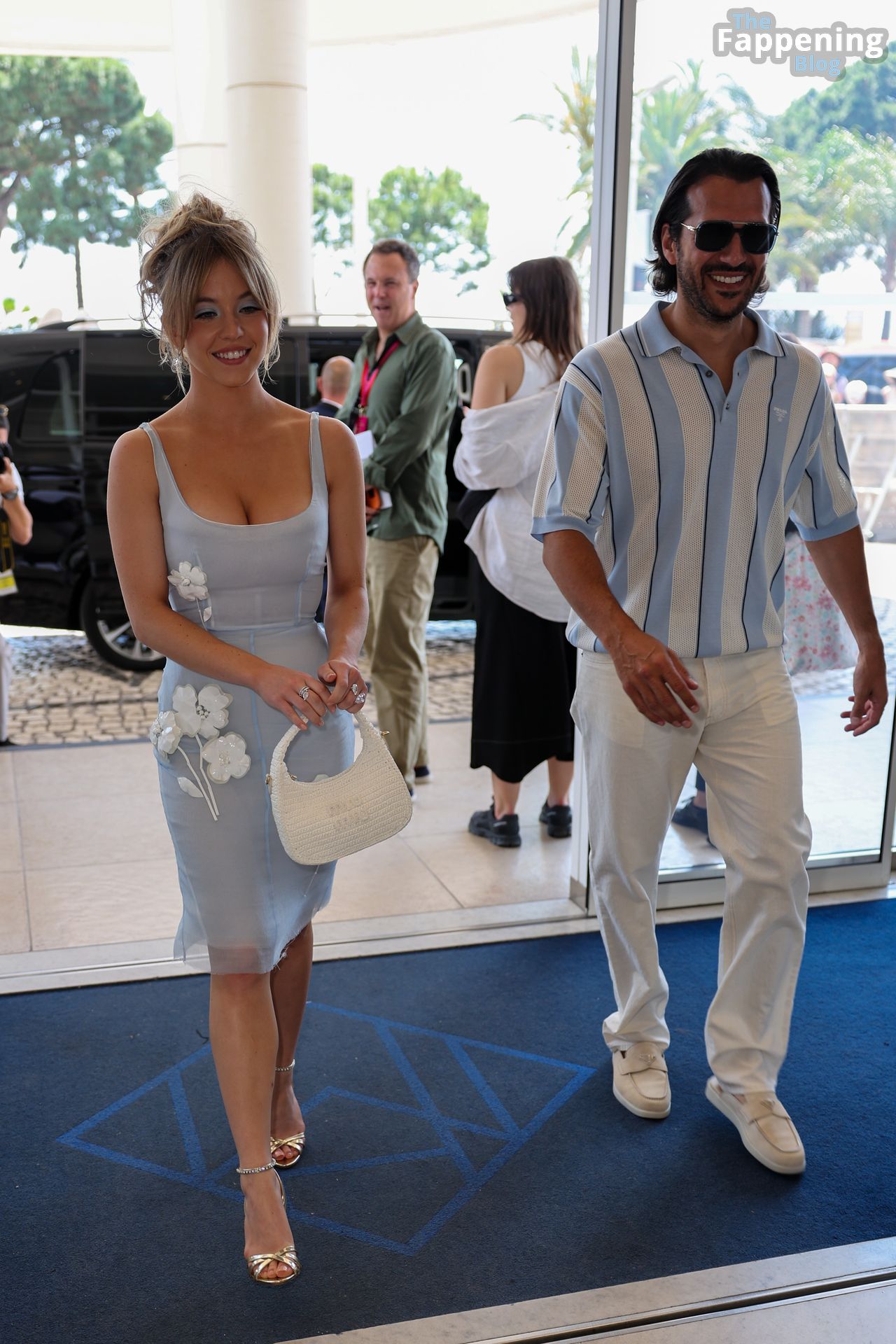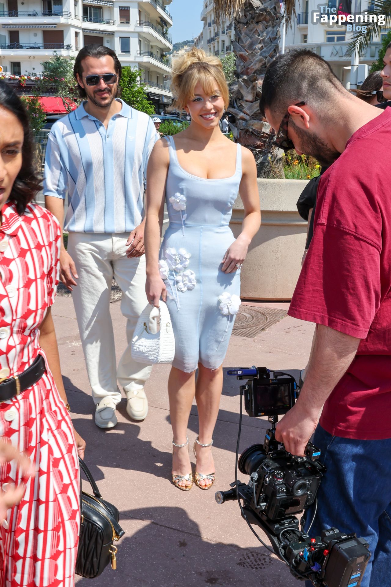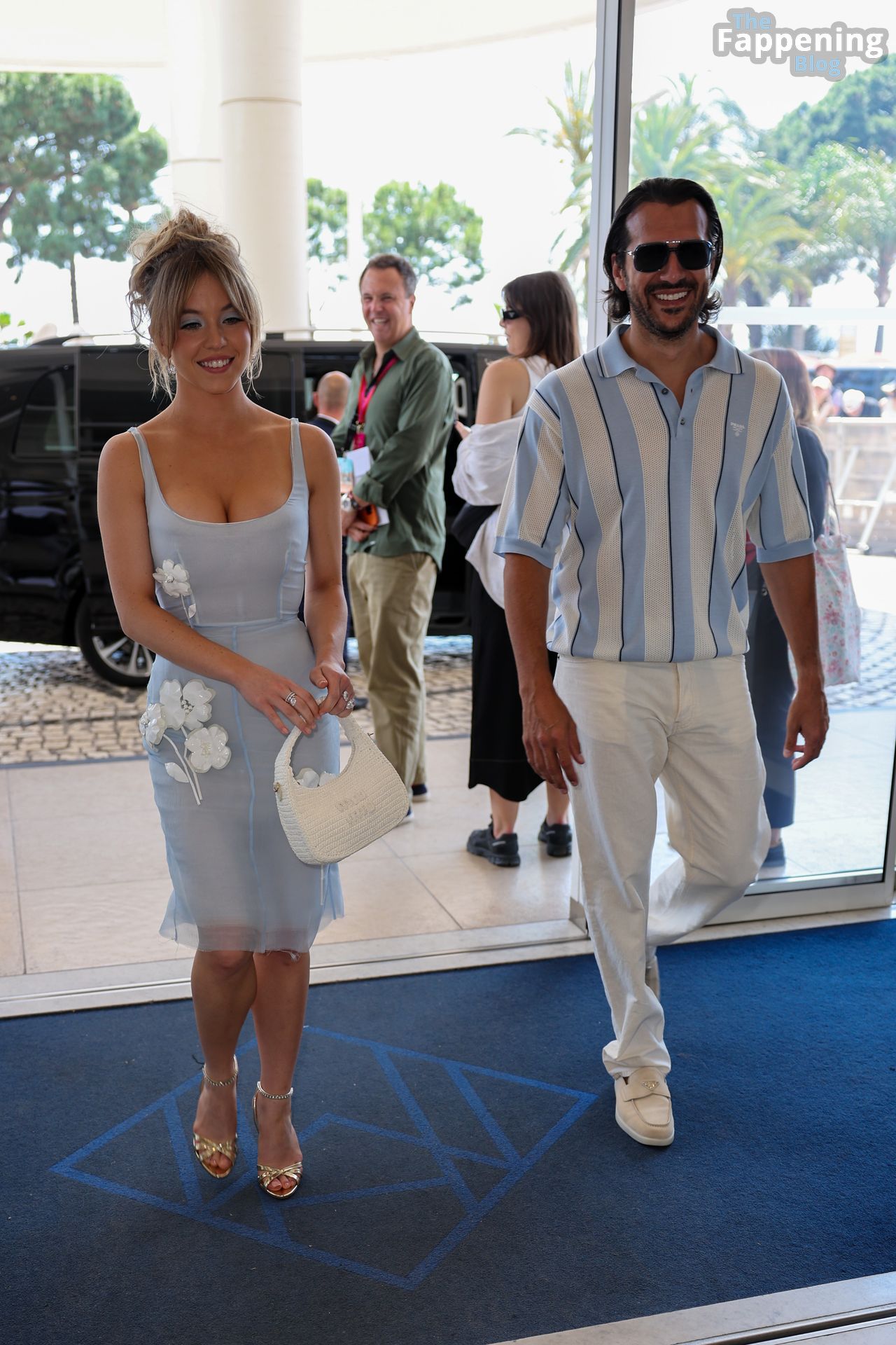 La actriz estadounidense Sydney Sweeney luce elegante mientras es fotografiada saliendo del Hotel Martinez en Cannes, 23/05/2023.