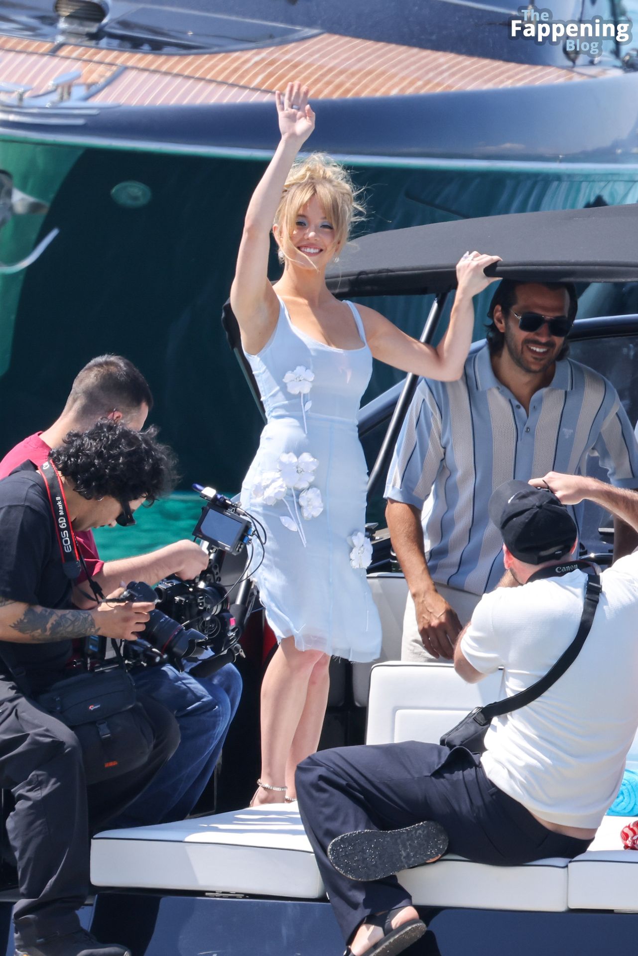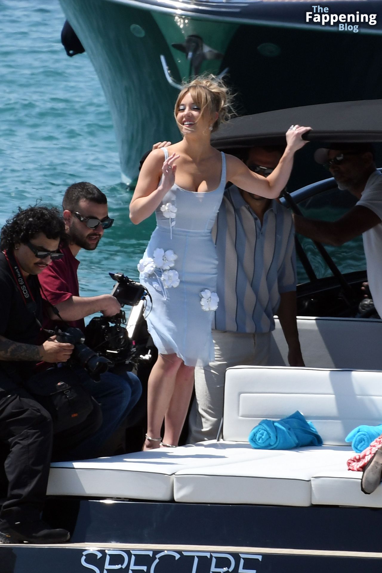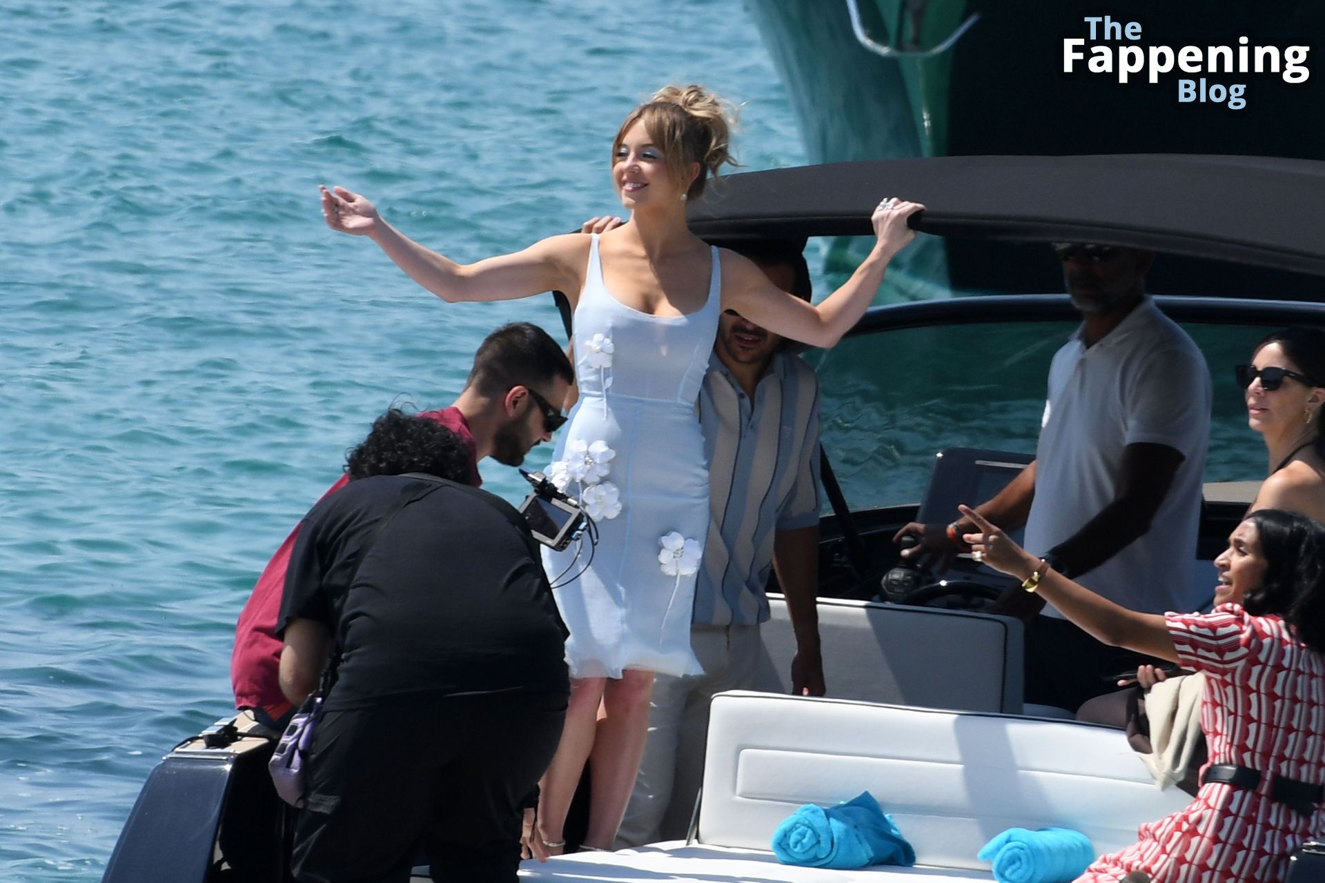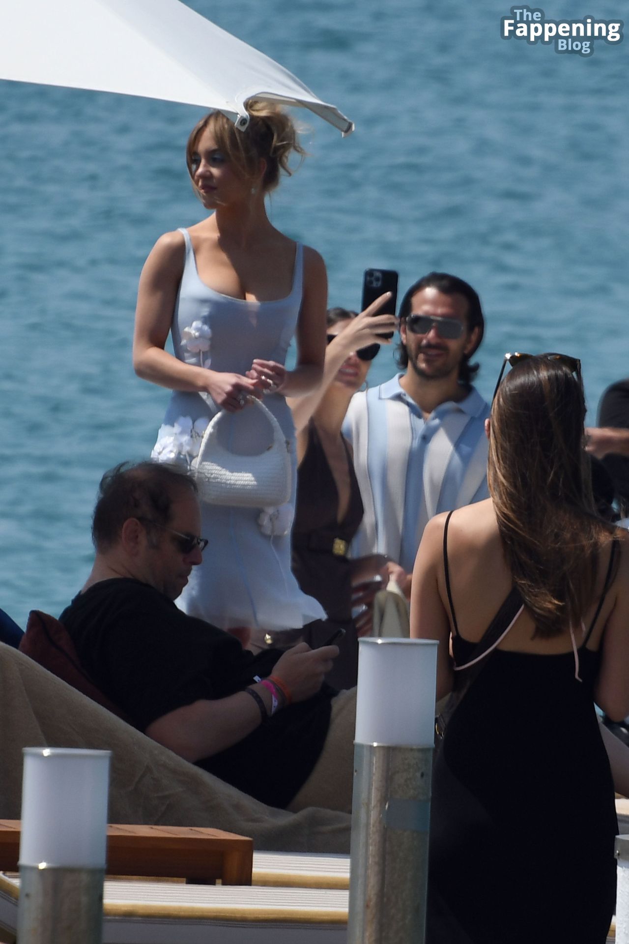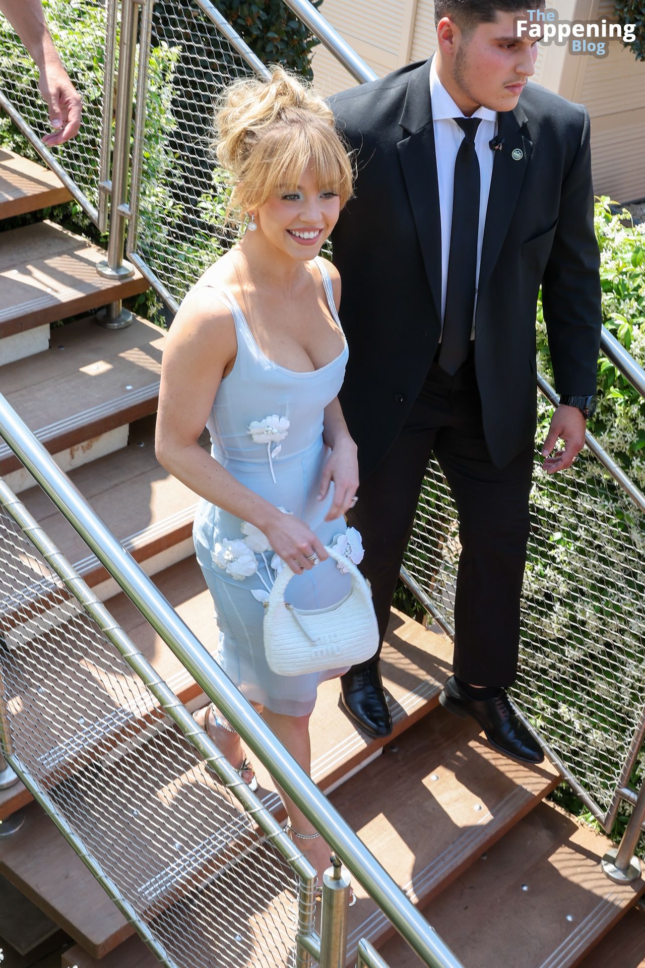 La actriz estadounidense Sydney Sweeney luce elegante mientras es fotografiada saliendo del Hotel Martinez en Cannes, 23/05/2023.