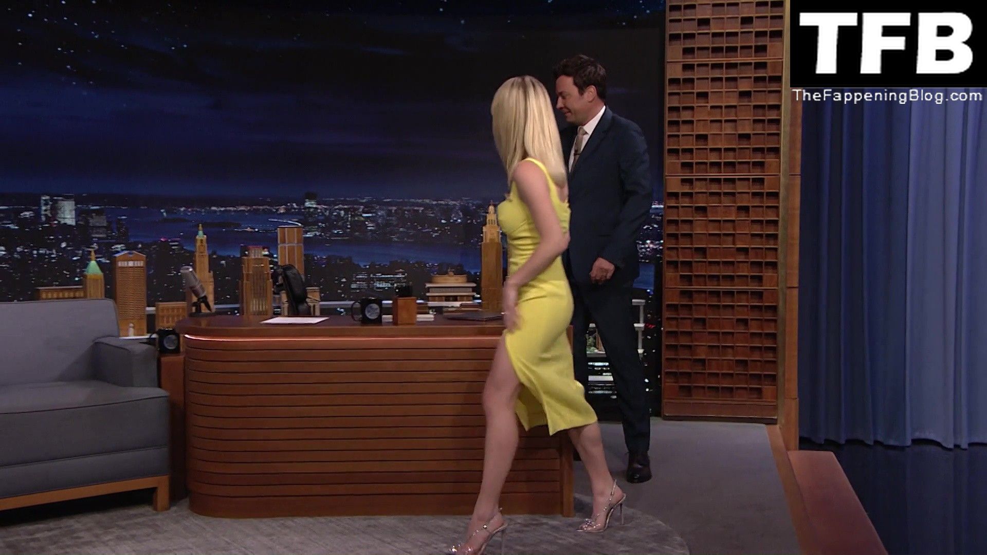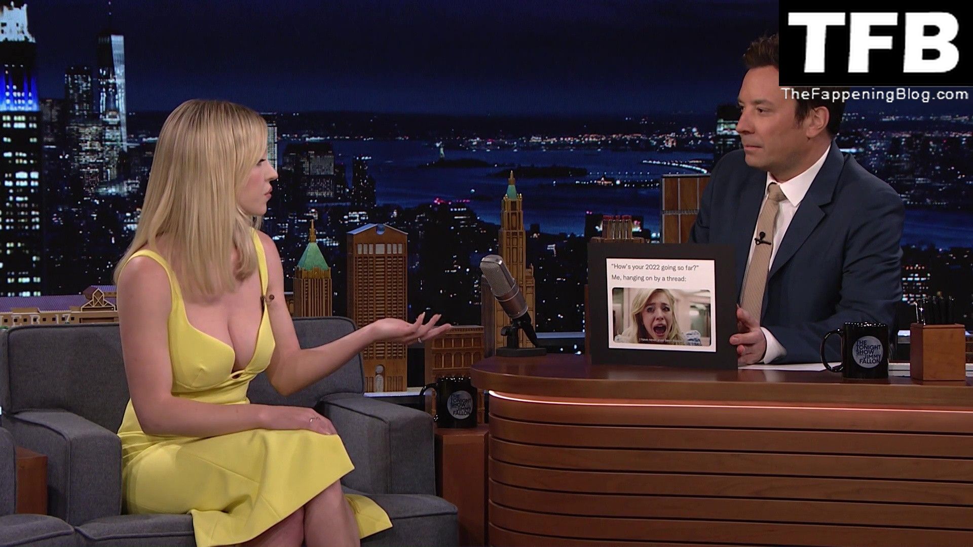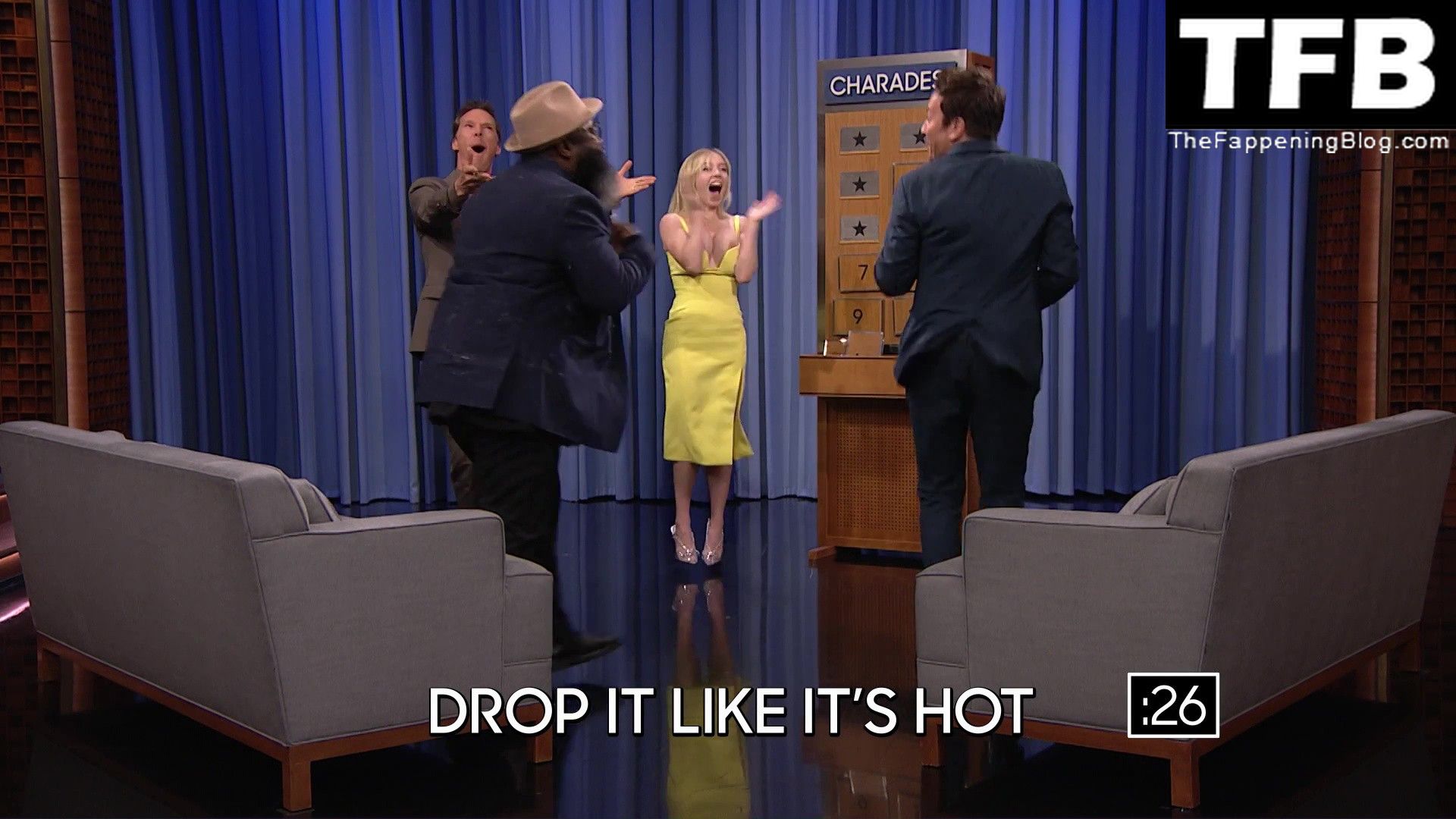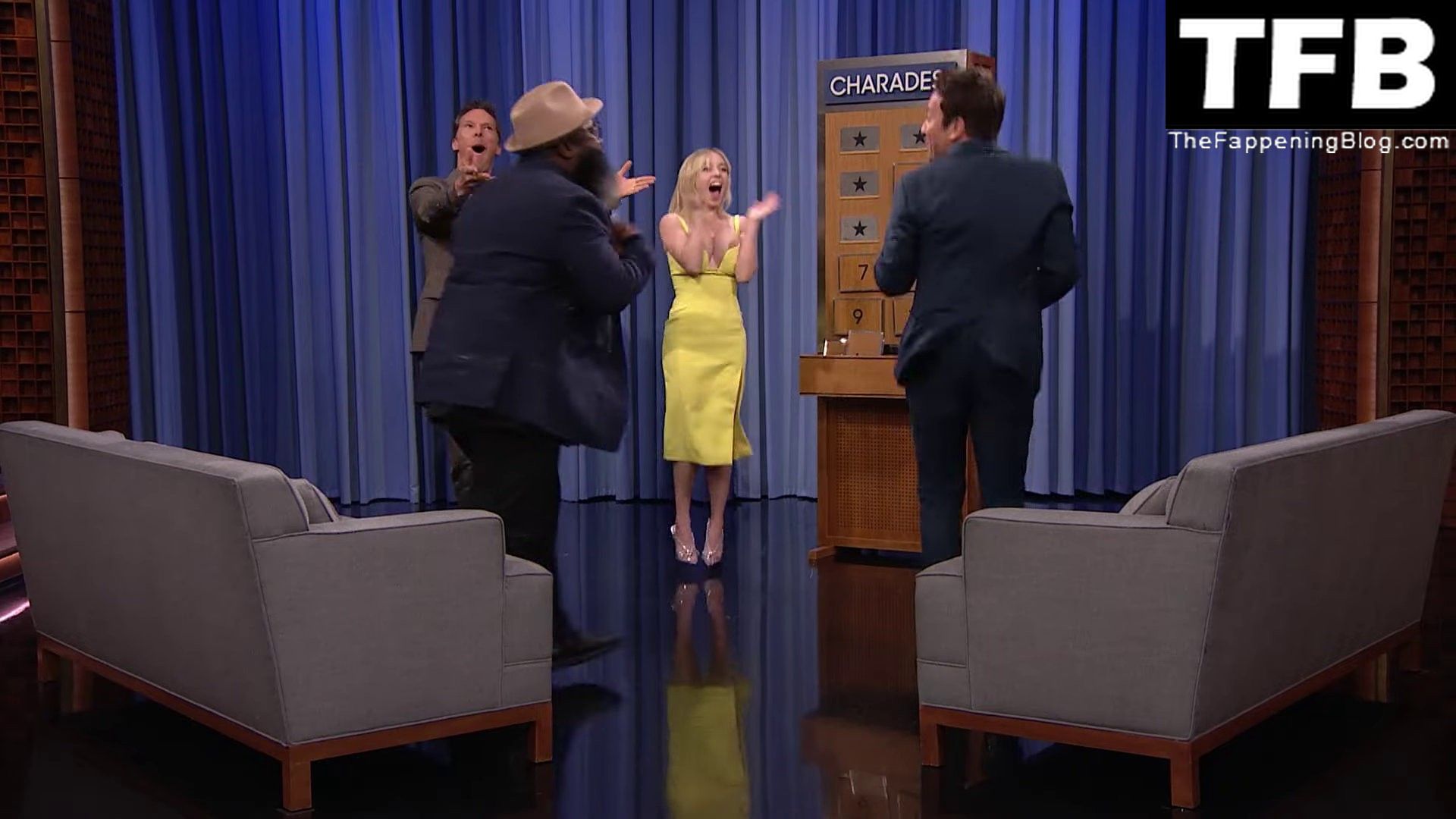 Sydney Sweeney muestra su sexy escote y enseña su pezón en el programa “The Tonight Show with Jimmy Fallon” (mayo 2022).