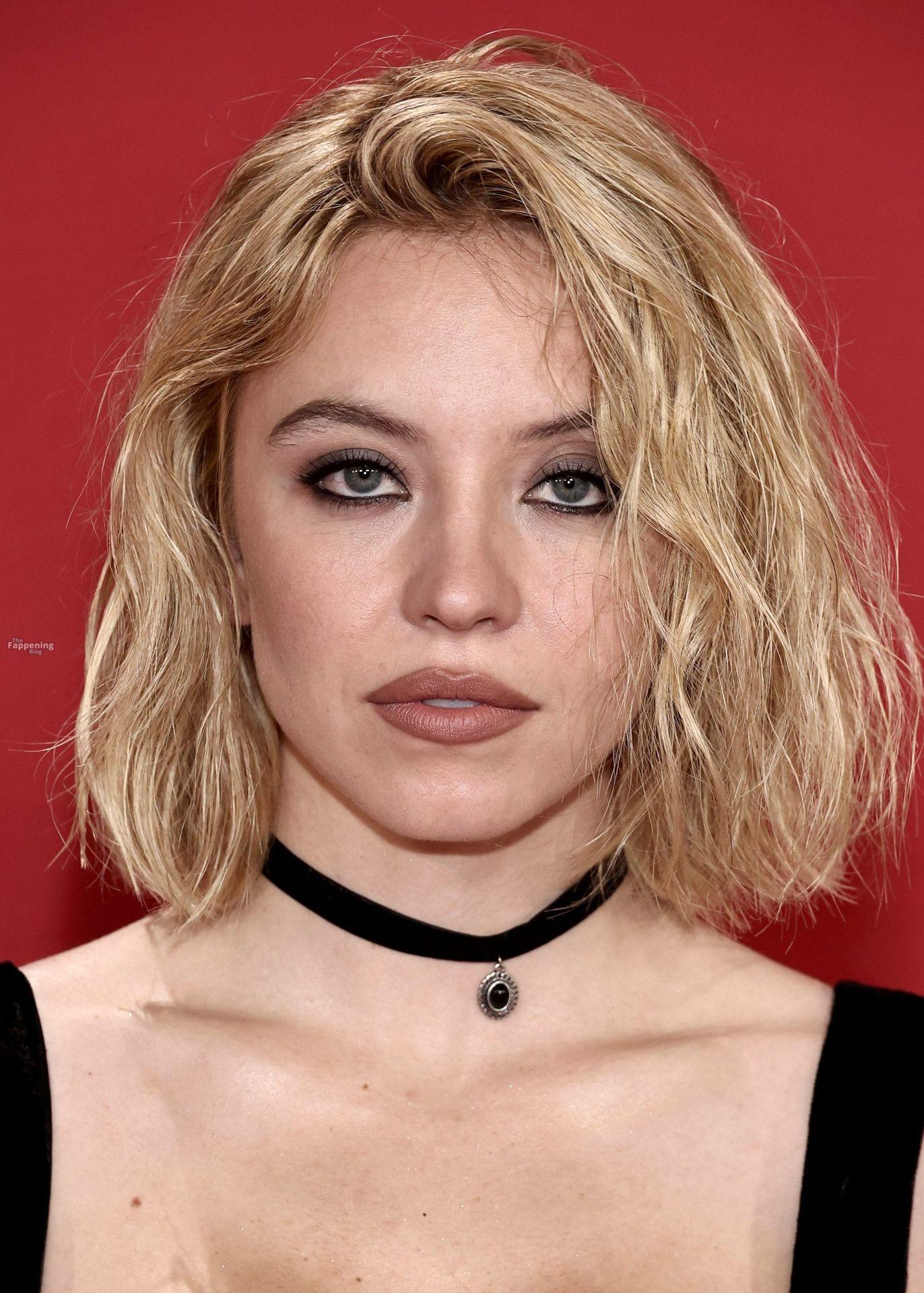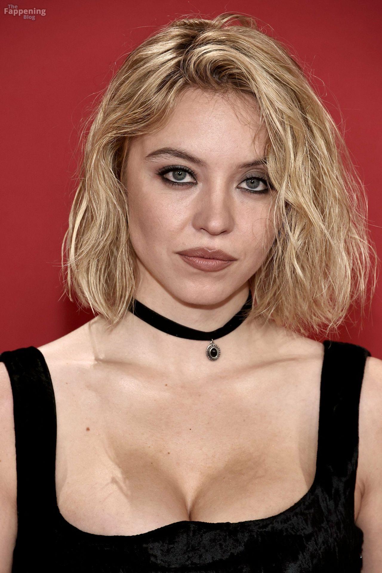 Echa un vistazo a los pechos de Sydney Sweeney en el evento GQ Hombres del Año, asomando de un vestido negro ajustado.