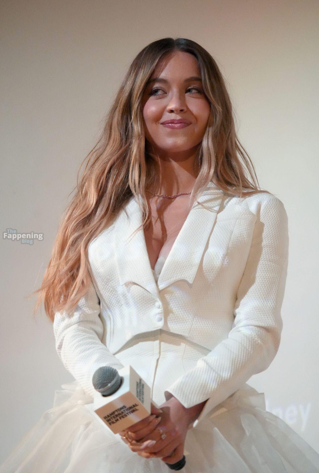 Sydney Sweeney deslumbró en el Festival de Cine de Hamptons en el estreno de “Christy”, luciendo un vestido blanco escotado que mostraba un bonito escote y piernas.