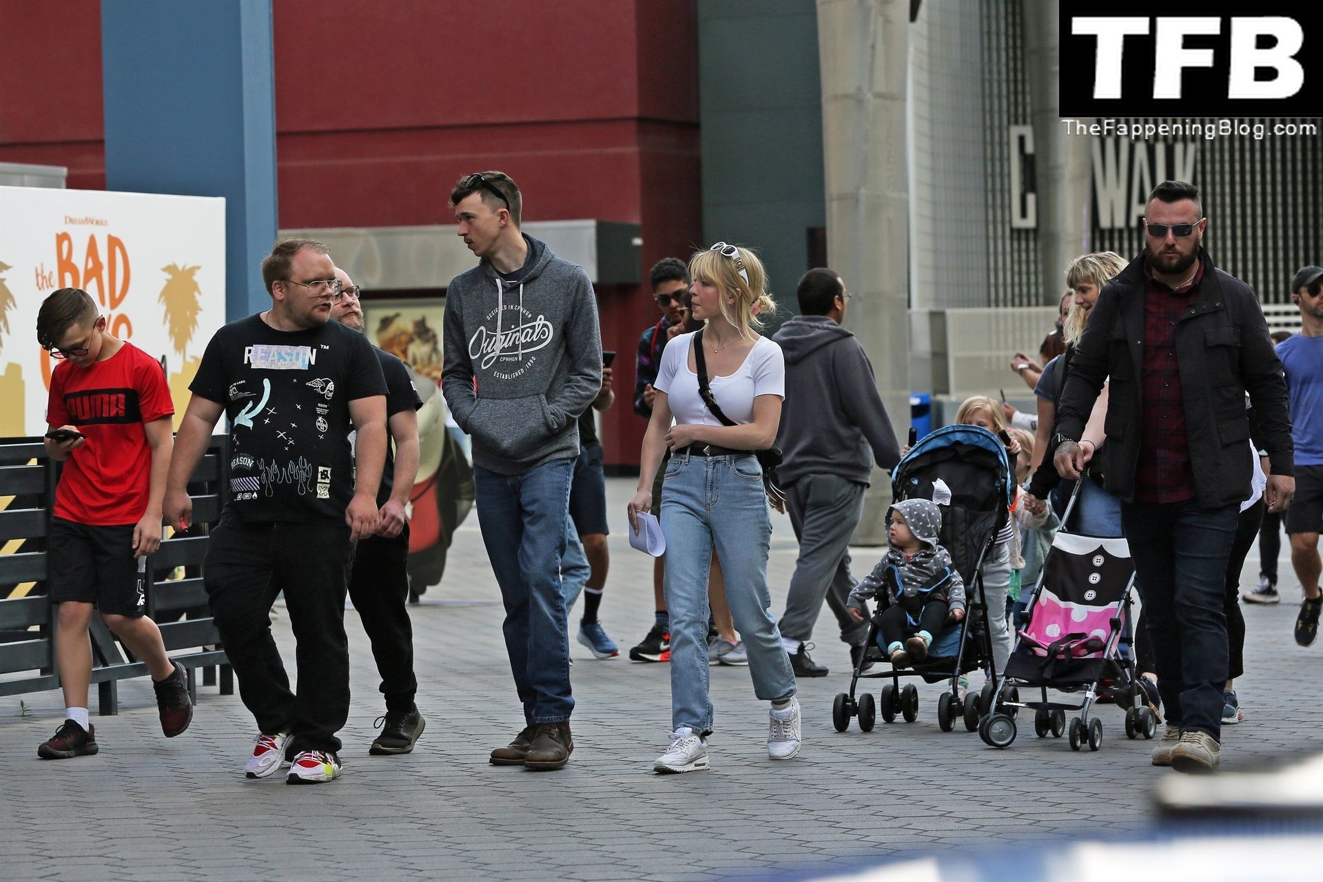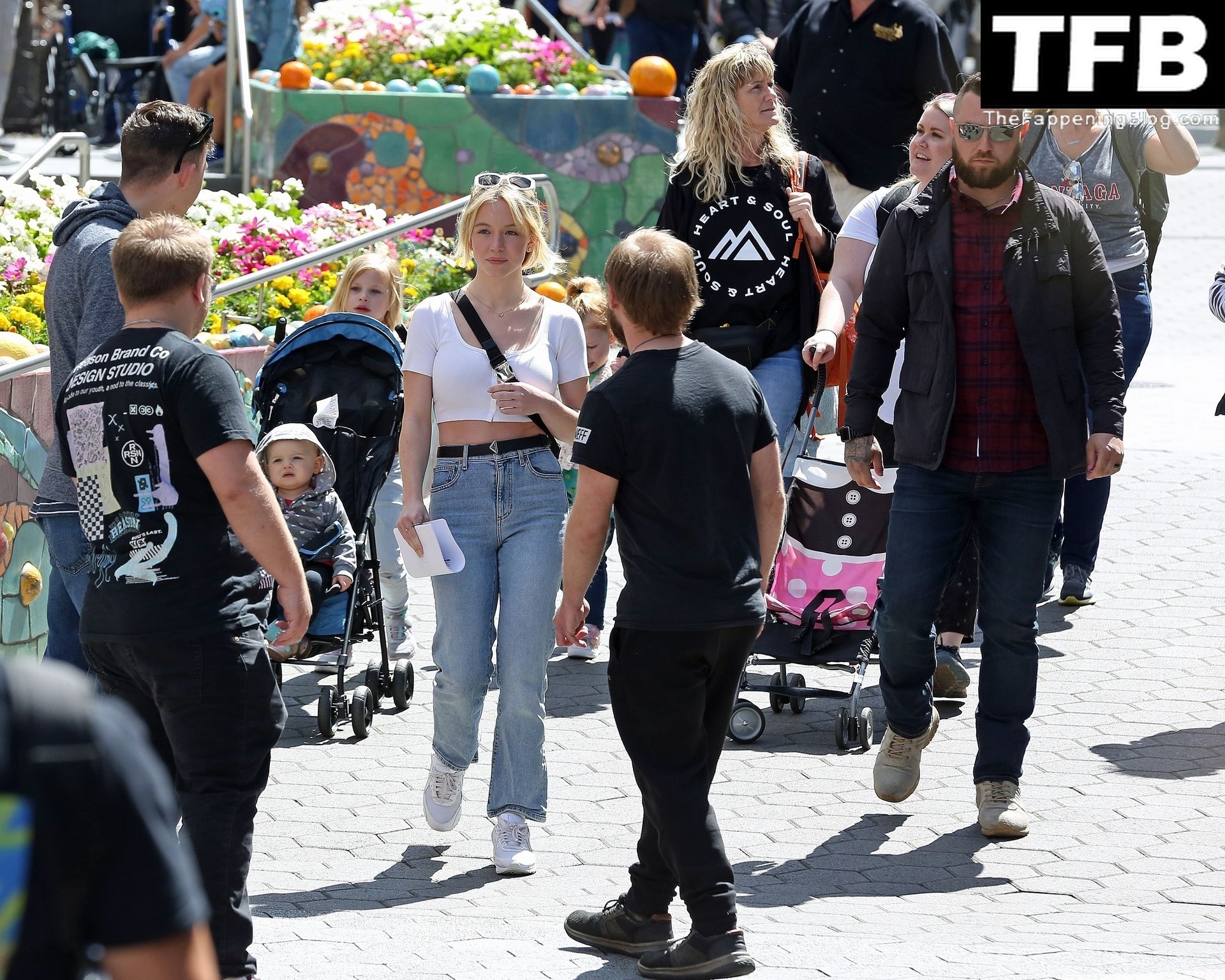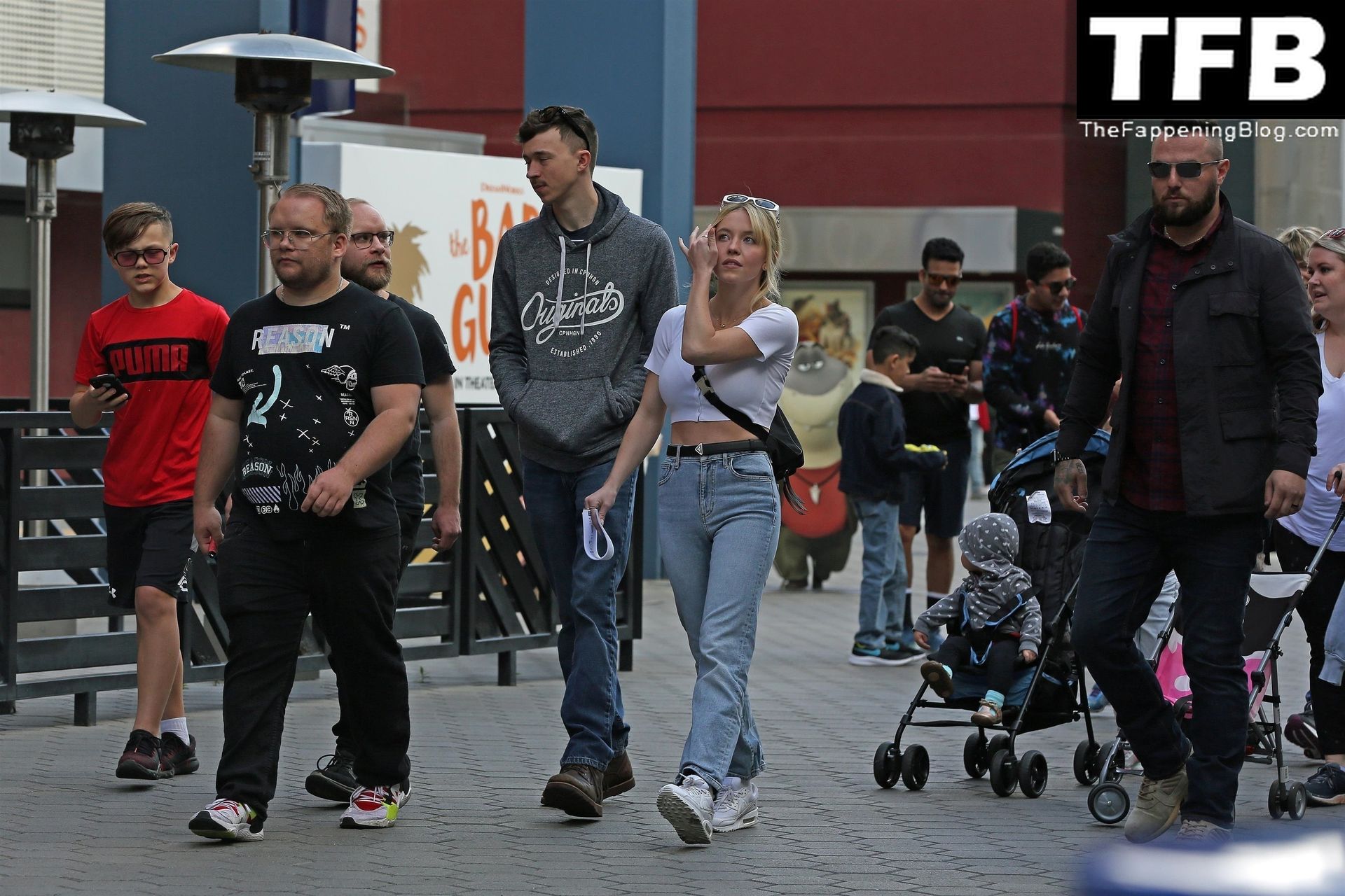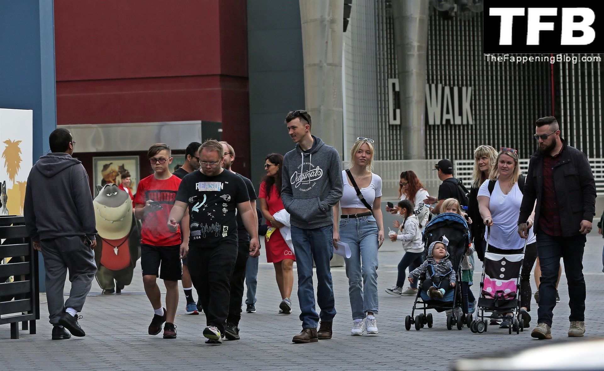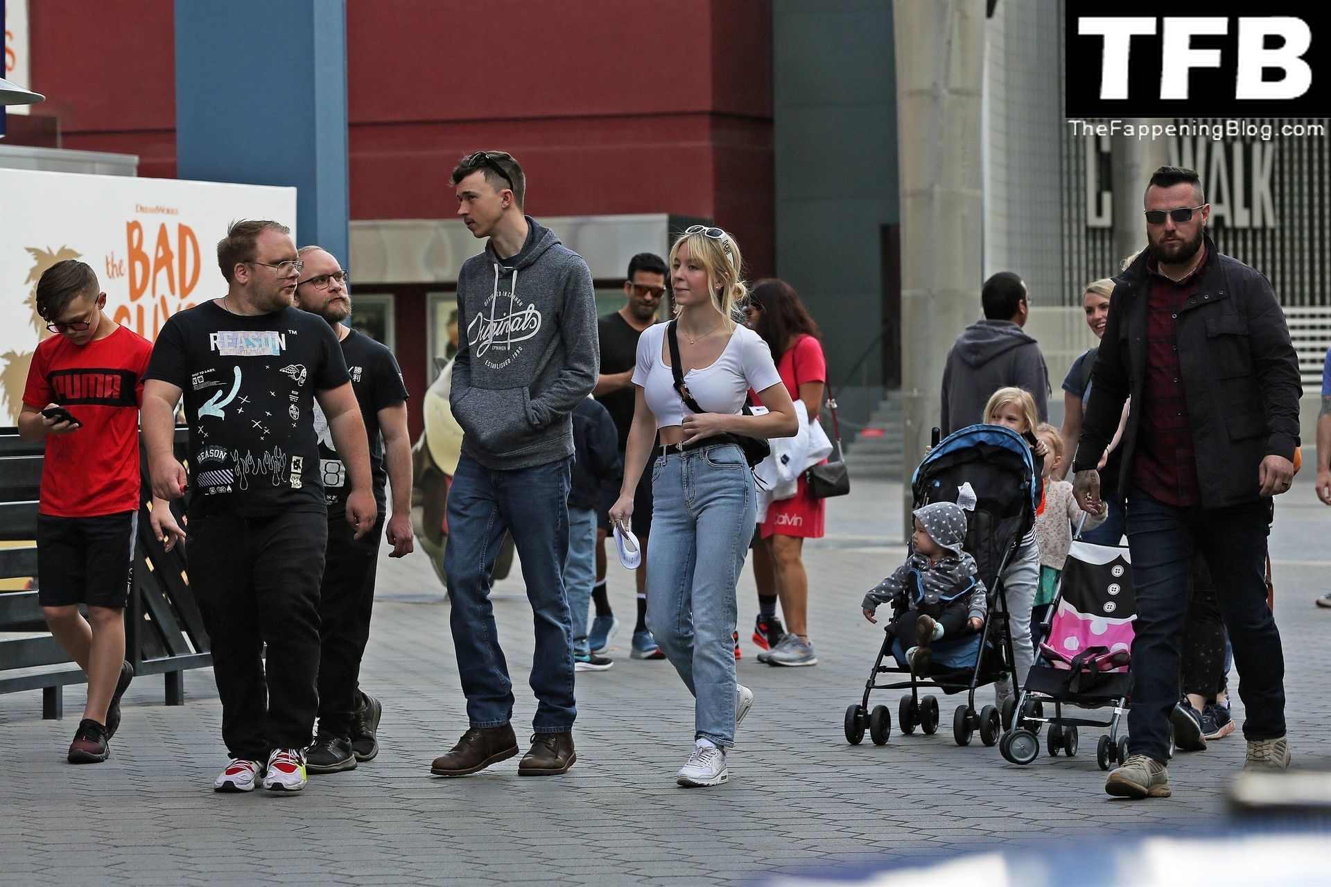 La actriz de “Euphoria” Sydney Sweeney está acompañada por un gran grupo de amigos y familiares para un viaje a Universal Studios en Hollywood, 23/04/2022.