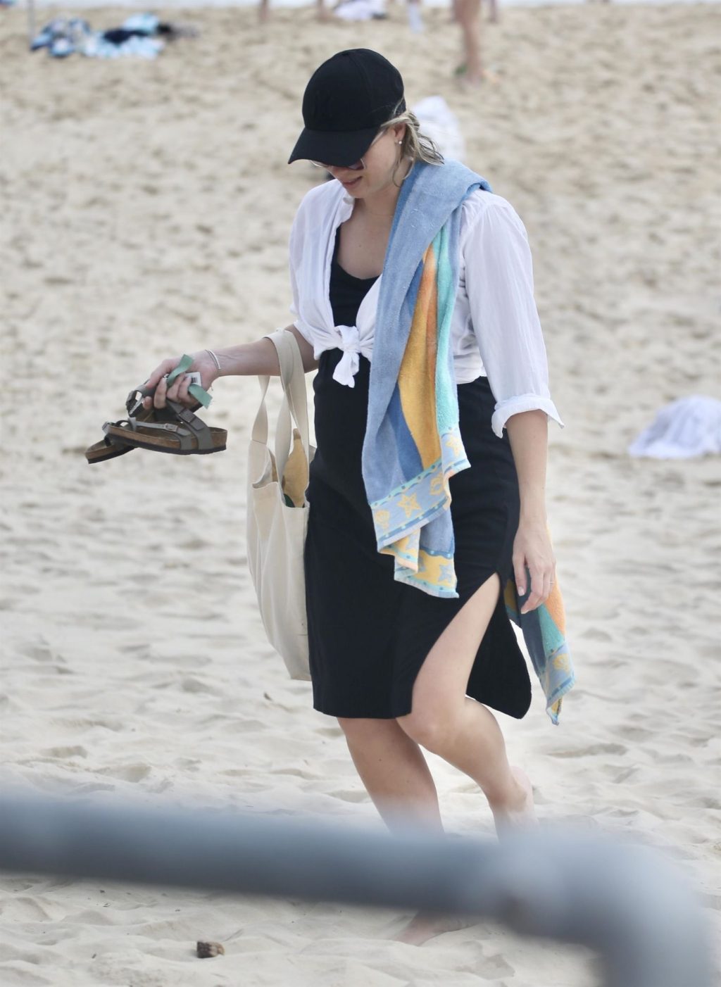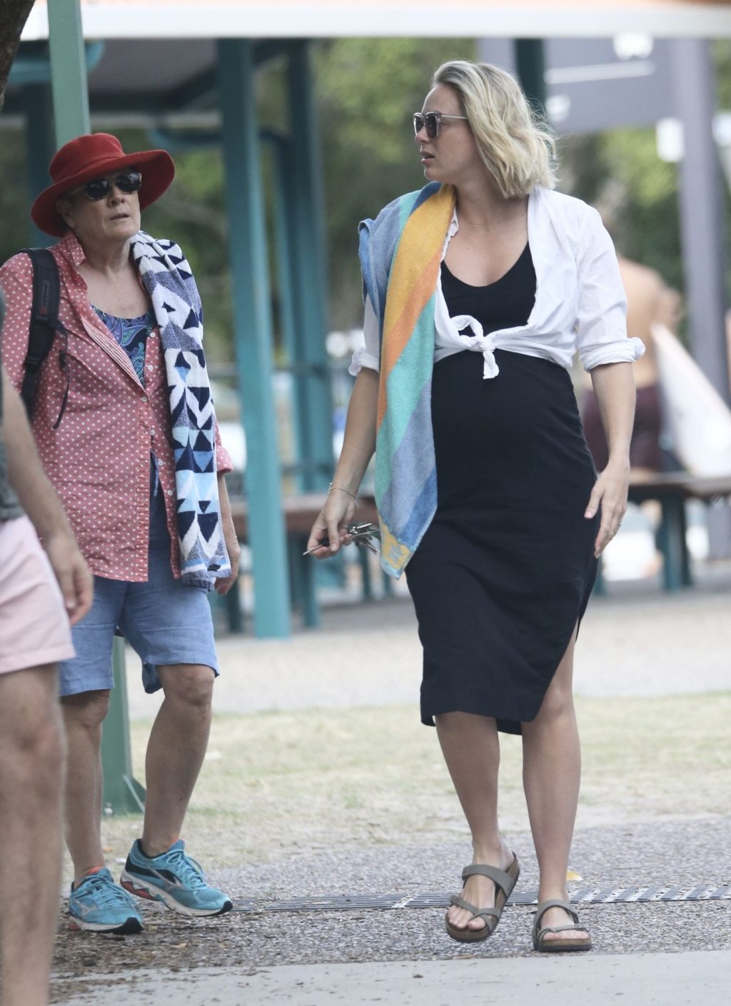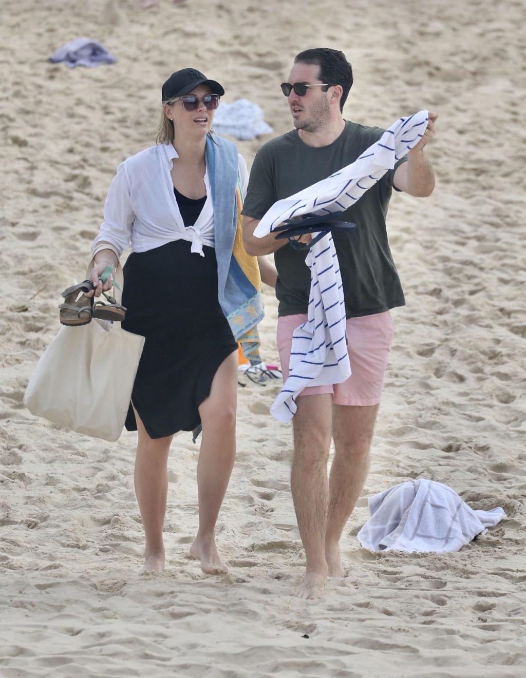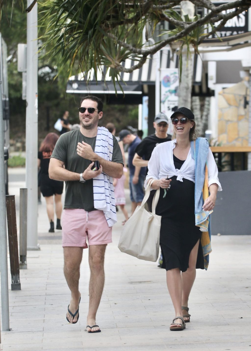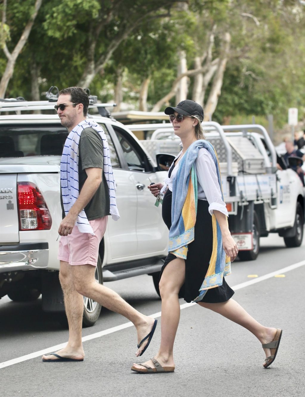 Sylvia Jeffreys y Peter Stefanovic tienen un baño matutino en la playa de Noosa, 31/12/2019.