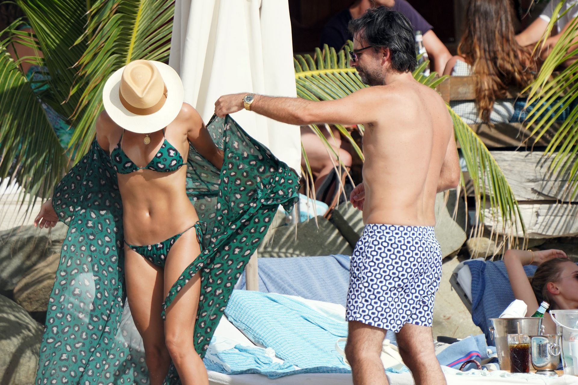 Sylvie Meis y su prometido Niclas Castello disfrutan de sus vacaciones juntos con un día en la playa en St Barts, 28/12/2019. La celebridad holandesa mostró su cuerpo sexy luciendo un bikini diminuto.