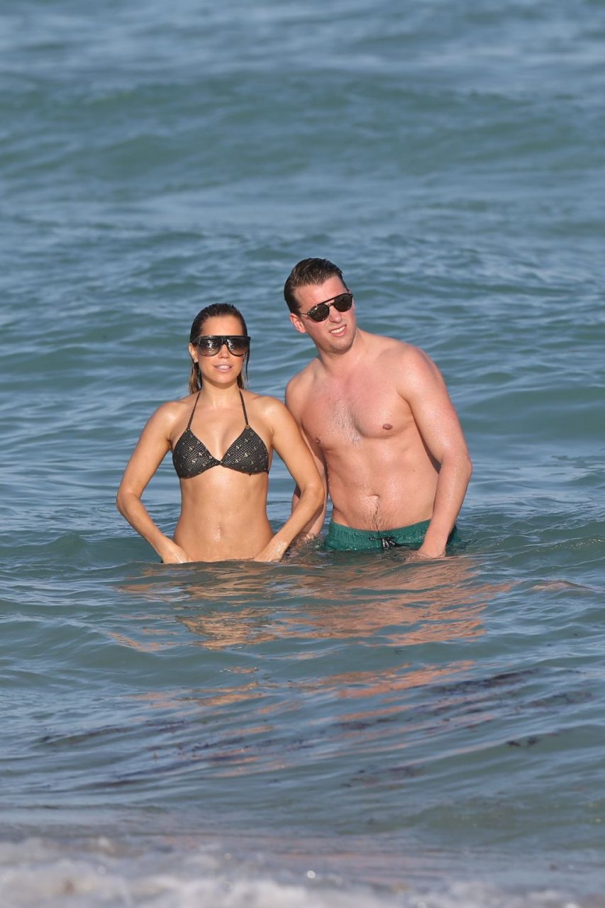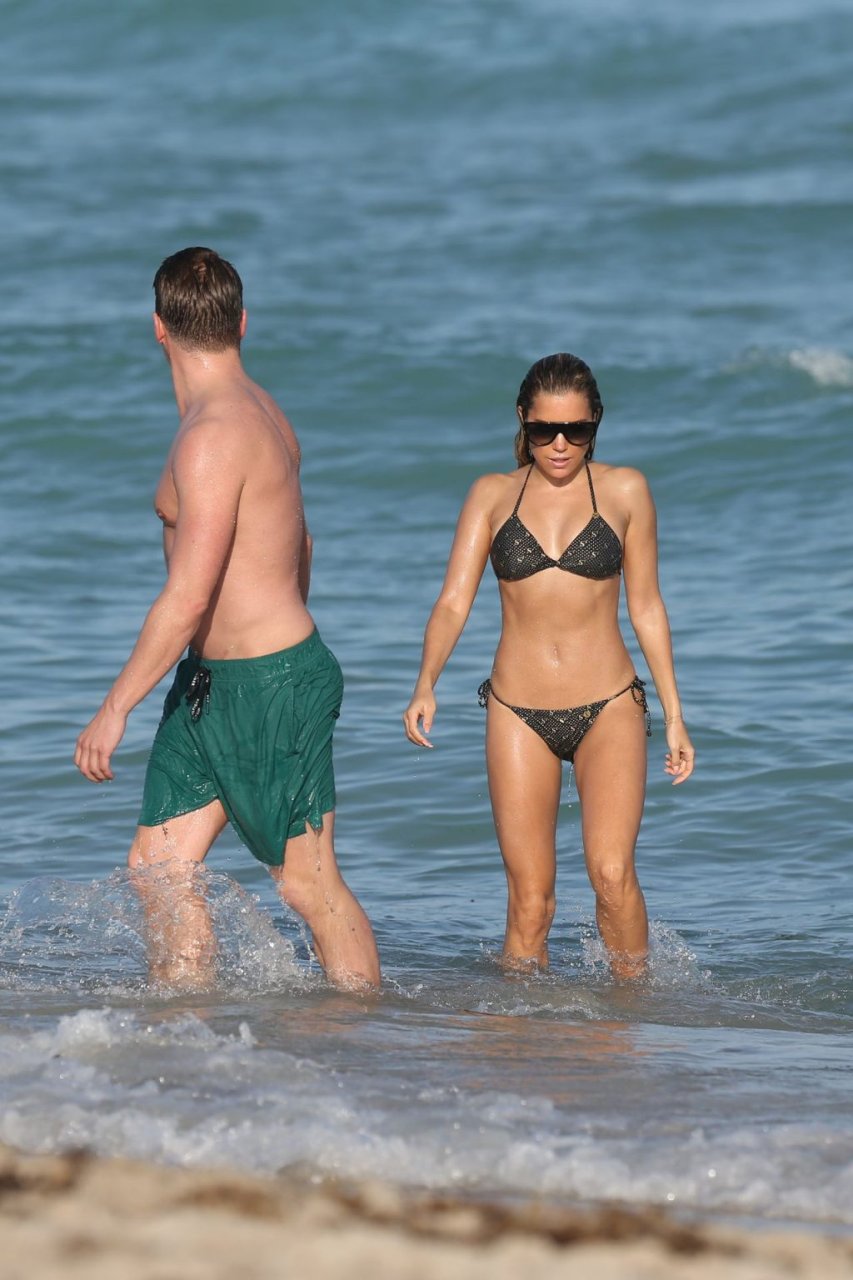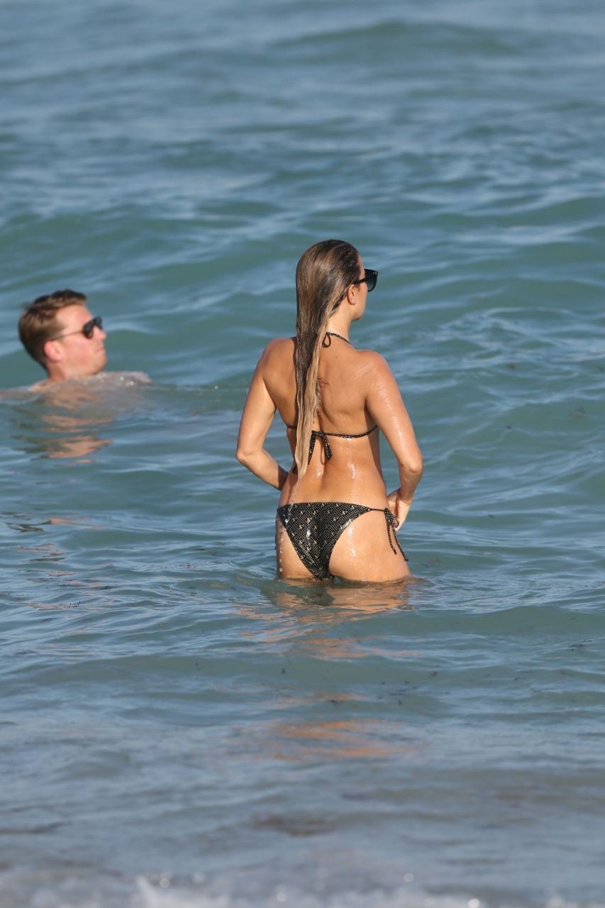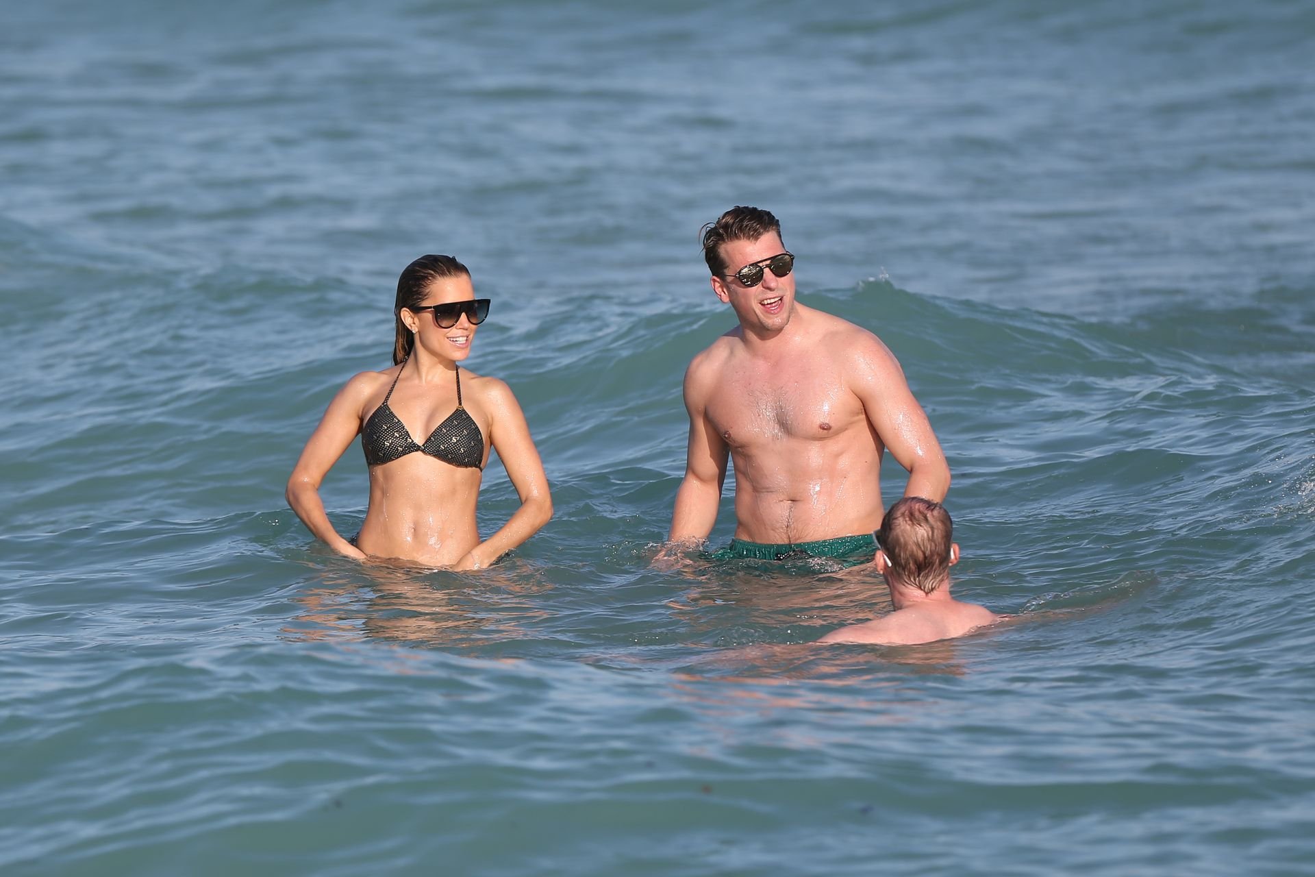 Modelo y presentadora de televisión holandesa Sylvie Meis luce fantástica a los 40 años mientras muestra su cuerpo en bikini y un enorme anillo de diamantes en la playa con su novio de 29 años Bart Willemsen en Miami, 29/12/2018.