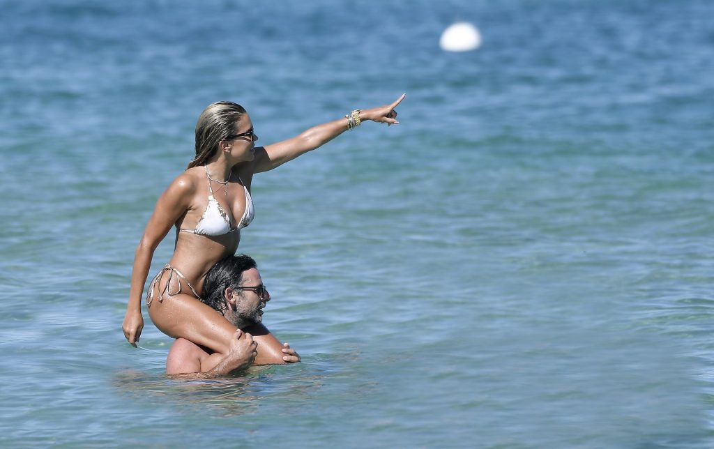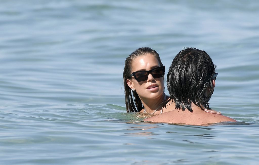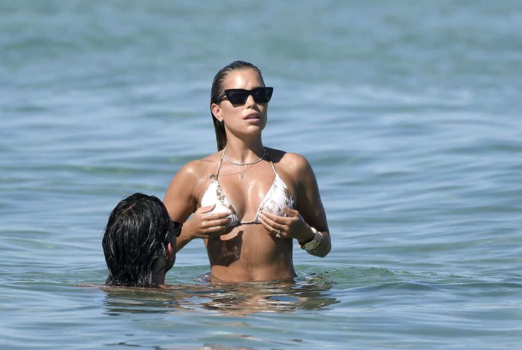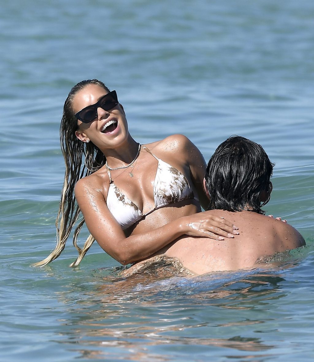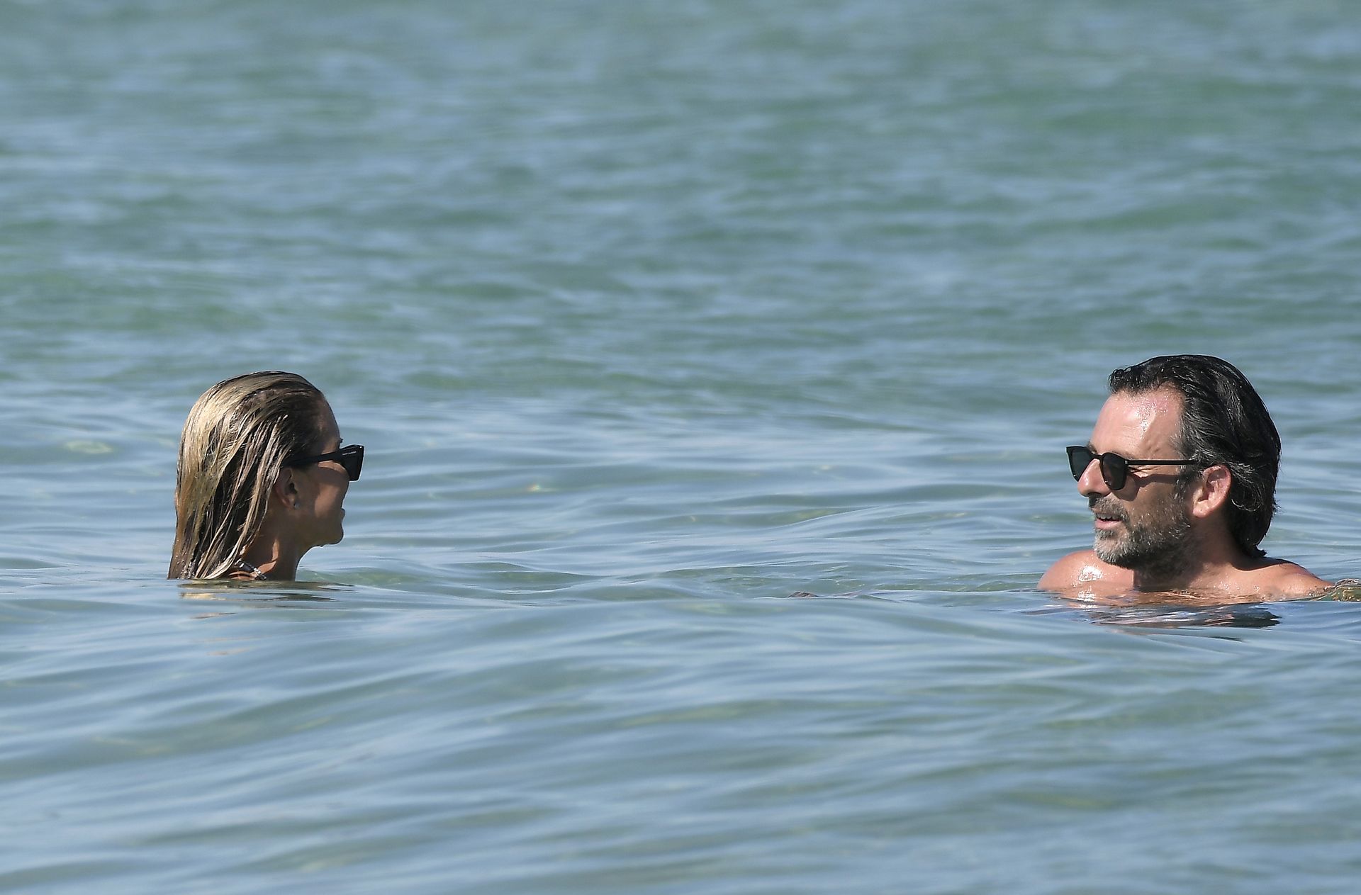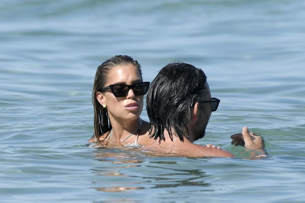 Recién comprometida, Sylvie Meis muestra su increíble cuerpo sexy en bikini mientras disfruta del sol con su nuevo amor, el artista Niclas Castello, en la playa La Reserve en Saint Tropez, 08/07/2020.
