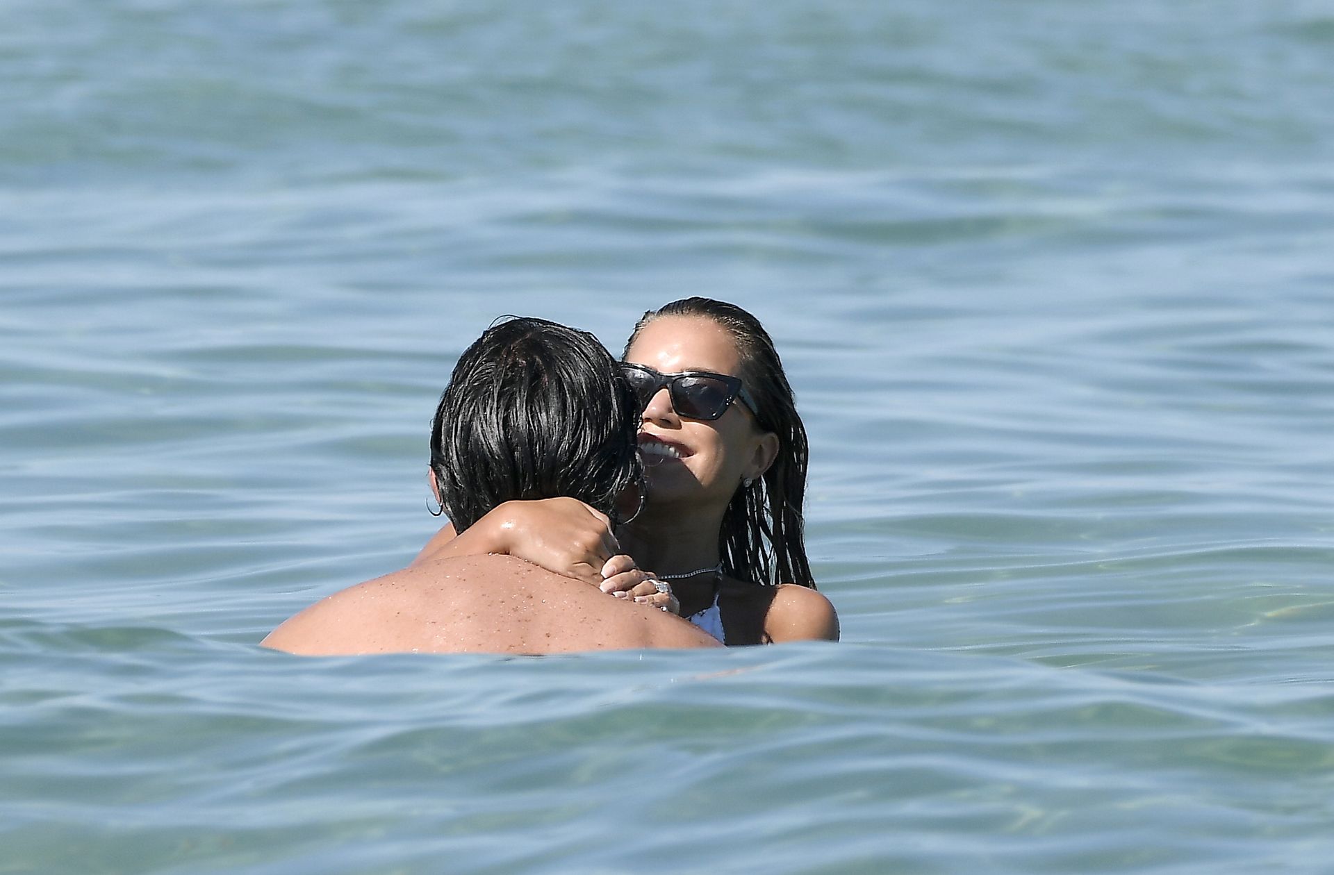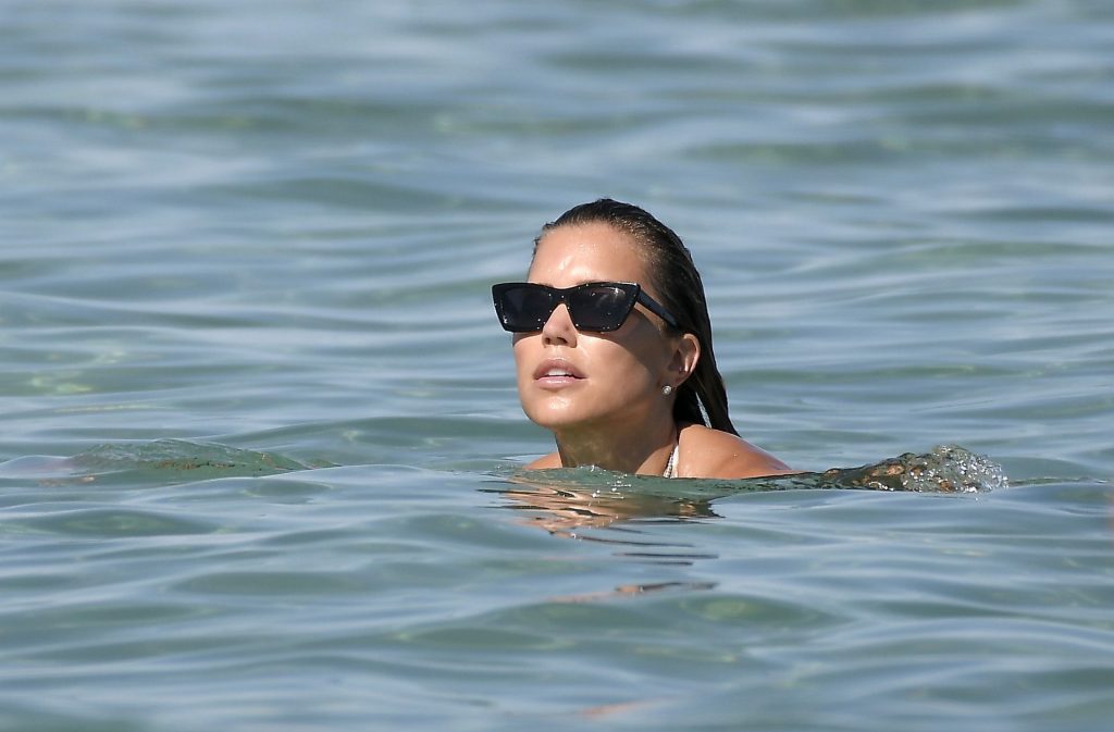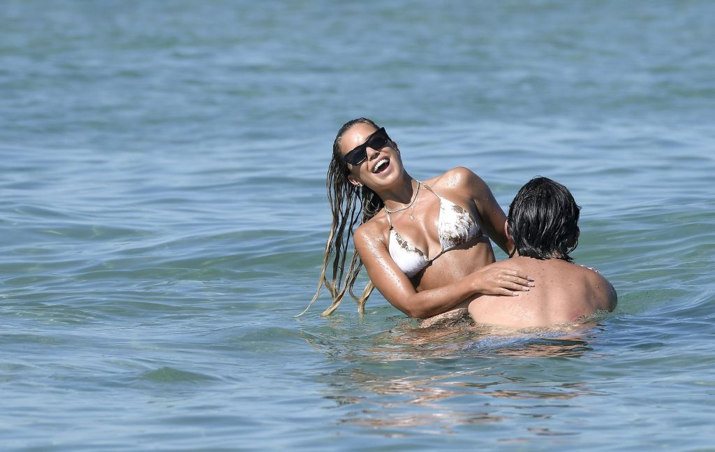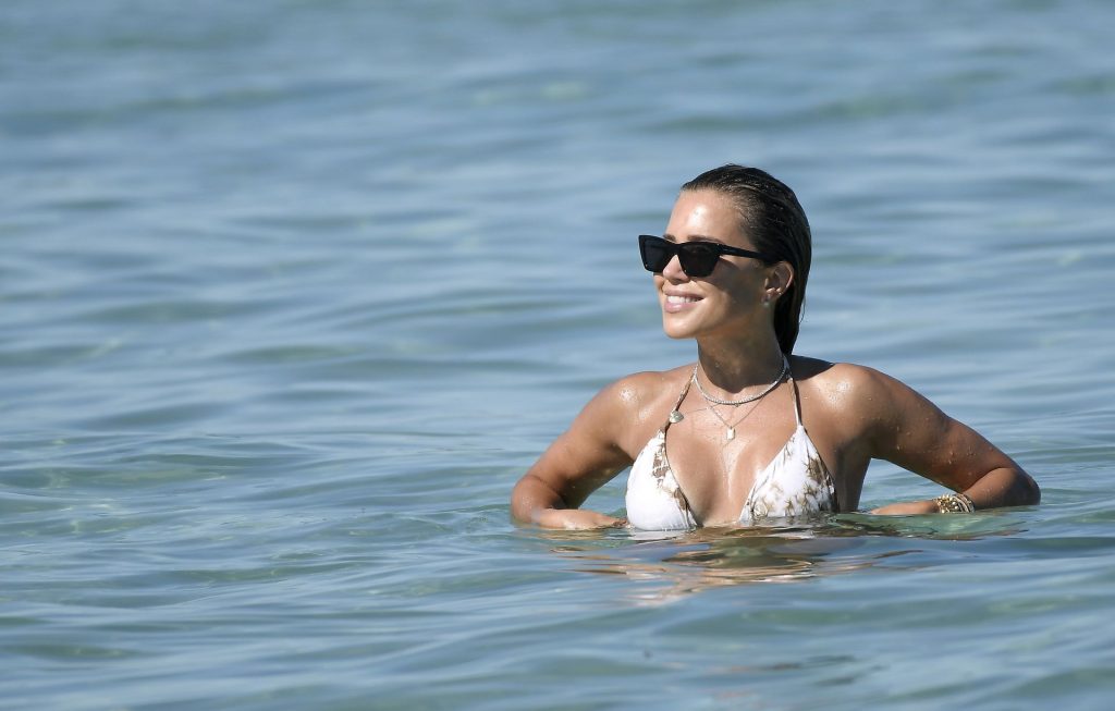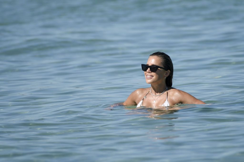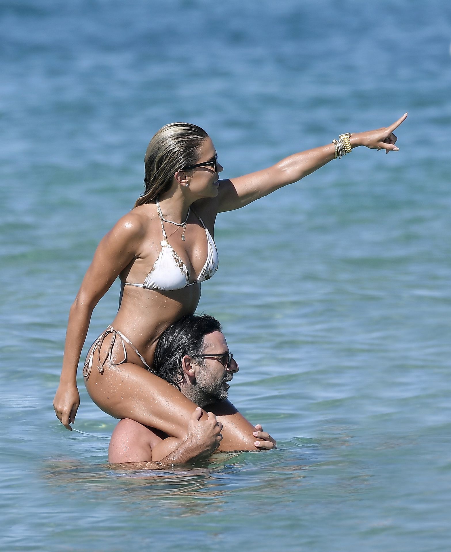 Recién comprometida, Sylvie Meis muestra su increíble cuerpo sexy en bikini mientras disfruta del sol con su nuevo amor, el artista Niclas Castello, en la playa La Reserve en Saint Tropez, 08/07/2020.