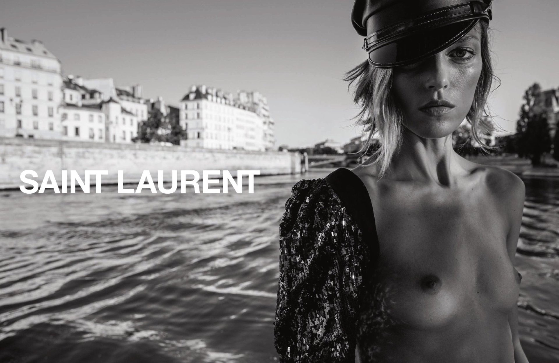 Anja Rubik sin sujetador muestra la nueva colección Primavera/Verano 2017 de Saint Laurent en la Semana de la Moda de París, 27/09/2016. Anja Rubik es una modelo polaca. Edad 33 (12 de junio de 1983). Altura 179 cm.
