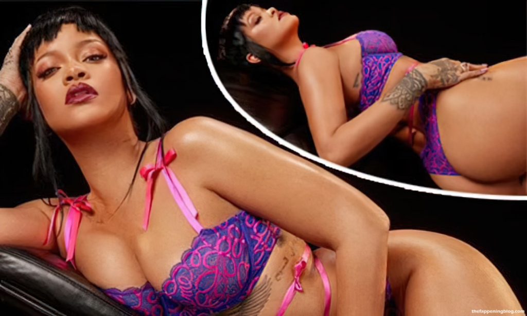 La cantante Rihanna muestra una exhibición muy descarada con lencería púrpura y rosa mientras promociona su última colección Savage X Fenty en Twitter, 31/08/2021.