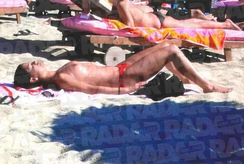 En una de las imágenes, ella y dos jóvenes damas están topless en la playa, de espaldas al público. Sin embargo, al principio la belleza tuvo que ajustar su cámara. En ese momento, el público puede ver claramente sus pequeños y cuidados pechos.