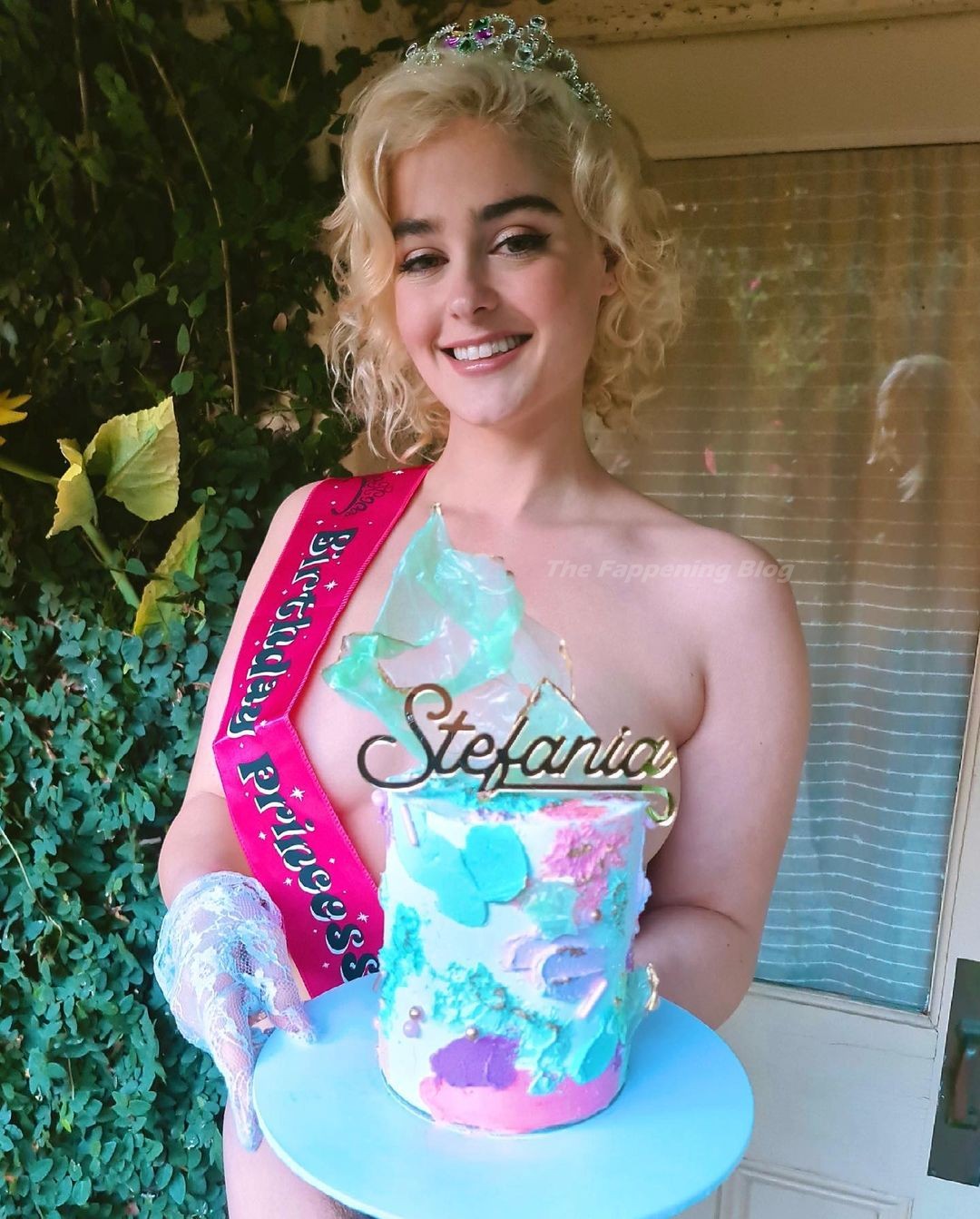 La modelo Stefania Ferrario ofrece a los fanáticos un delicioso pastel, pechos desnudos y un espeso vello durante una fiesta de cumpleaños (junio de 2021).