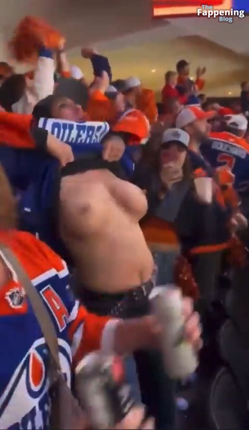 Los Edmonton Oilers la están rompiendo en las finales de la Copa Stanley, y esta fan se hizo totalmente viral por mostrar sus enormes pechos en el partido. Incluso consiguió un contrato de seis cifras gracias a eso, fam.