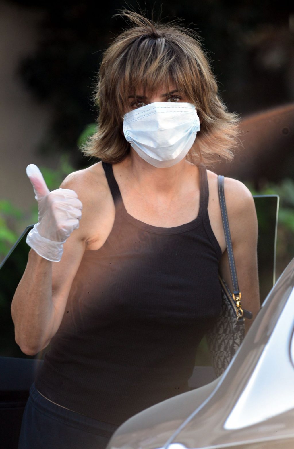 El cabello de Lisa Rinna parece estar teniendo un momento de “Algo pasa con Mary” mientras recoge su ropa en la tintorería del Beverly Glen Shopping Center en Beverly Hills, 02/10/2020.