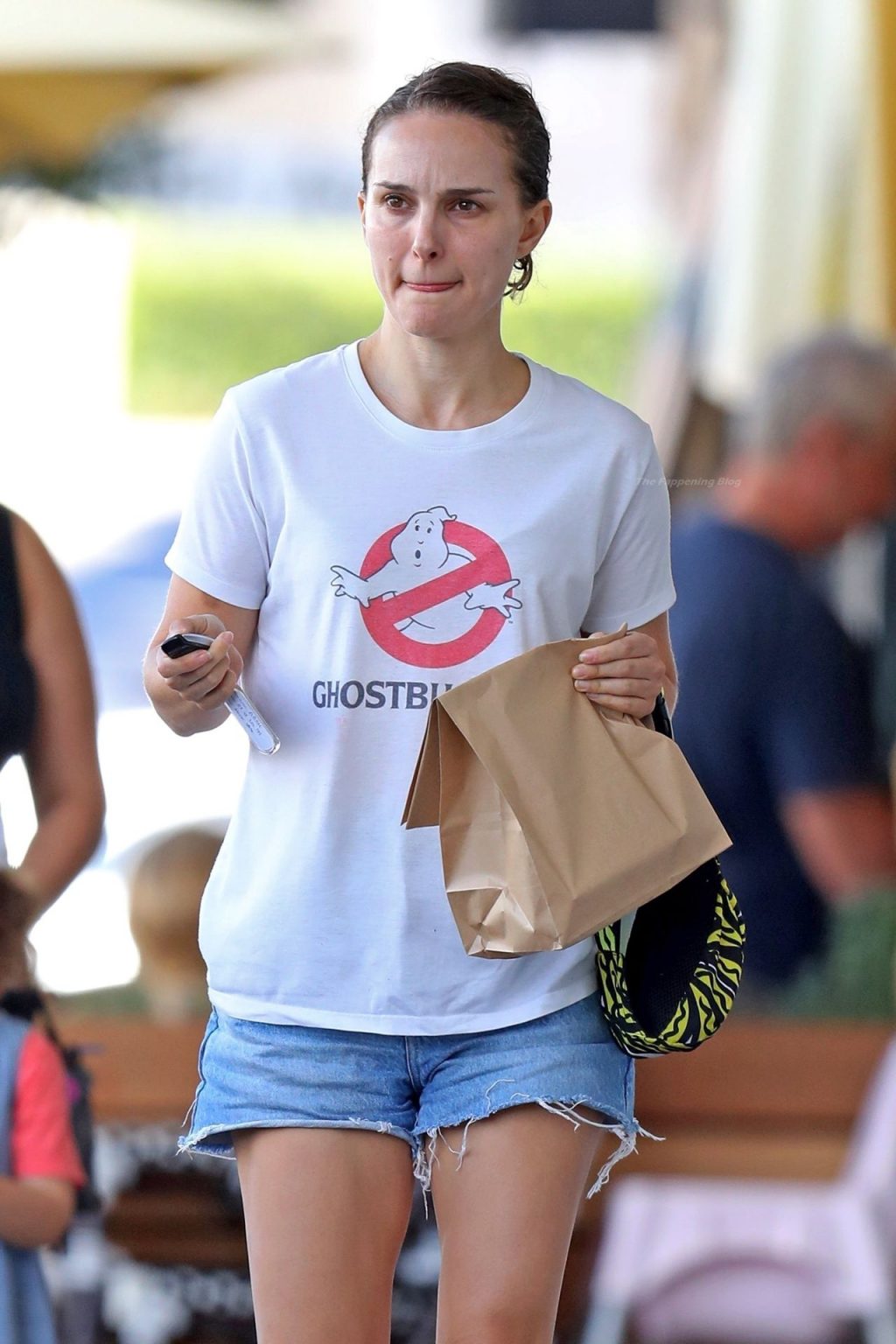 ¡A quién vas a llamar! La actriz Natalie Portman luce casualmente a la moda mientras es fotografiada haciendo algunos recados en Sídney, vistiendo una genial camiseta de Cazafantasmas con shorts de mezclilla y una riñonera amarilla y negra estampada.