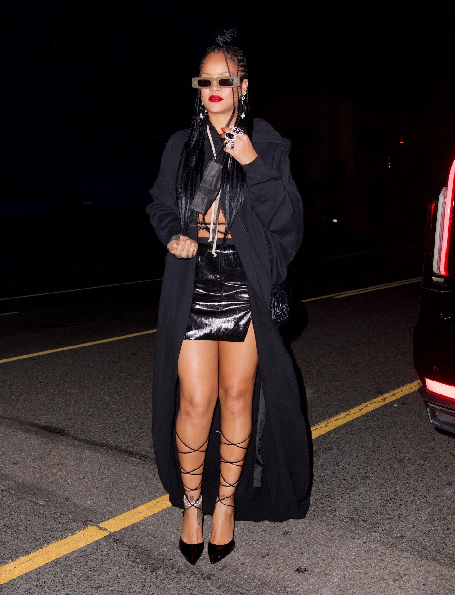 La estrella de The Fappening Rihanna muestra sus piernas con una minifalda negra mientras se dirige a cenar en Giorgio Baldi, 29/03/2021.
