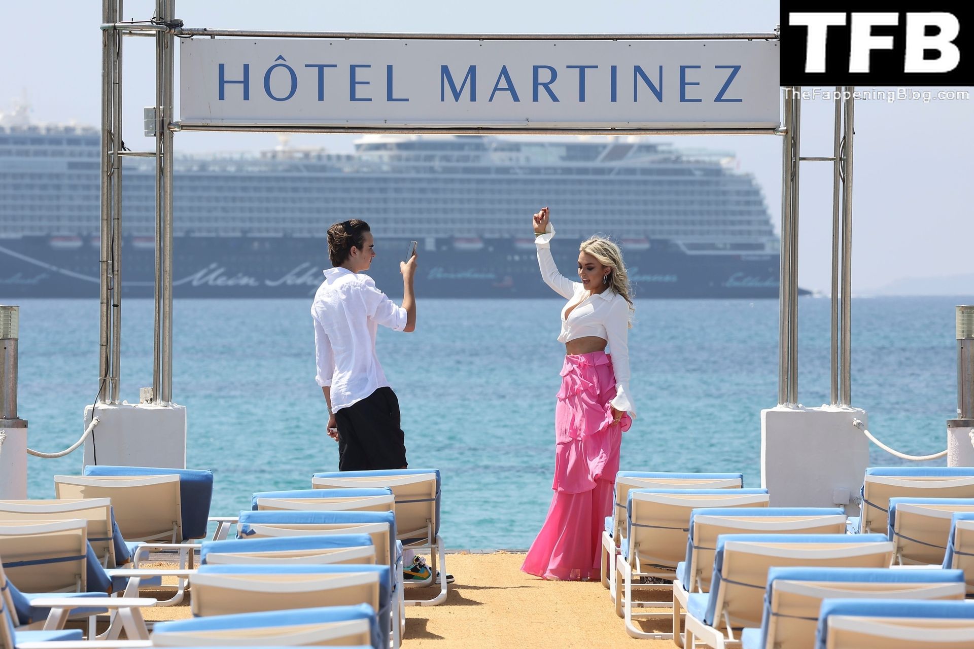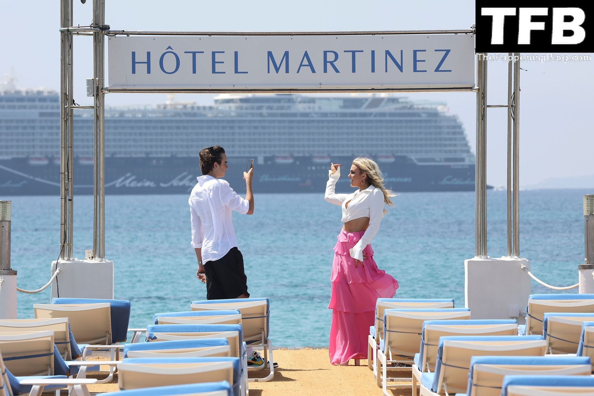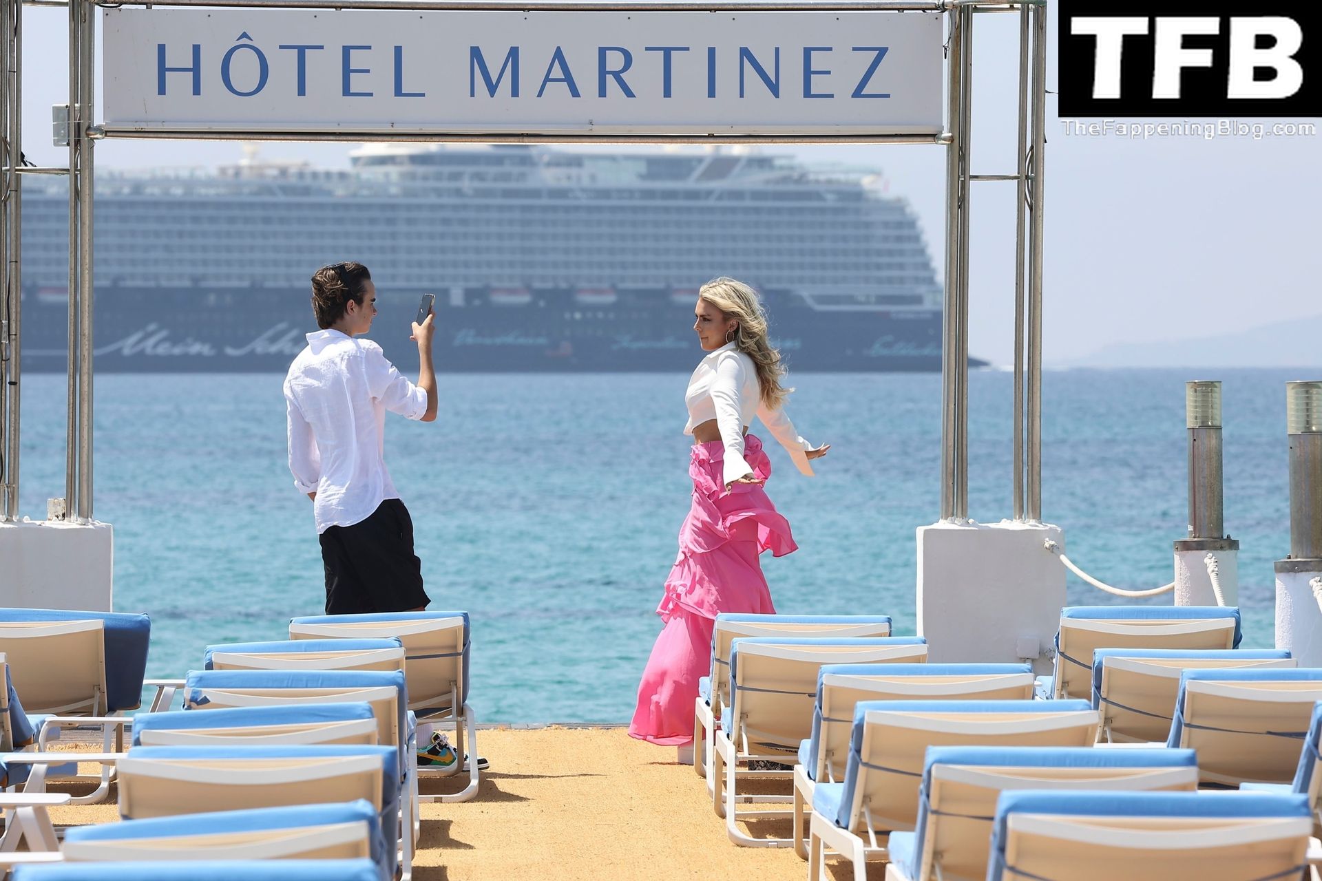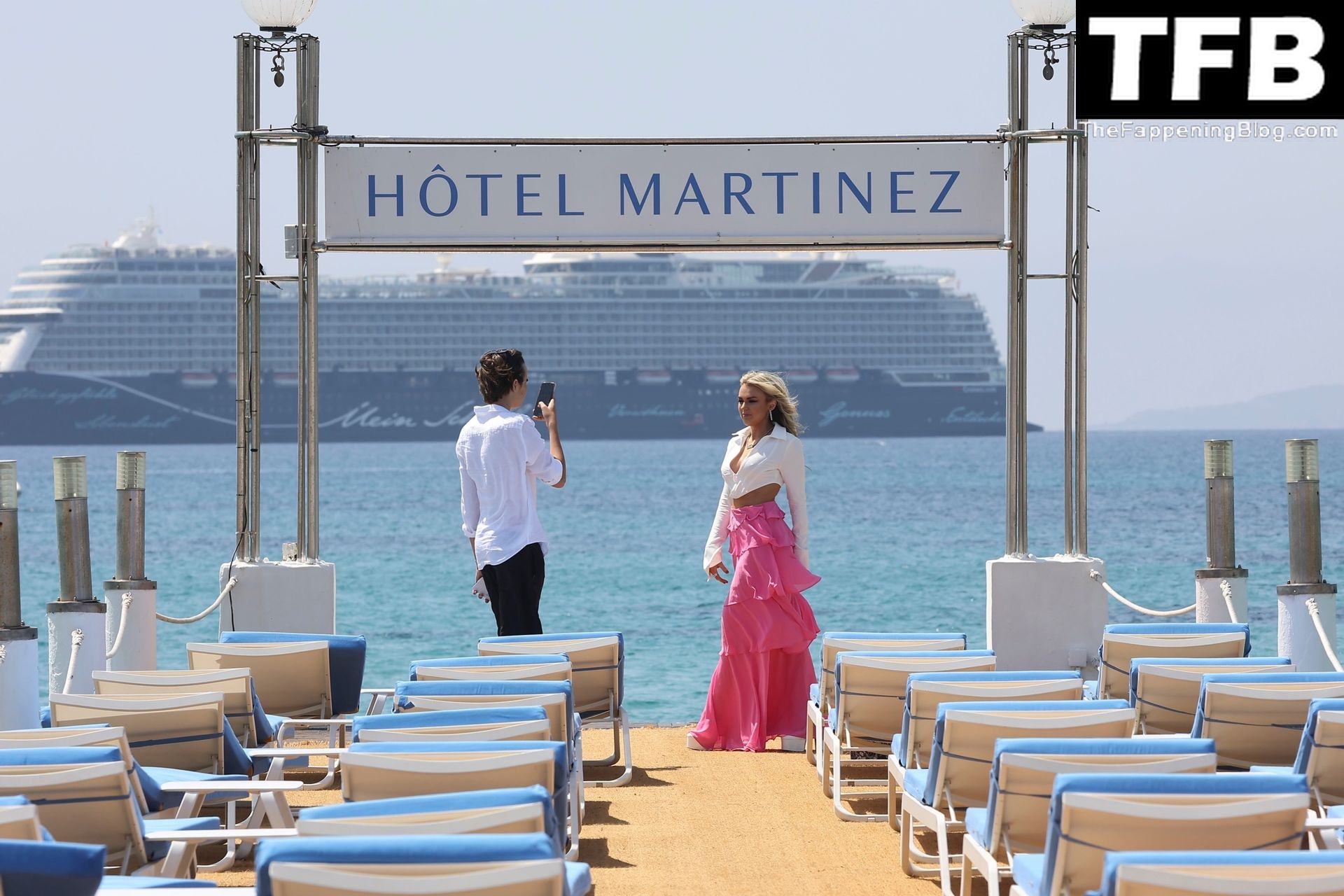 Tallia Storm es vista en el Beach Martinez Hotel durante el 75º Festival anual de Cine de Cannes en Cannes, 17/05/2022. La cantante del Reino Unido con su hermano Tony disfruta estar a solas en el pontón.