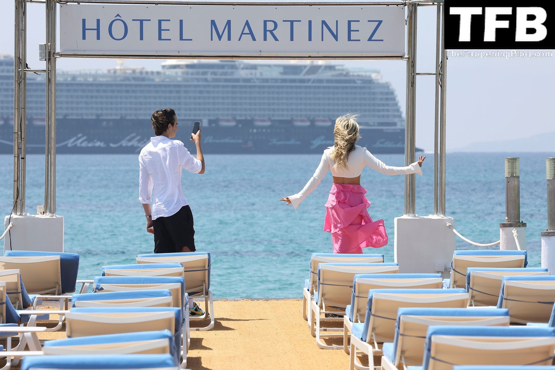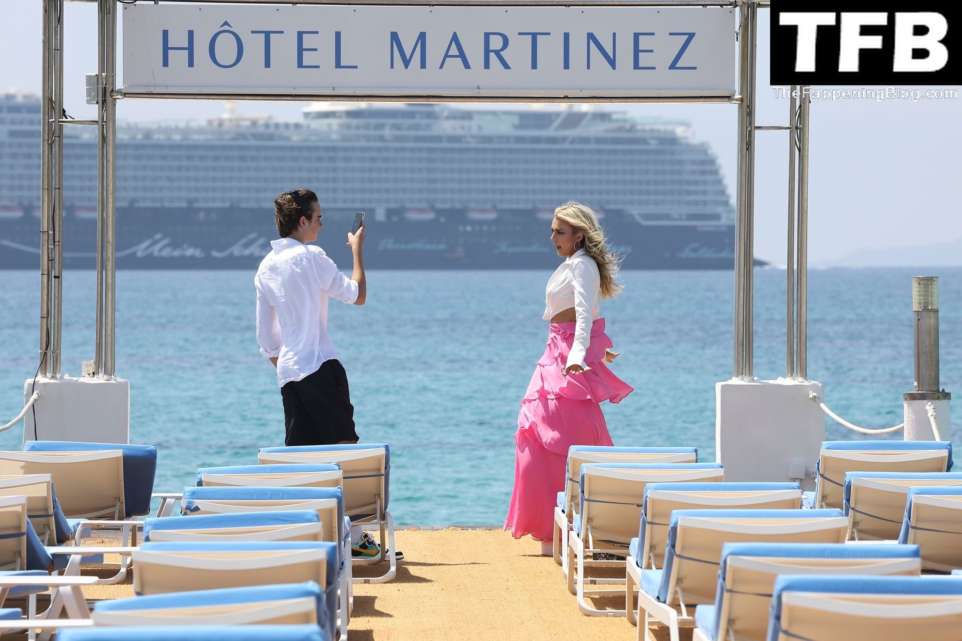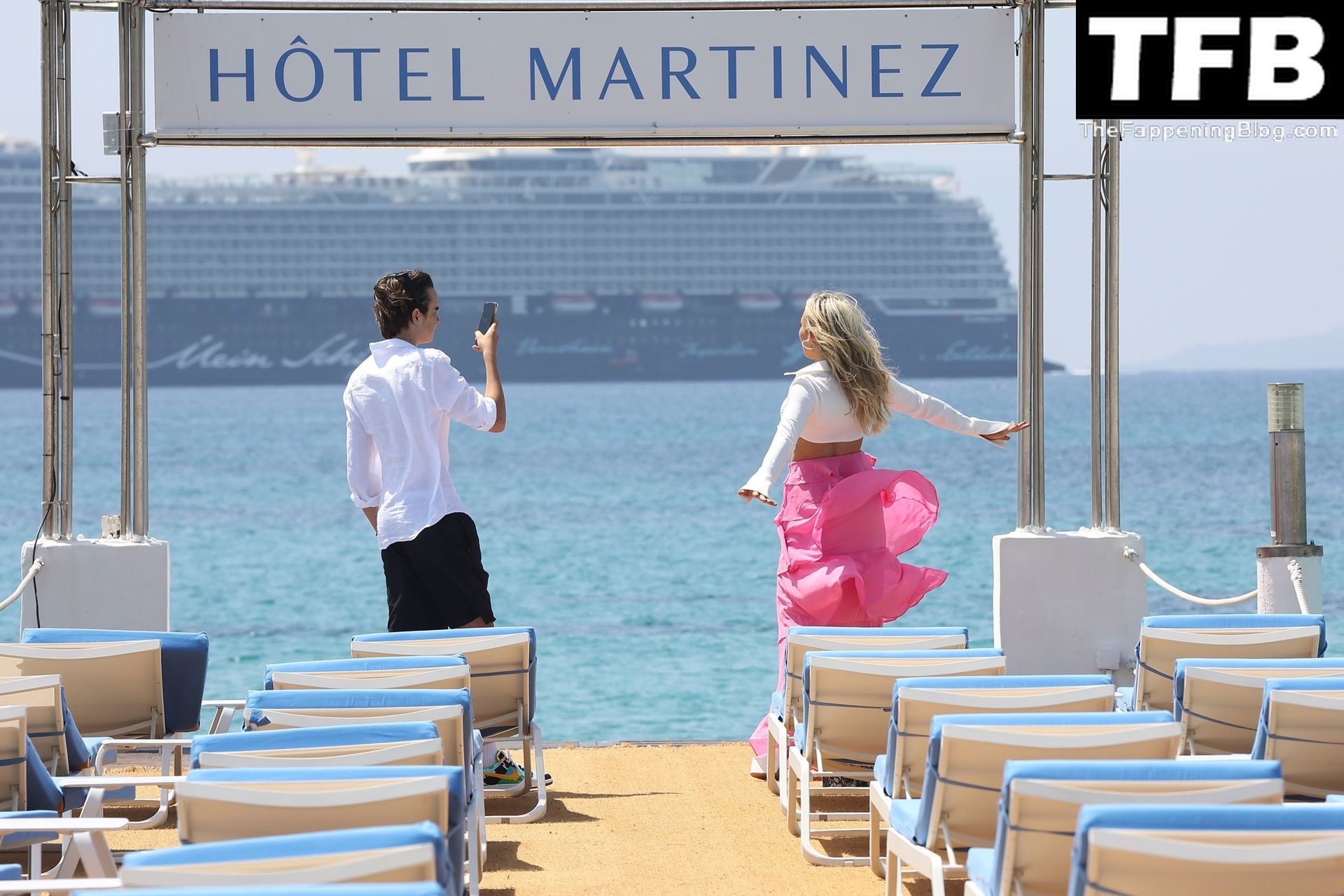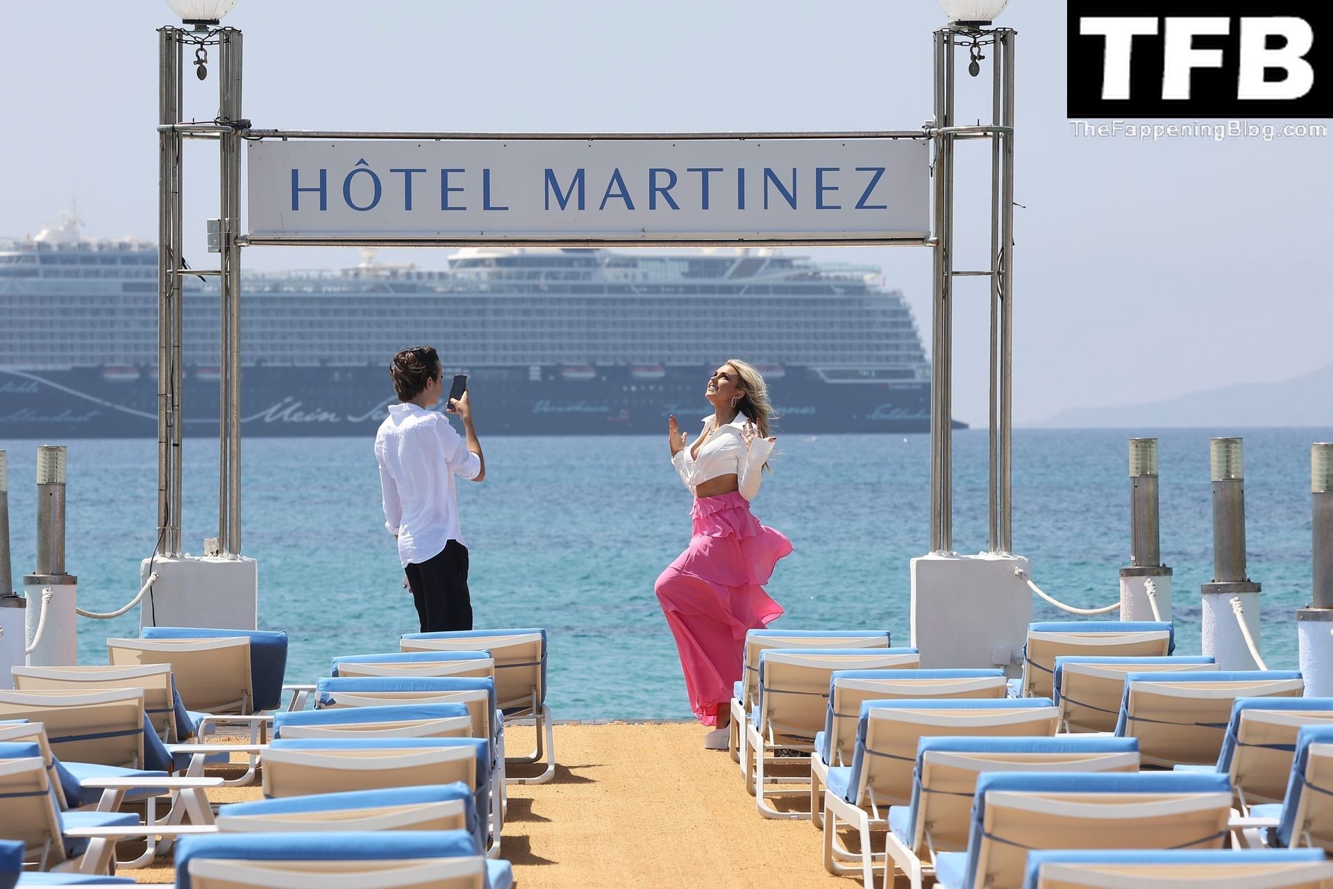 Tallia Storm es vista en el Beach Martinez Hotel durante el 75º Festival anual de Cine de Cannes en Cannes, 17/05/2022. La cantante del Reino Unido con su hermano Tony disfruta estar a solas en el pontón.