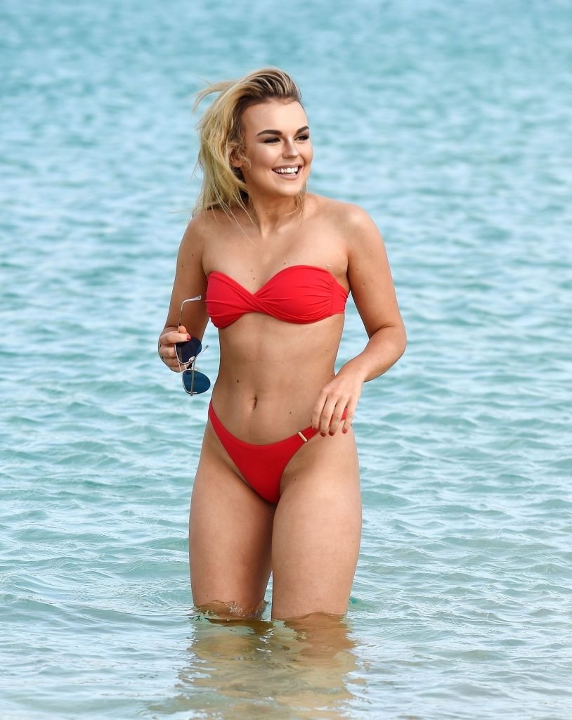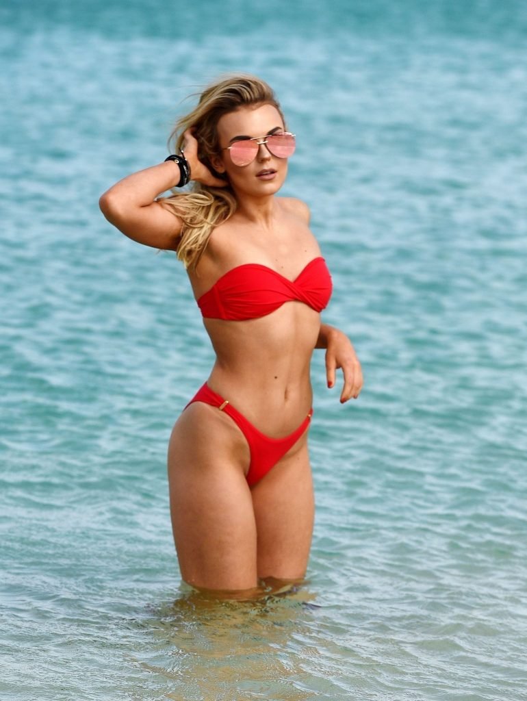 Cantante escocesa Tallia Storm, 19, muestra su cuerpo sexy con un bikini rojo ardiente mientras disfruta de un día libre filmando Celebs Go Dating en Cabo Verde, 31/01/2018.